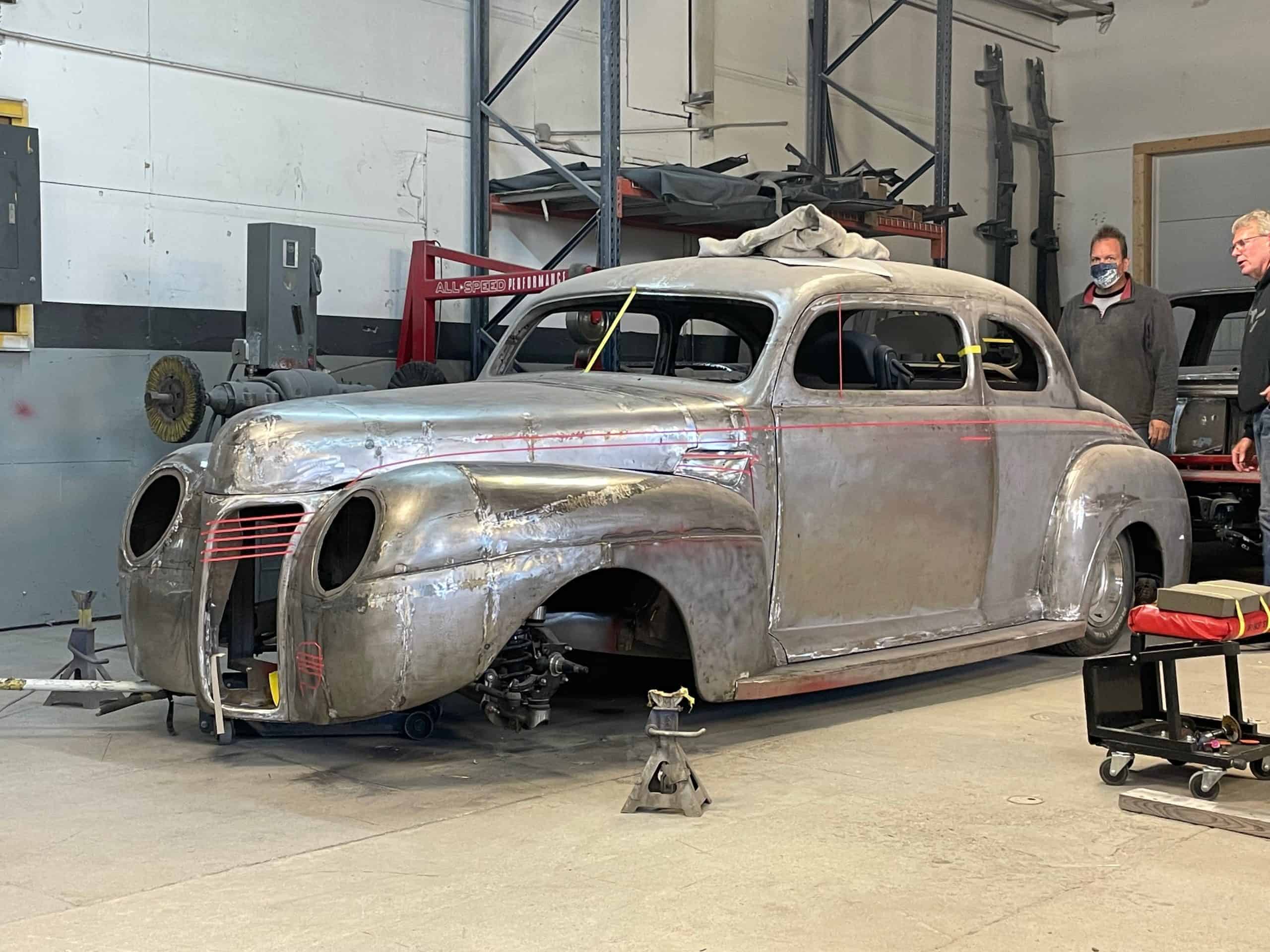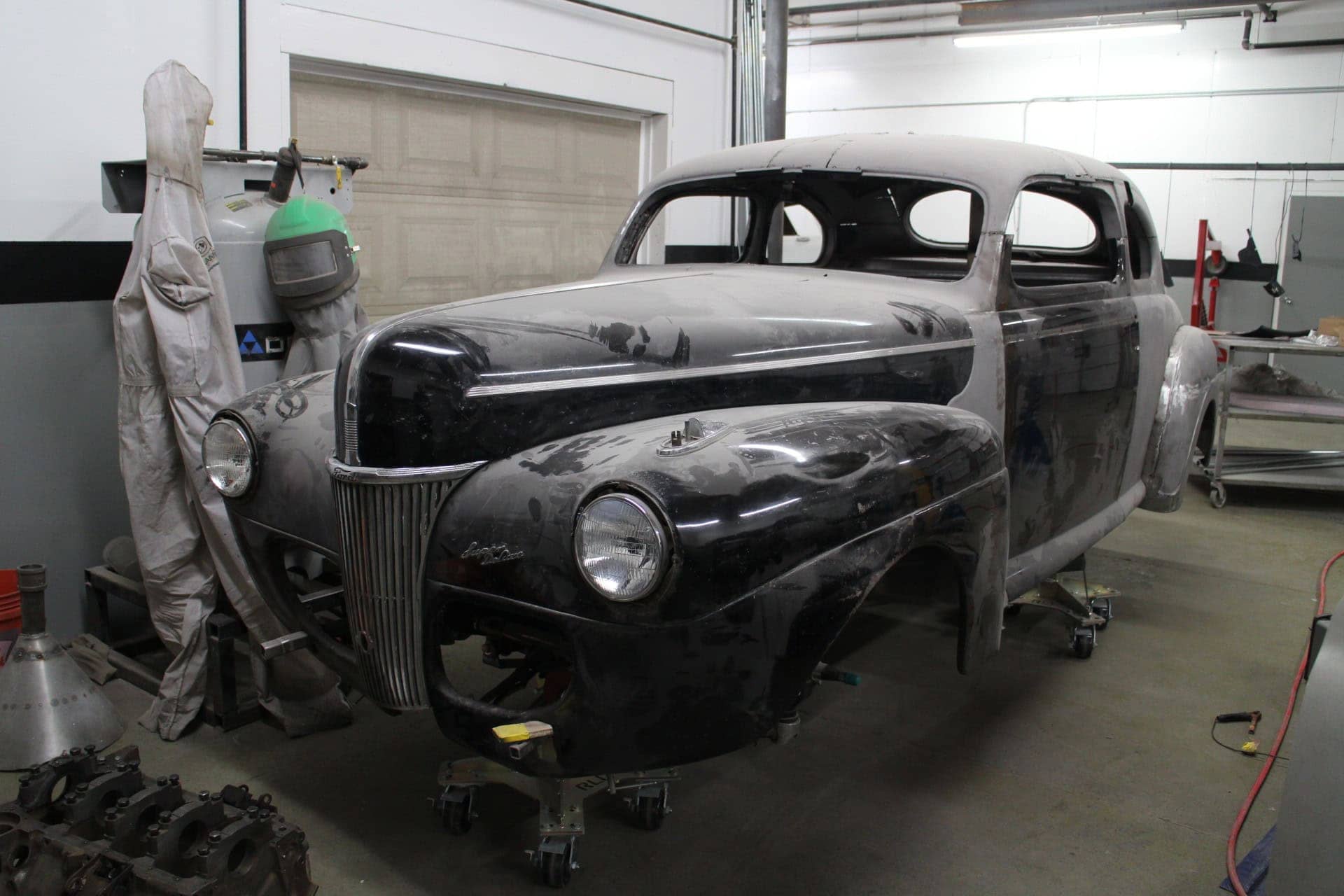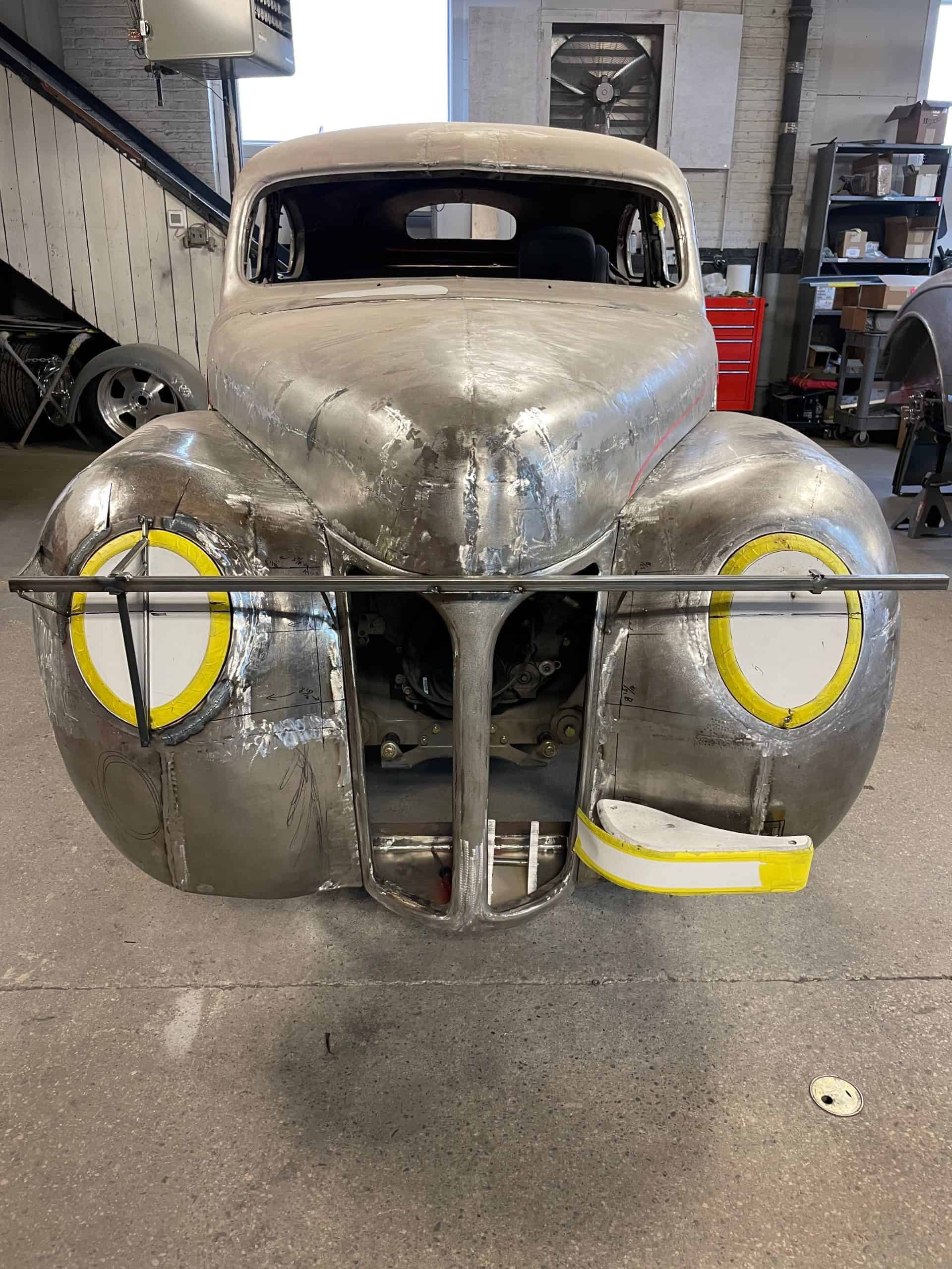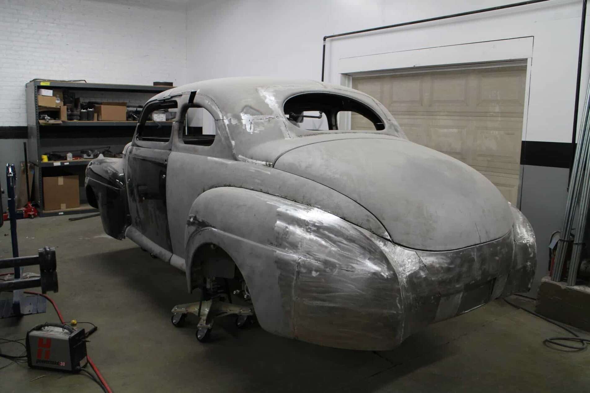 1941 Ford SUPER DELUXE STREET ROD with custom body modifications to every panel, Roadster Shop REVO chassis, Coyote 5.0 engine, Wilwood disc brakes, Schott billet wheels, Be Cool radiator, Ididit column, American Autowire harness, BASF Glasurit 55 line paint and a full custom leather interior.