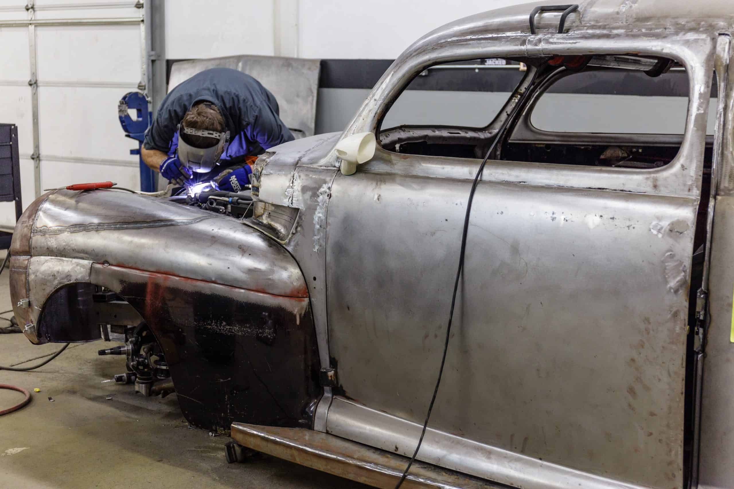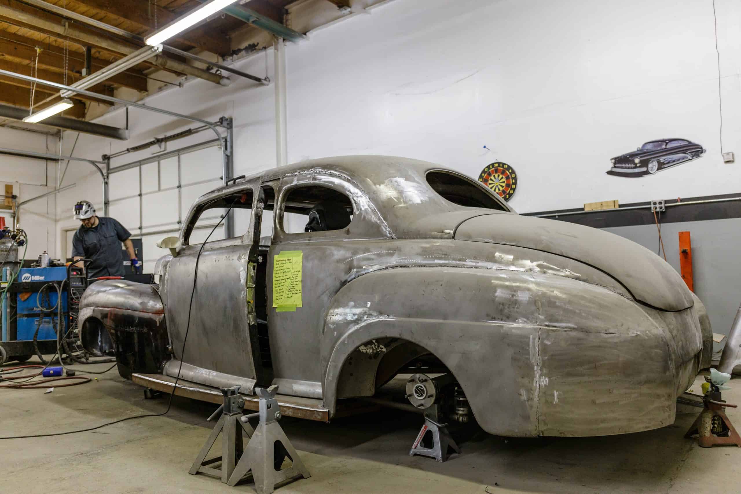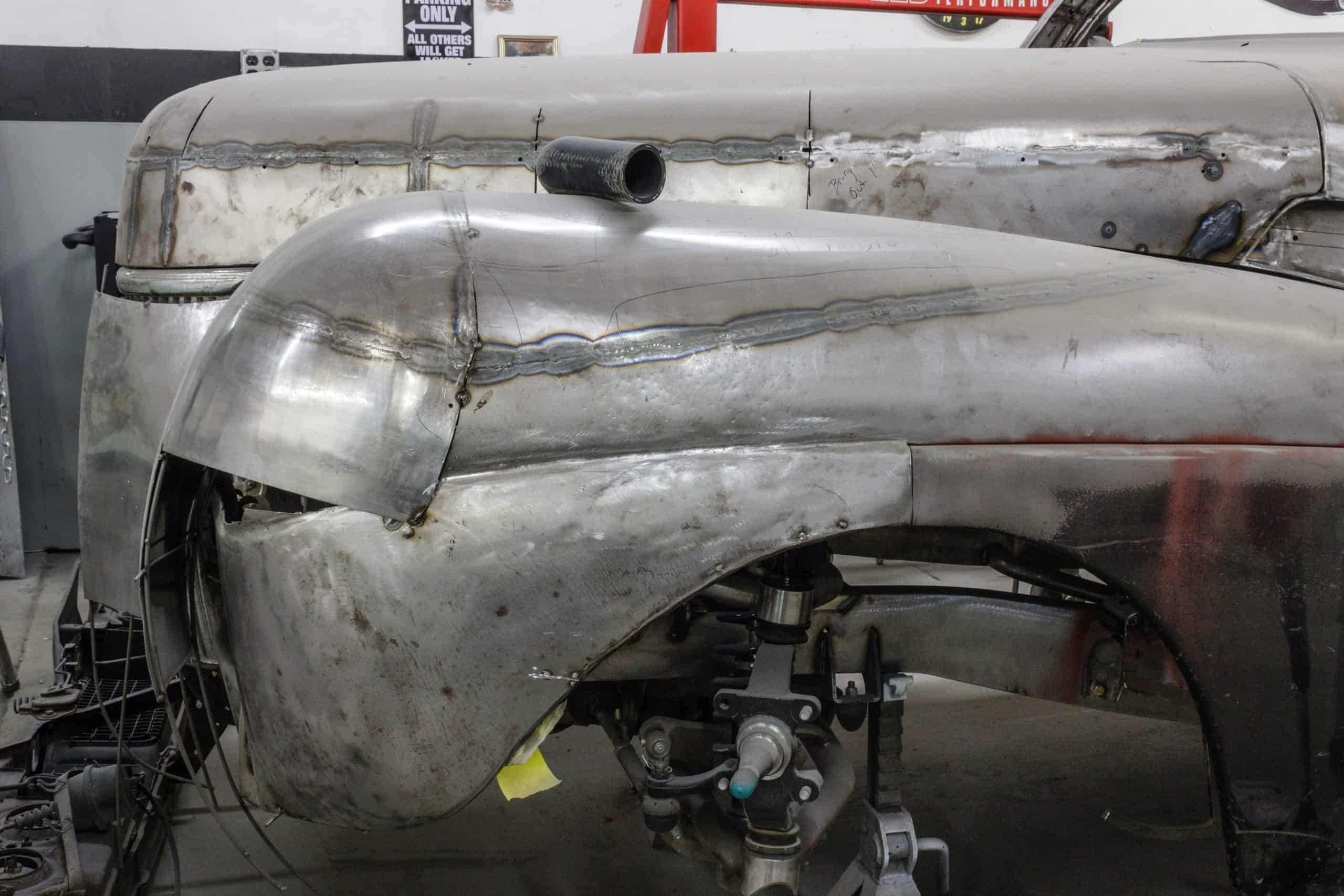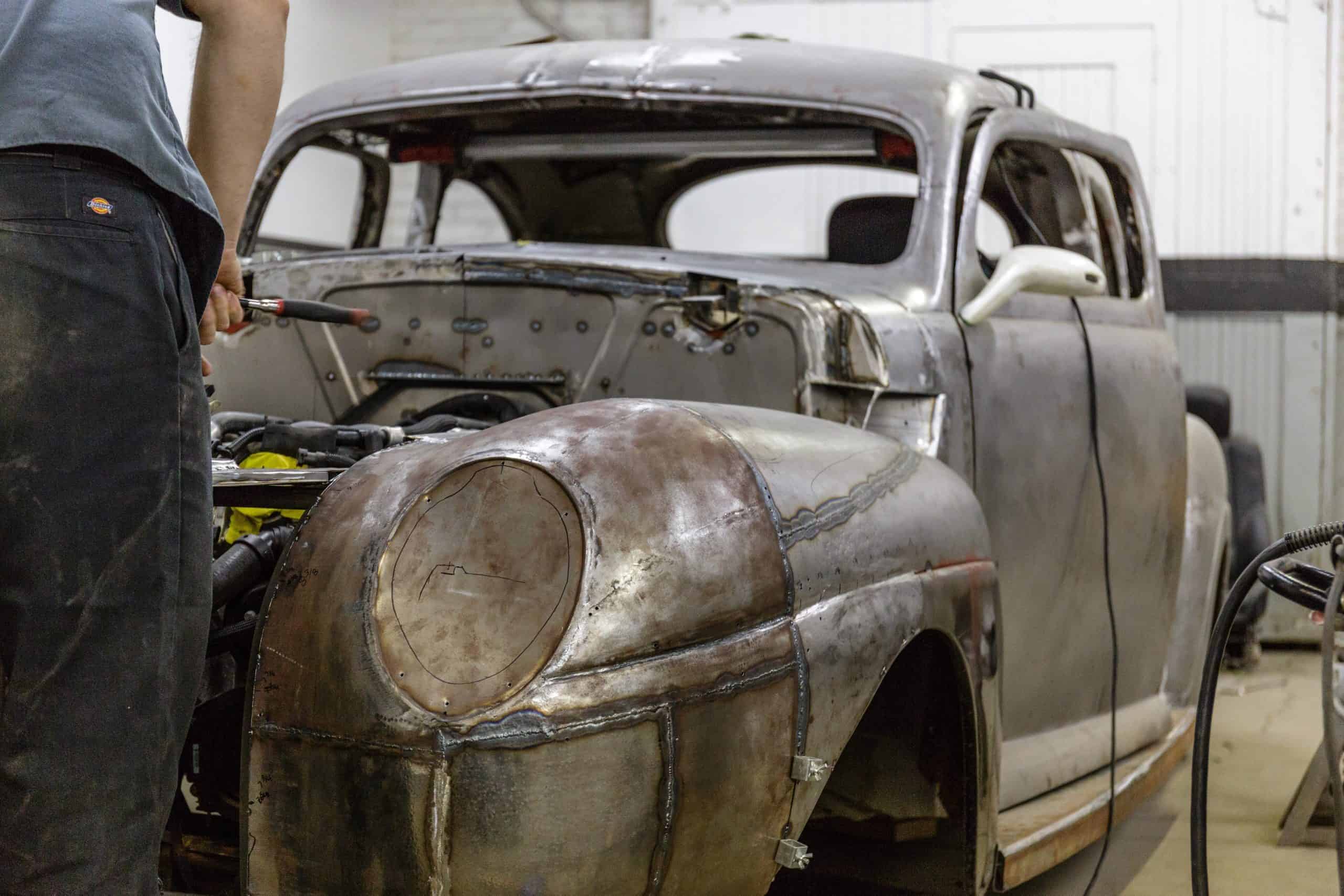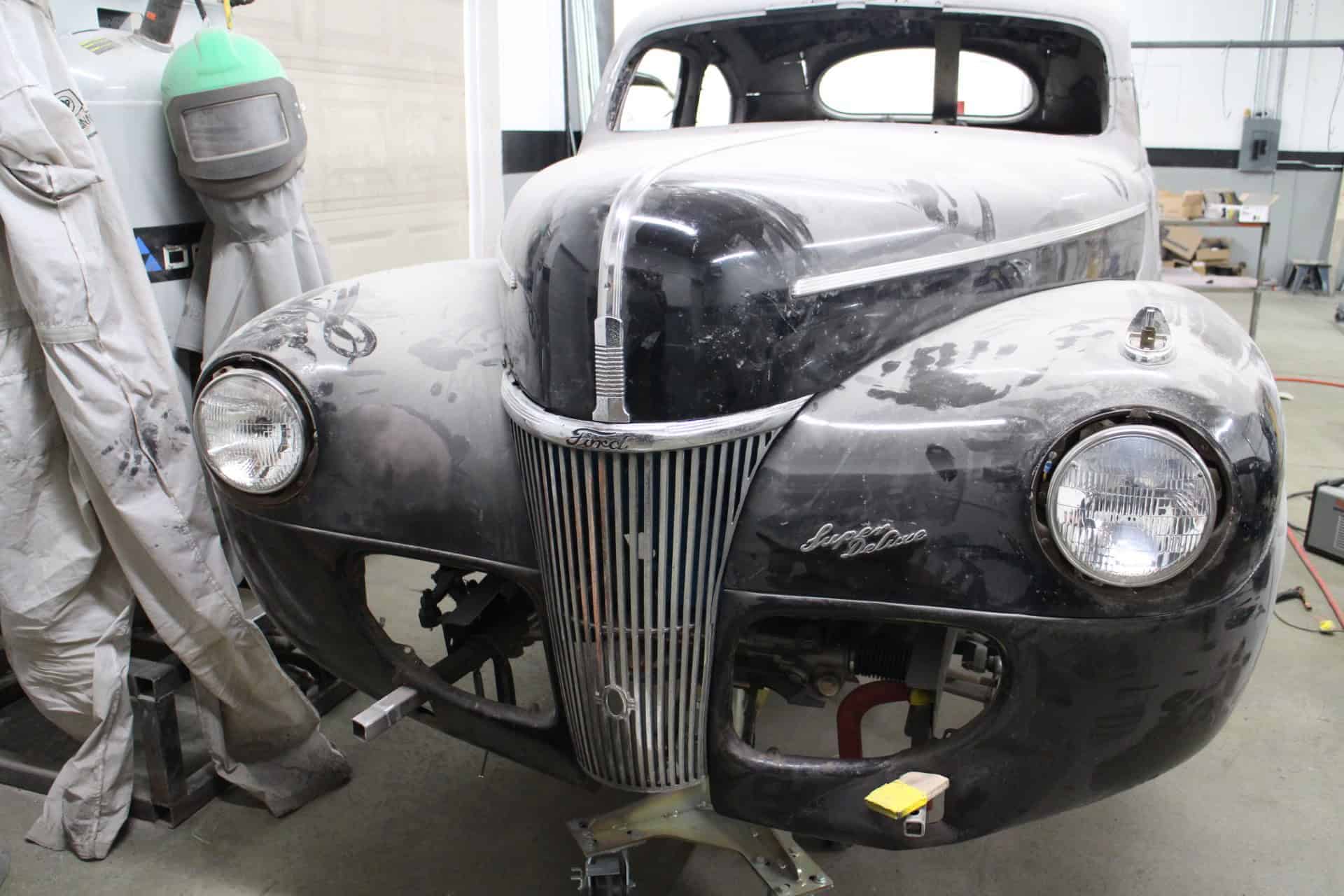 1941 Ford SUPER DELUXE STREET ROD with custom body modifications to every panel, Roadster Shop REVO chassis, Coyote 5.0 engine, Wilwood disc brakes, Schott billet wheels, Be Cool radiator, Ididit column, American Autowire harness, BASF Glasurit 55 line paint and a full custom leather interior.