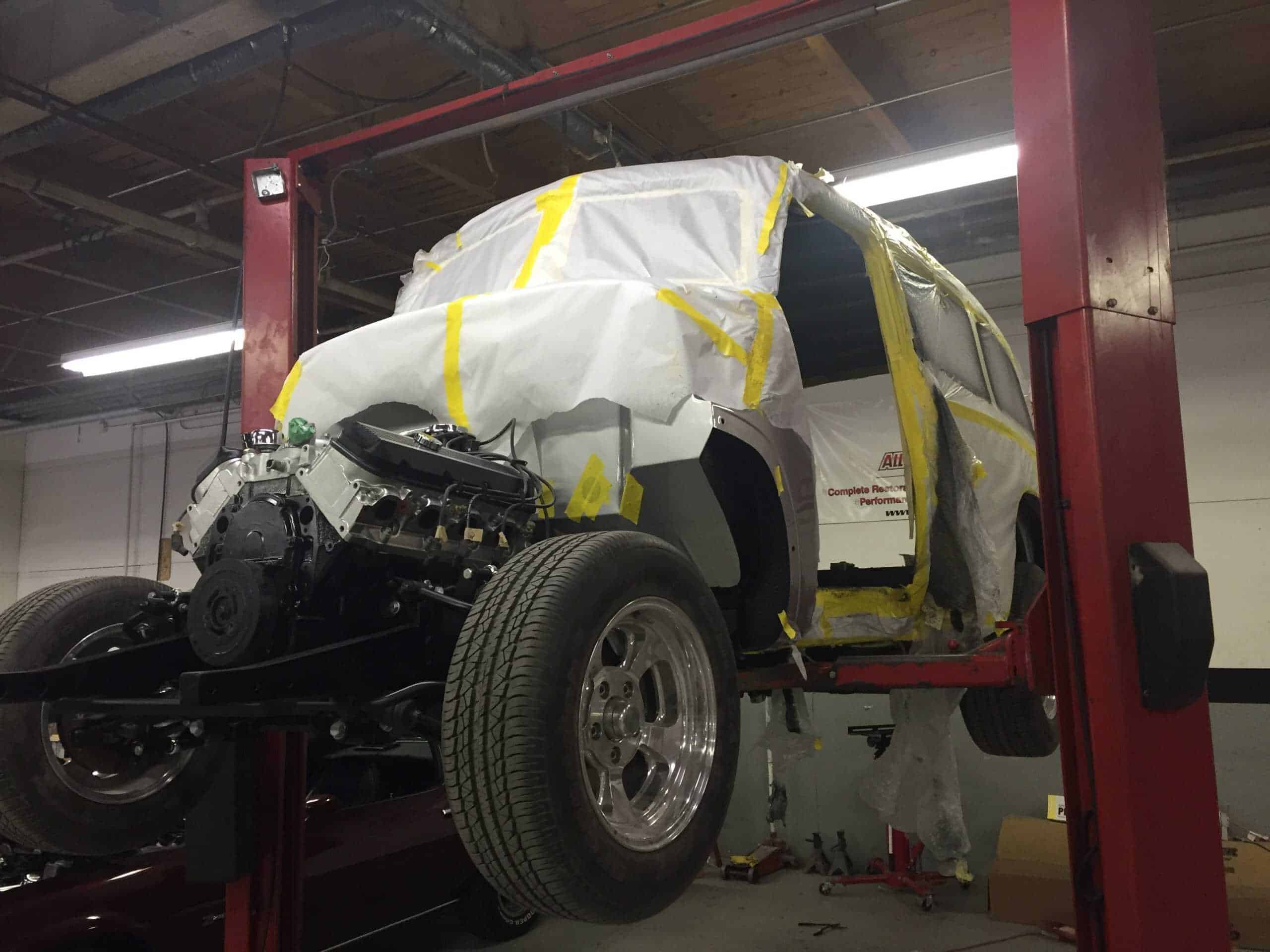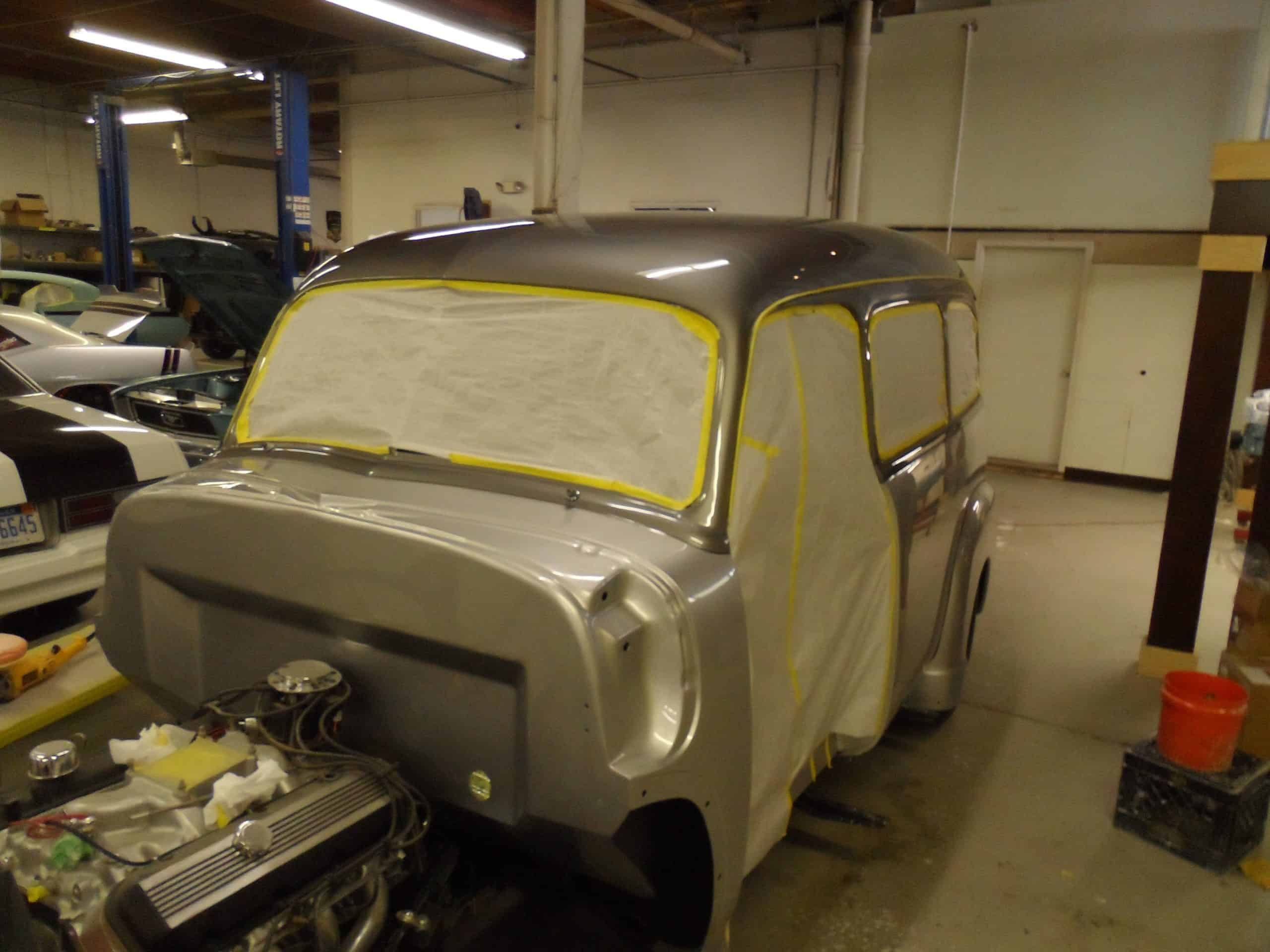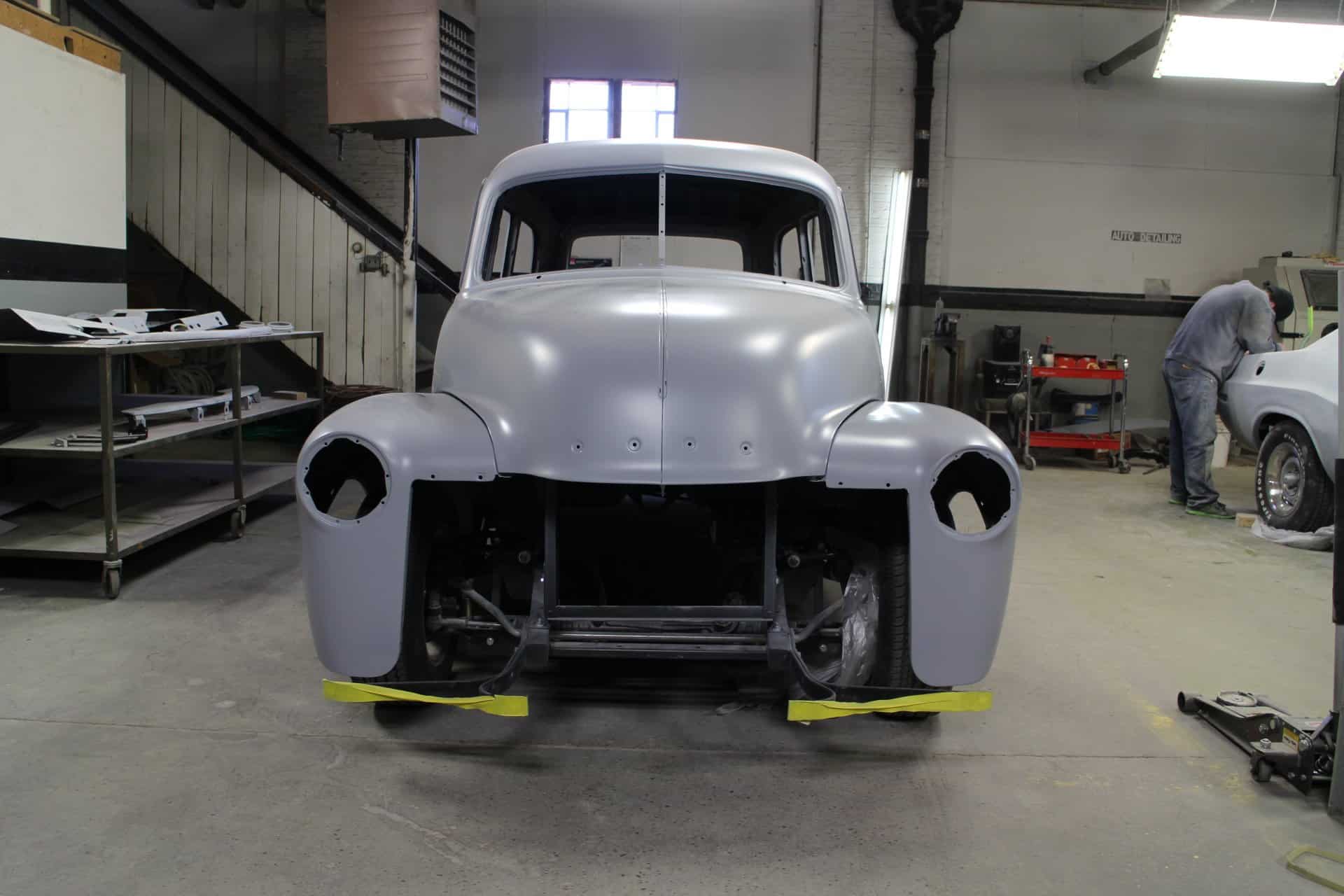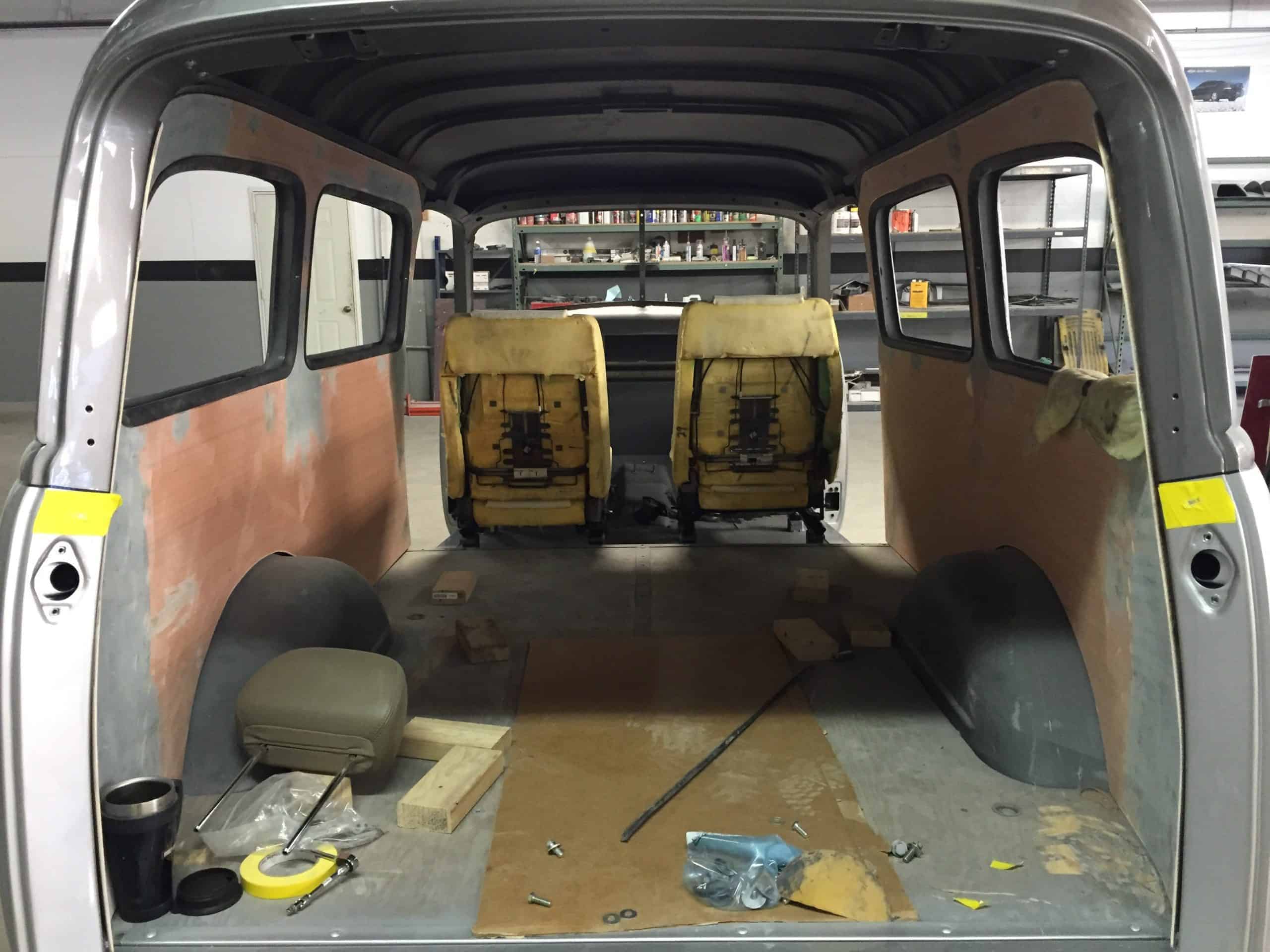 This is a 1950 Chevy Suburban completely restored and built by All Speed Customs with a lot of one-off work. We started with a Fat Man chassis, performed minor rust repair and fabrication, and installed a modern suspension, custom 2-tone paint, a big block Chevy engine, full custom interior, and a lot of other alterations.