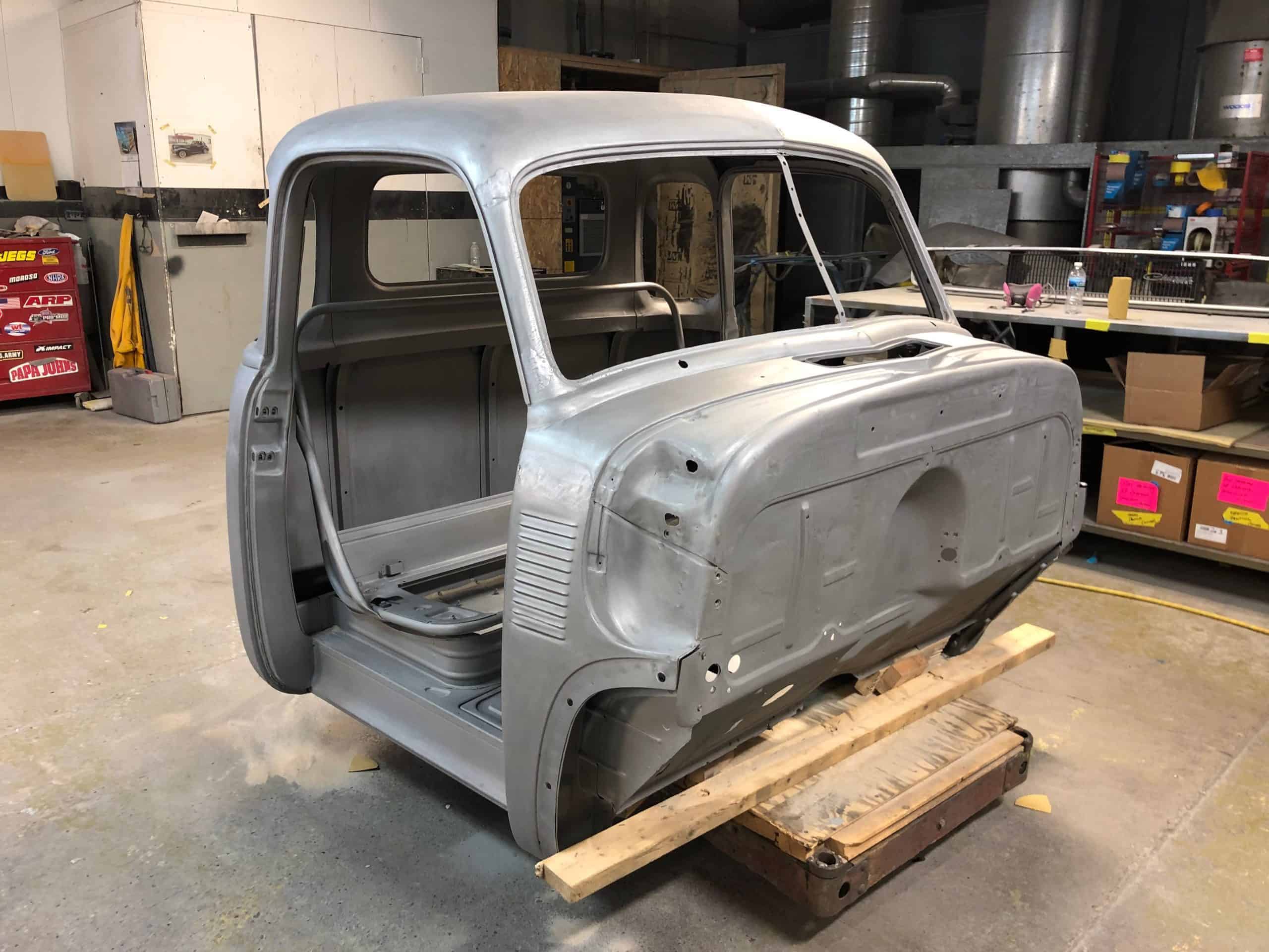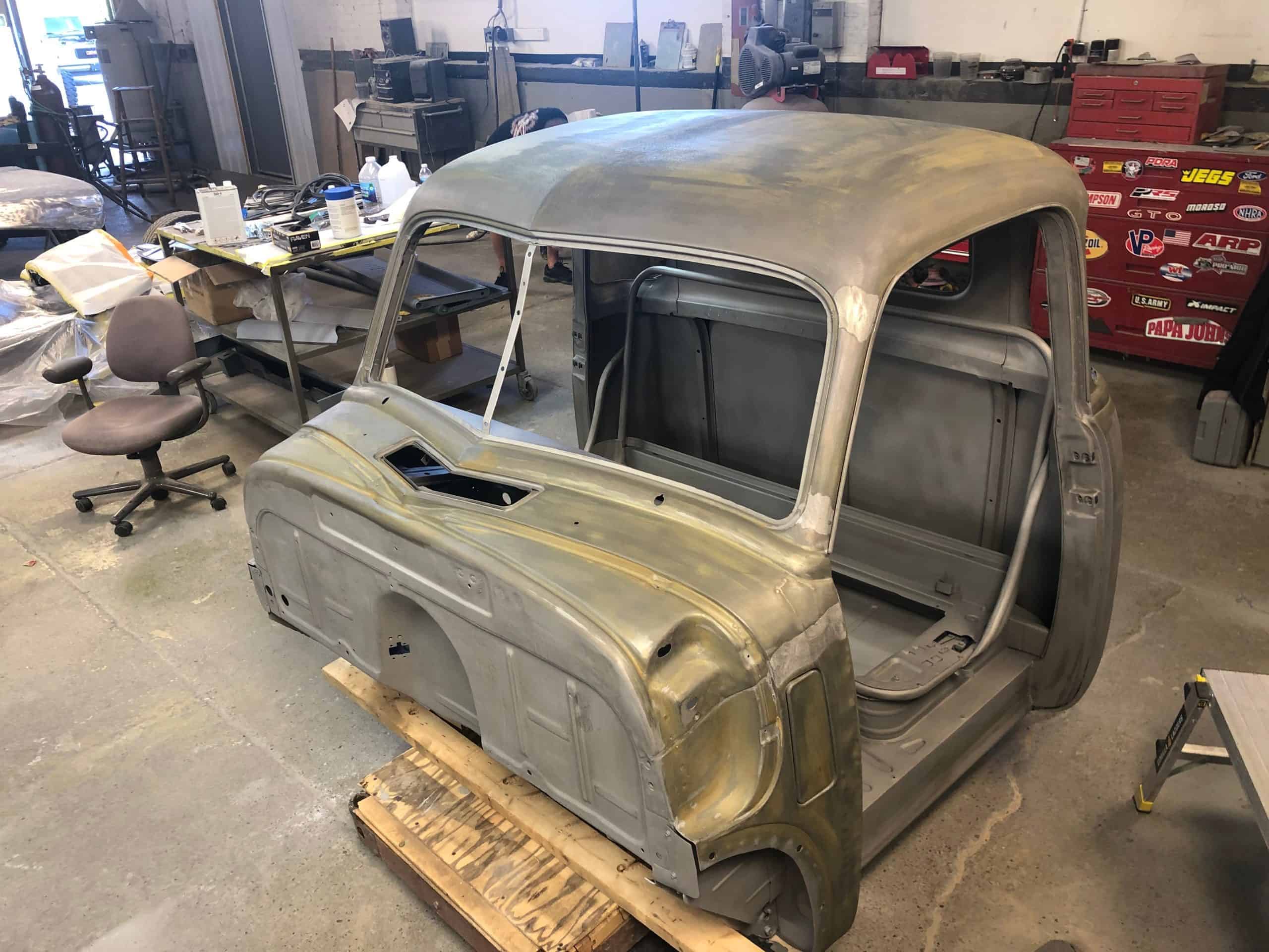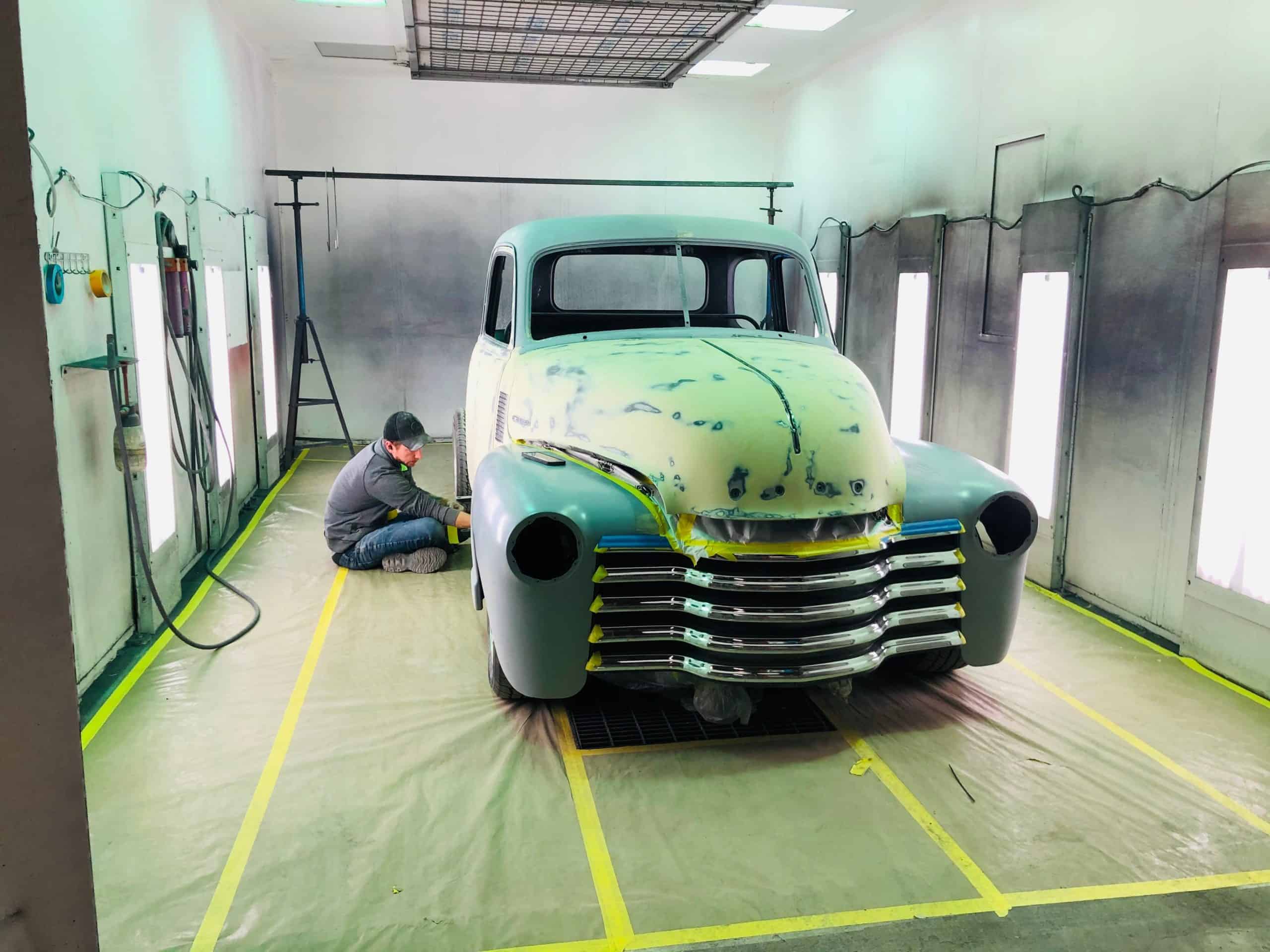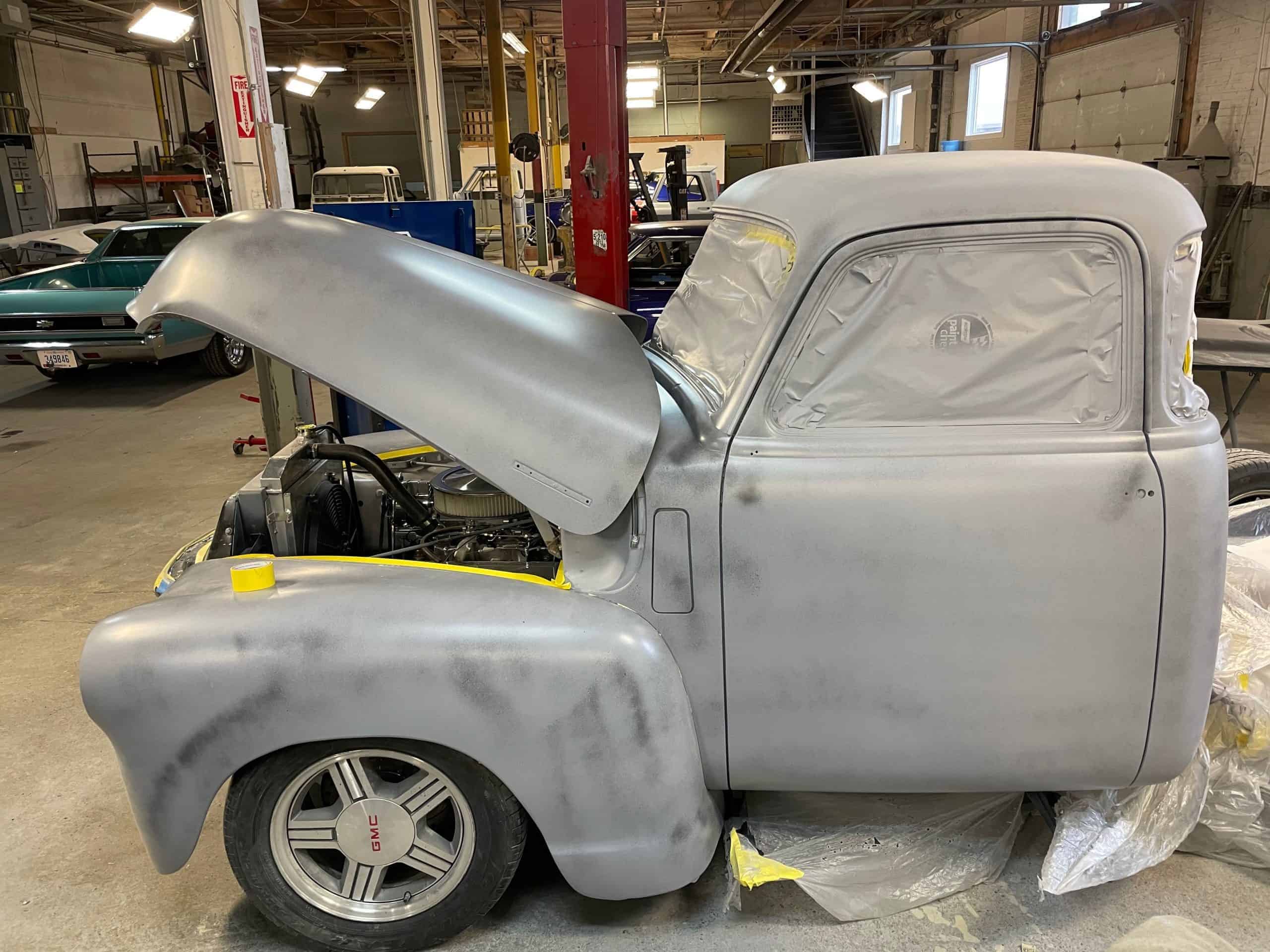 This classic Chevy 3100 5 window pickup was brought in to us to have the entire body stripped to bare metal, any imperfections repaired, all body panels precision gapped, and then have the bodywork done. After all of the prep we will be spraying the truck with a custom candy paint mix from BASF Glasurit 55.