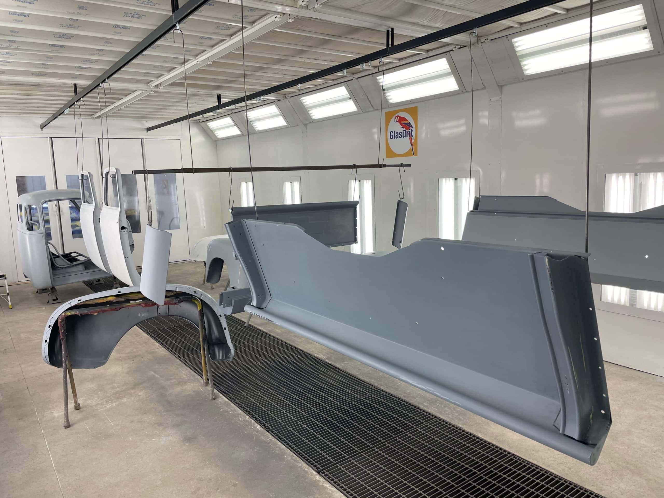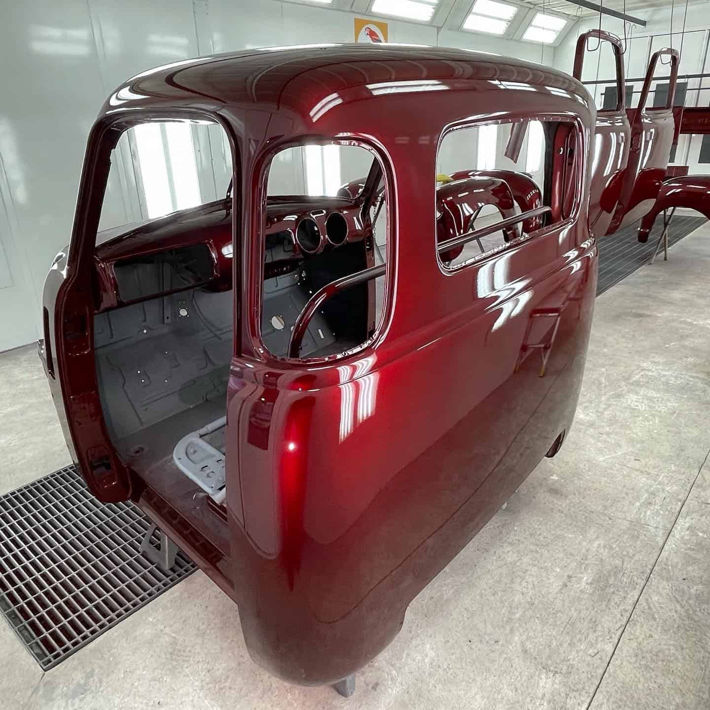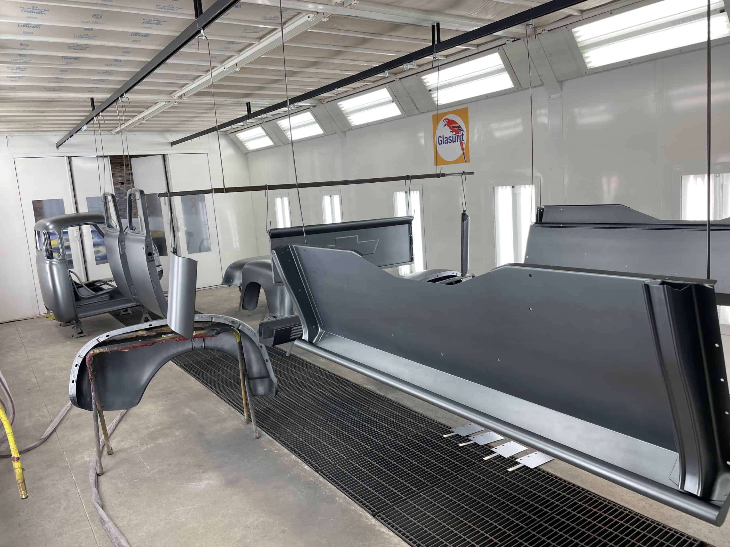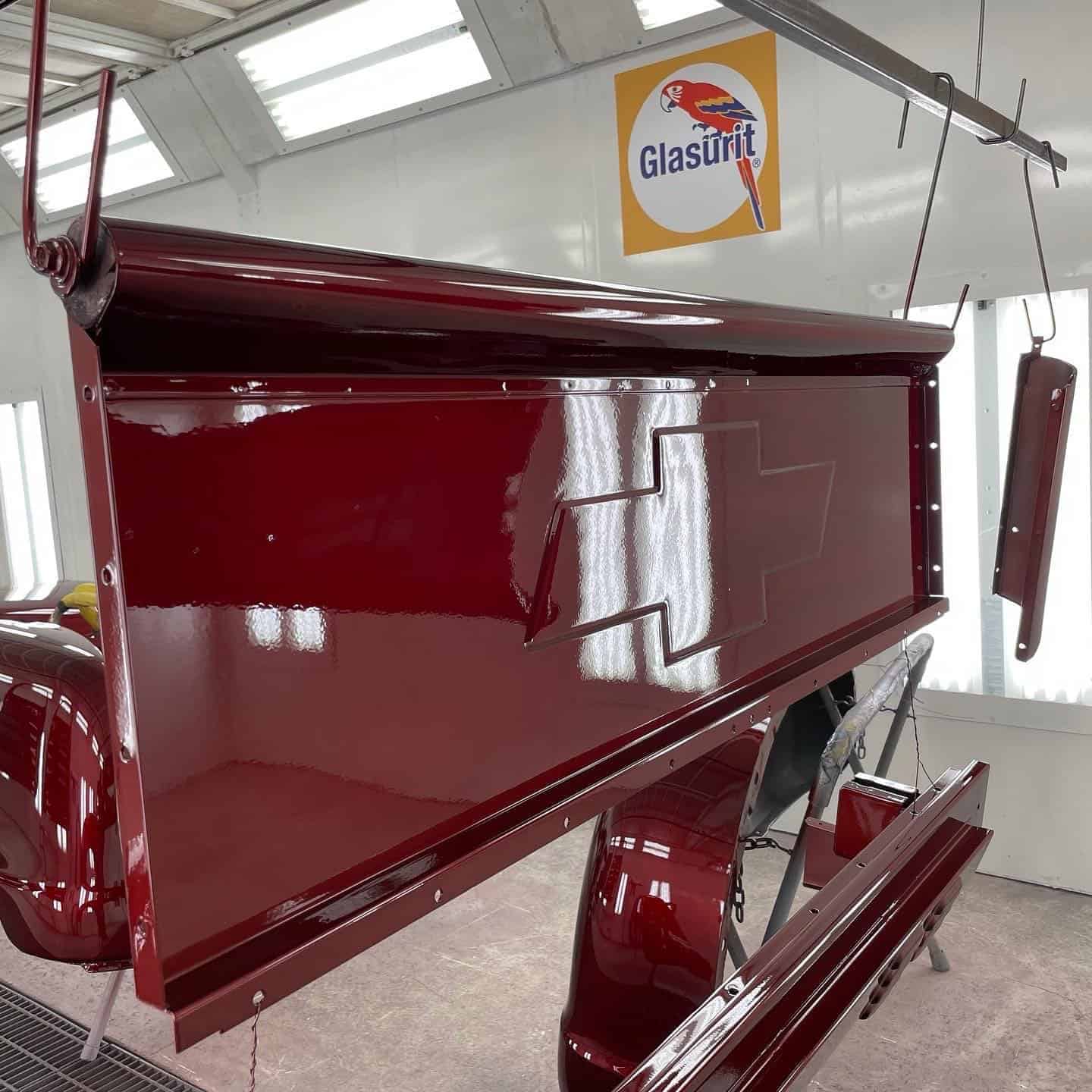 This classic Chevy 3100 5 window pickup was brought in to us to have the entire body stripped to bare metal, any imperfections repaired, all body panels precision gapped, and then have the bodywork done. After all of the prep we will be spraying the truck with a custom candy paint mix from BASF Glasurit 55.