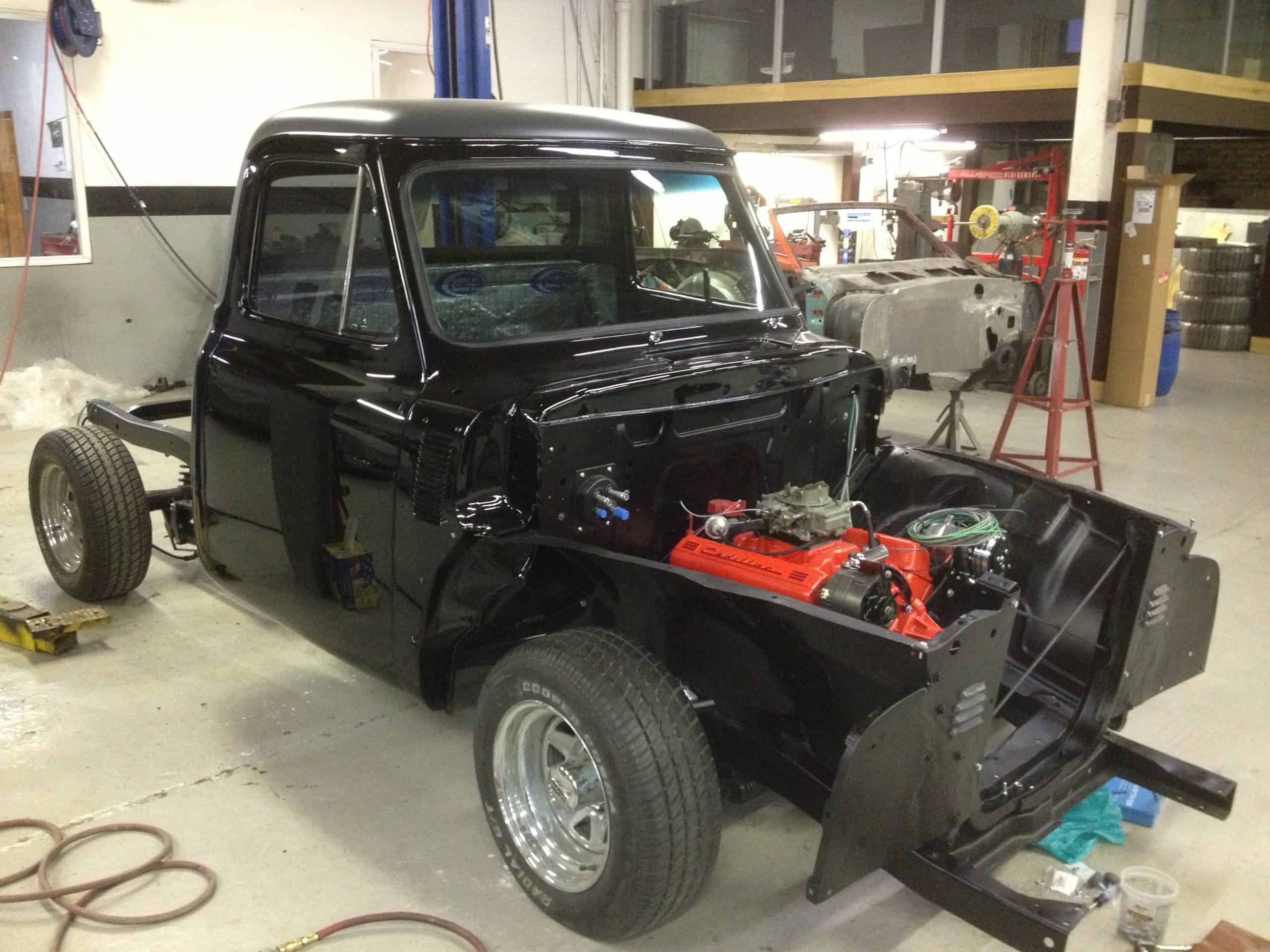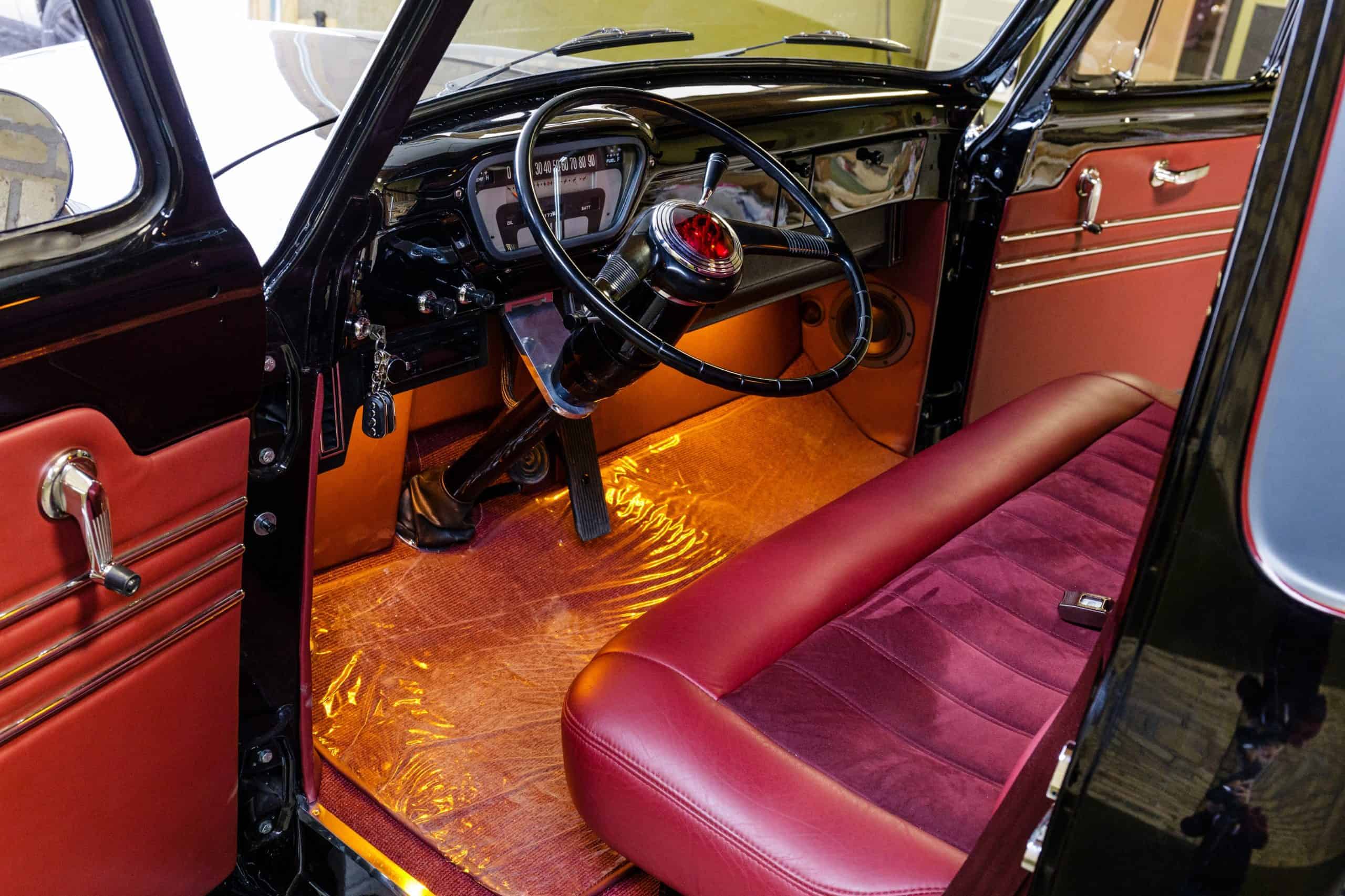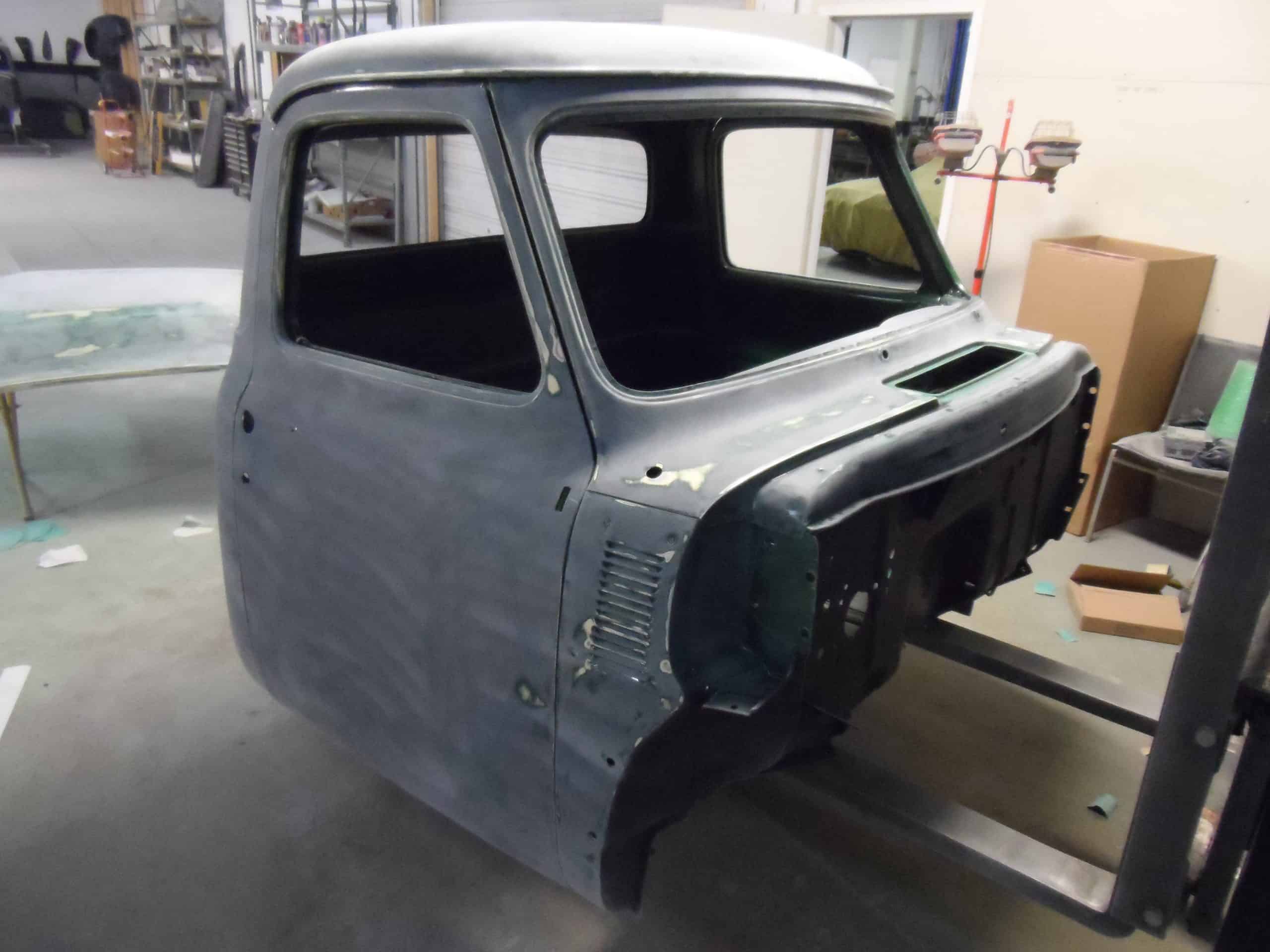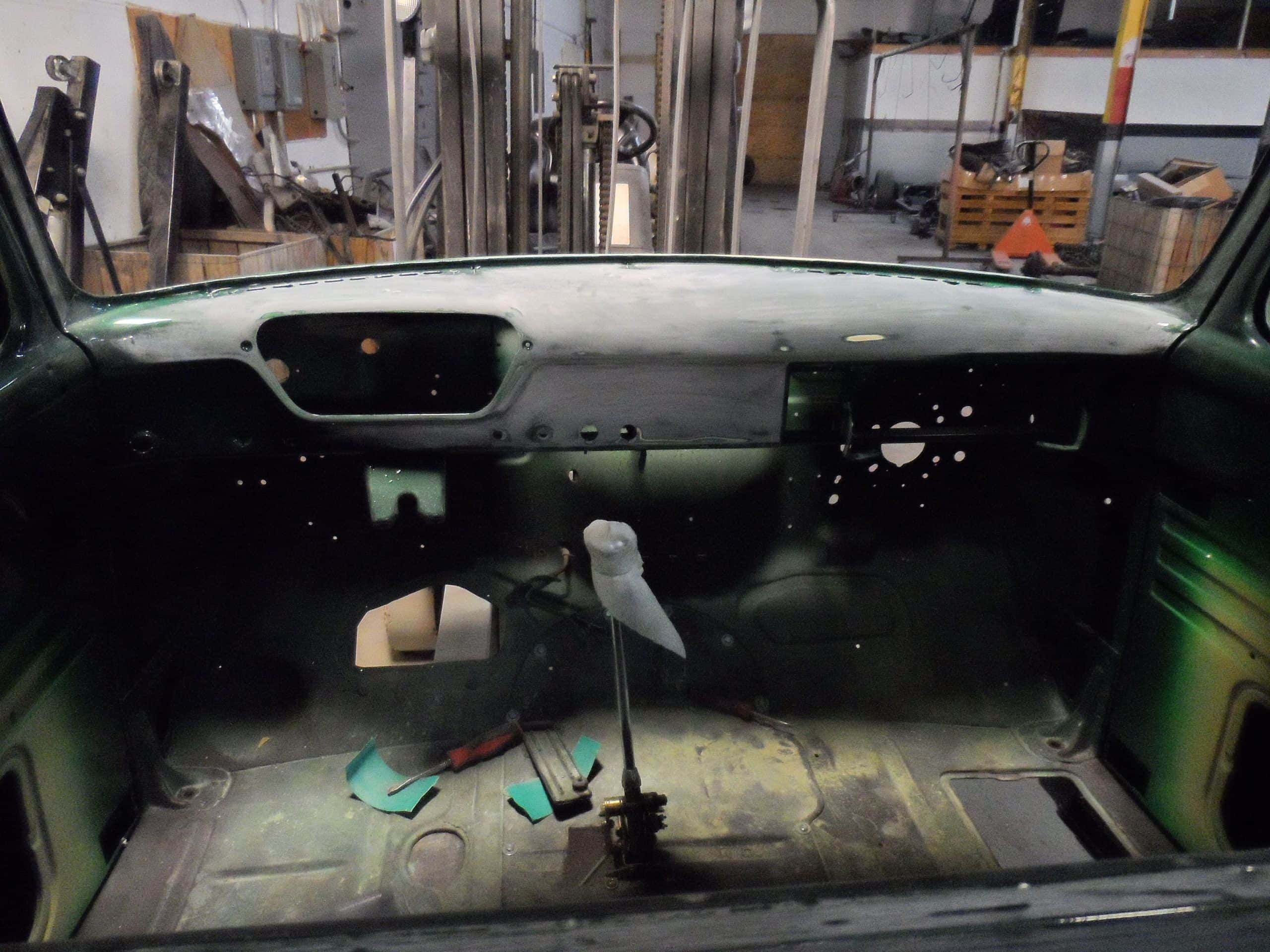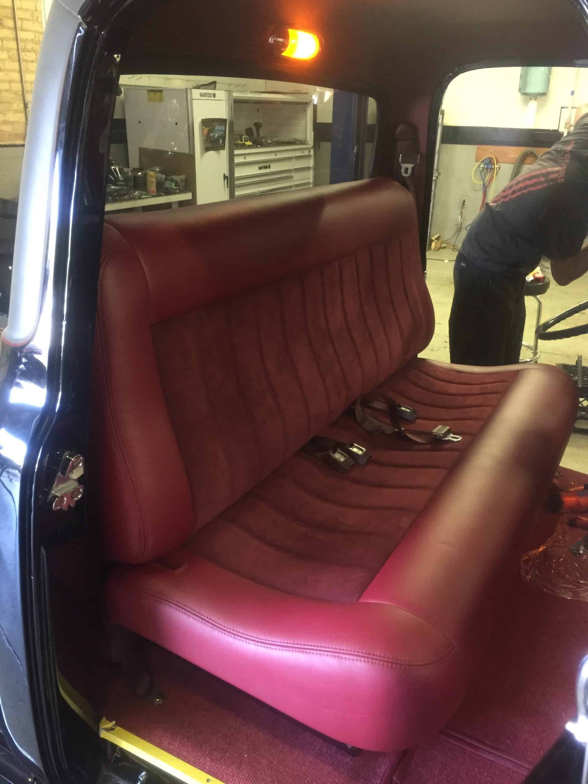 This 1955 Ford F100 pickup was completely rebuilt as a frame-off restoration with a modern Ford 5.0L Coyote V8 engine, rear 4-link suspension, and custom leather interior.