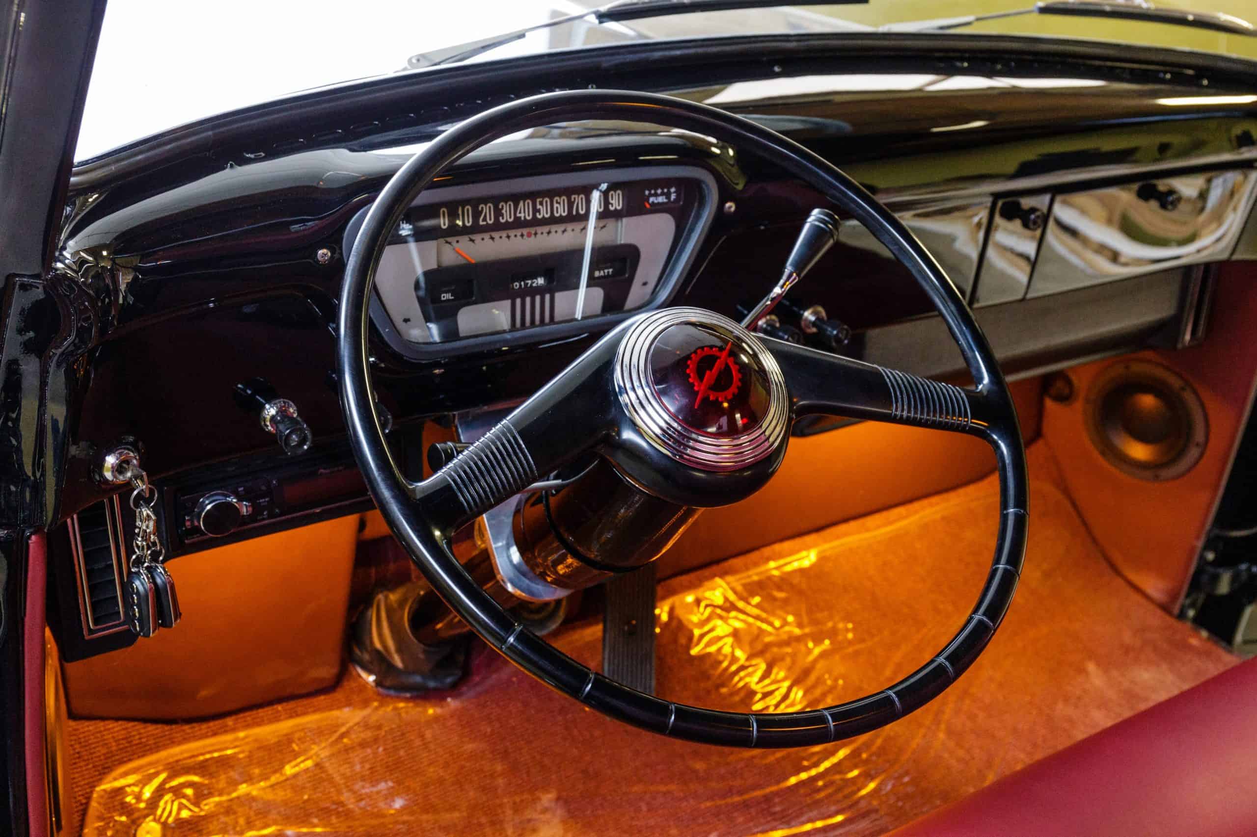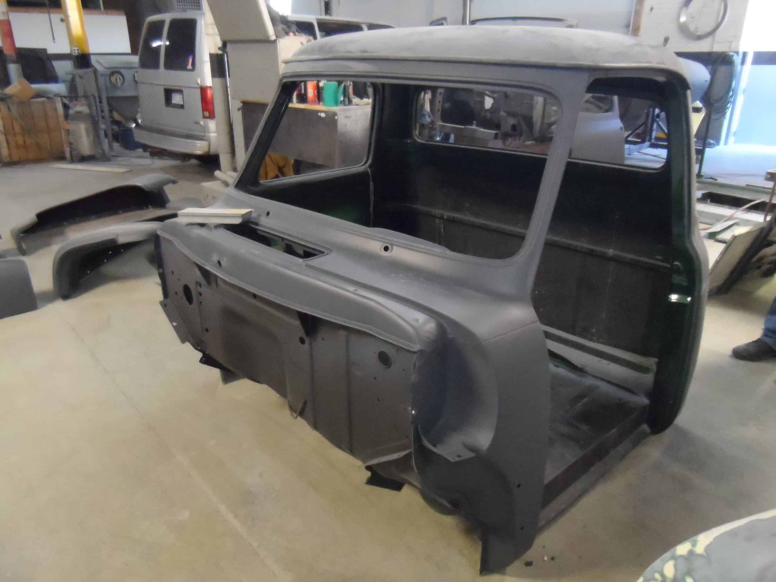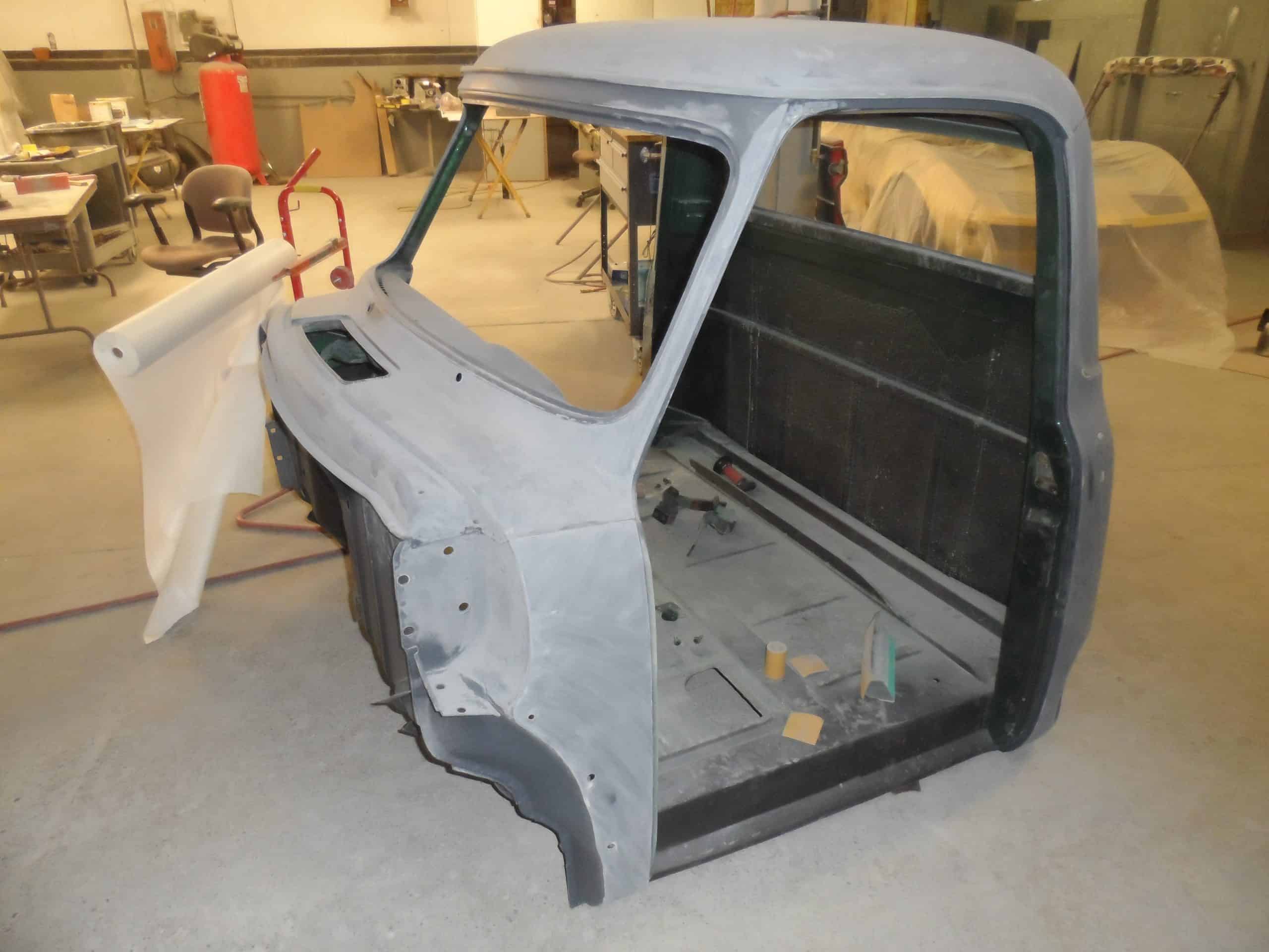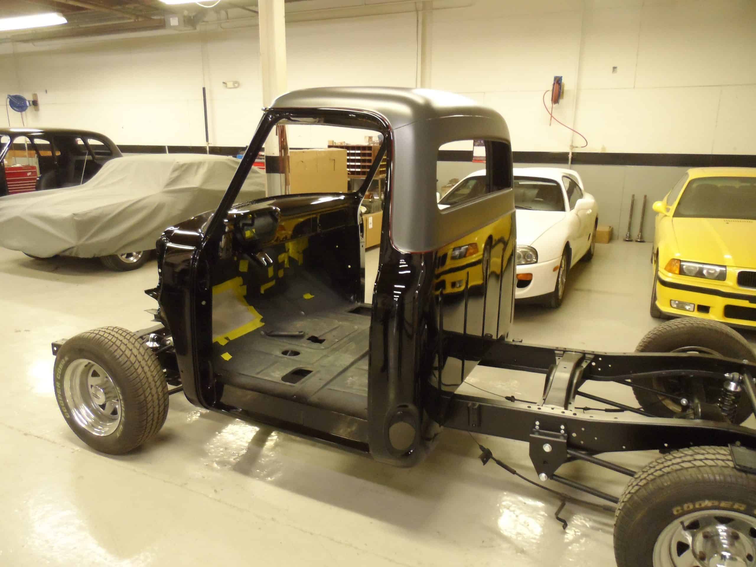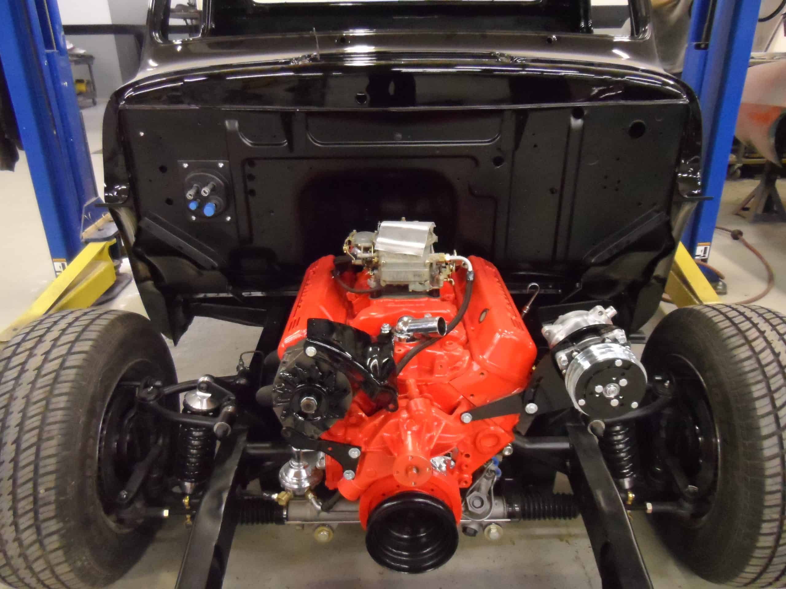 This 1955 Ford F100 pickup was completely rebuilt as a frame-off restoration with a modern Ford 5.0L Coyote V8 engine, rear 4-link suspension, and custom leather interior.
