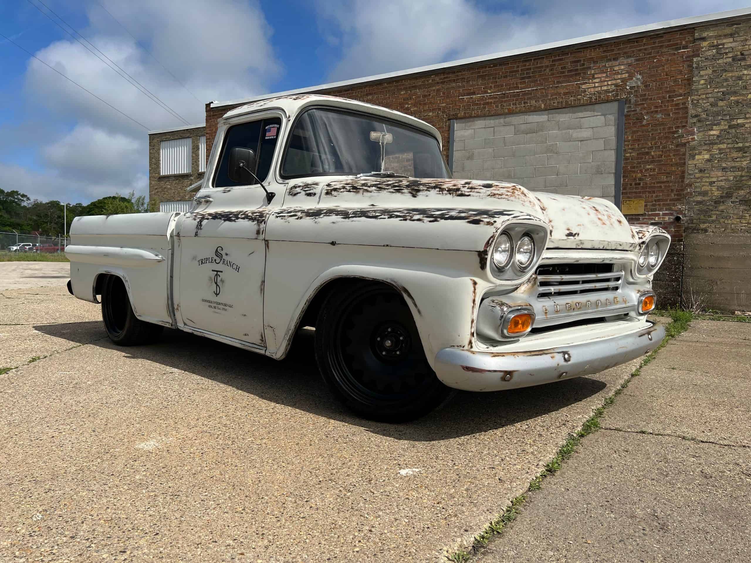 This 59′ Chevrolet Apache was brought to us as a partially started project. We were tasks with the challenge of creating a faux patina look and converting the old Apache into a street beast that could be driven anywhere. The Apace features a basically original body but under the hood it has a modern LS3 swap with a 6 speed Tremec trans, Vintage Air, American autowire harness, K&N filter, and complete custom faux Patina paint job done with BASF Glasurit 55