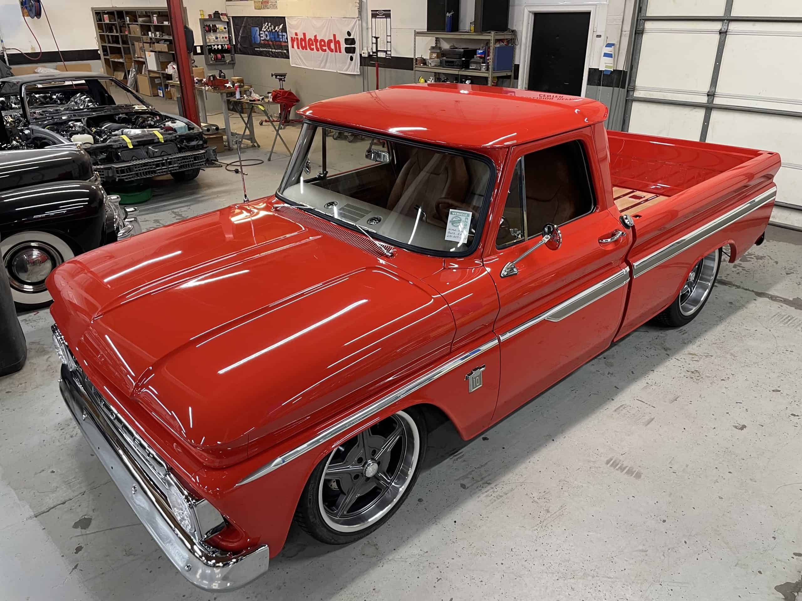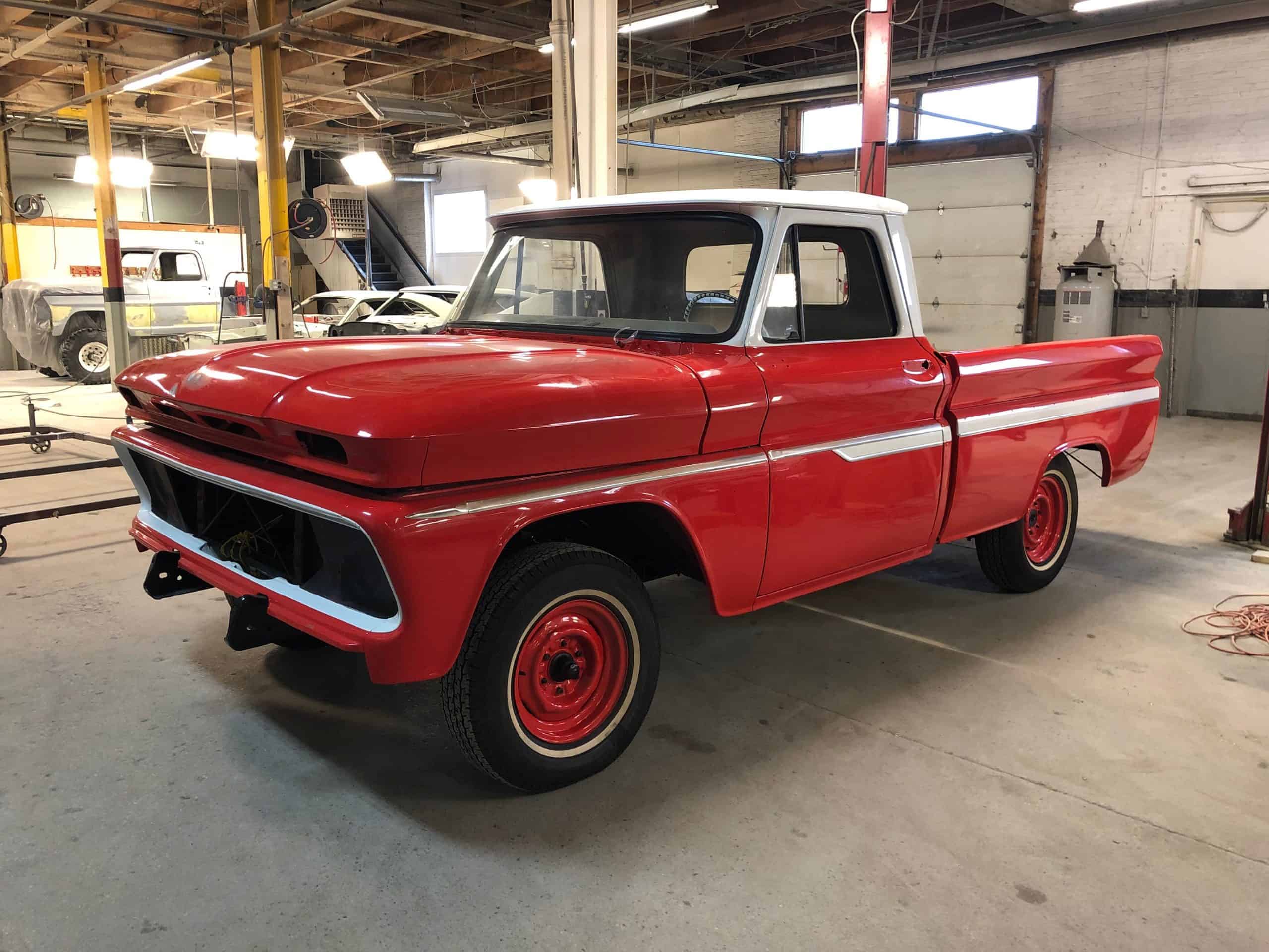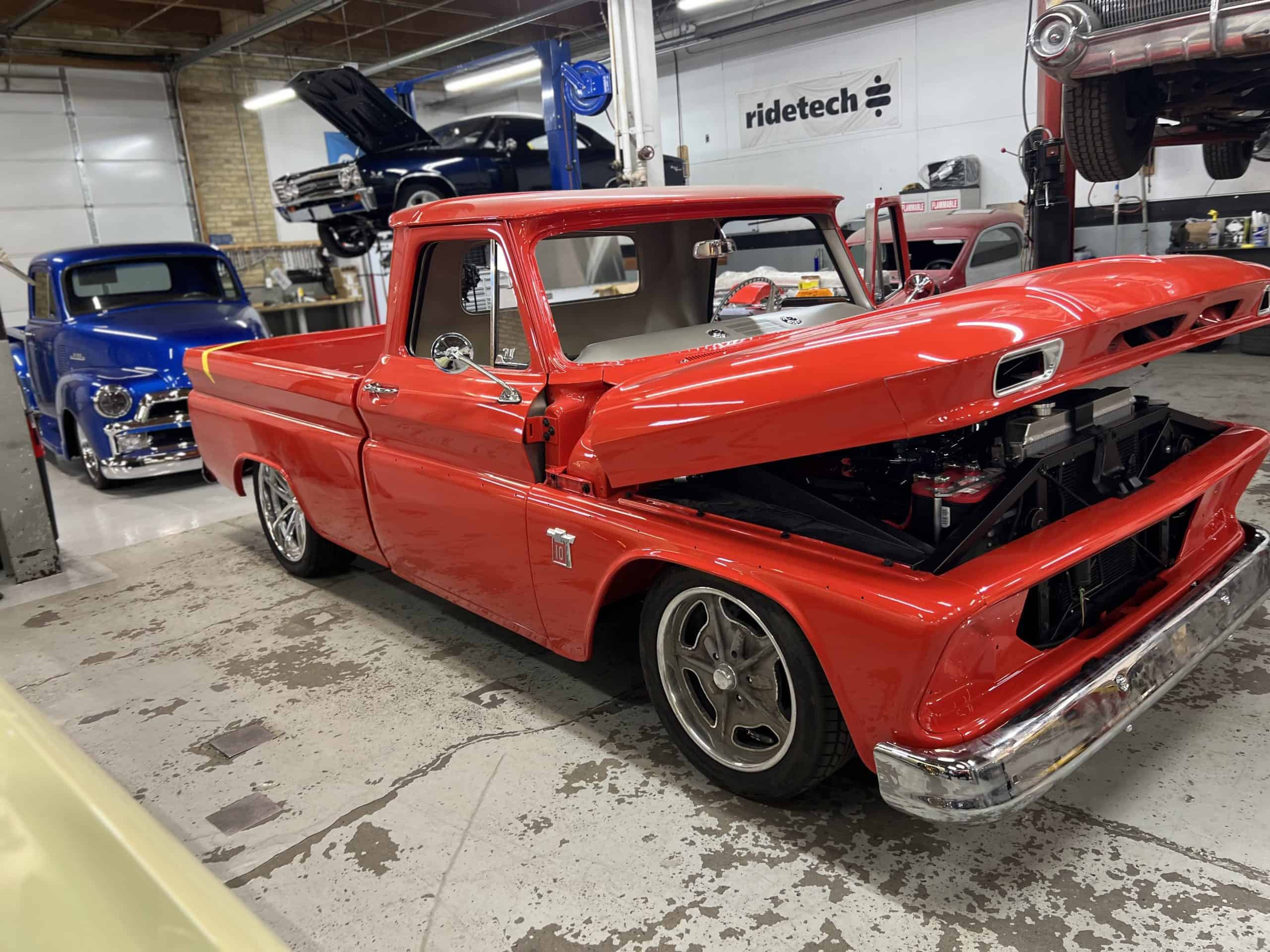 This 1964 C10 is in for a complete restoration of the body and paint as well as several upgrades to the chassis, driveline and interior.  The goal is to make this old Chevy look and perform much better than it originally came back in 1964.  We will be using products from RideTech, Wilwood, American Autowire, BeCool, Dynamat, 3M and BASF Cardinal red Glasurit Paint