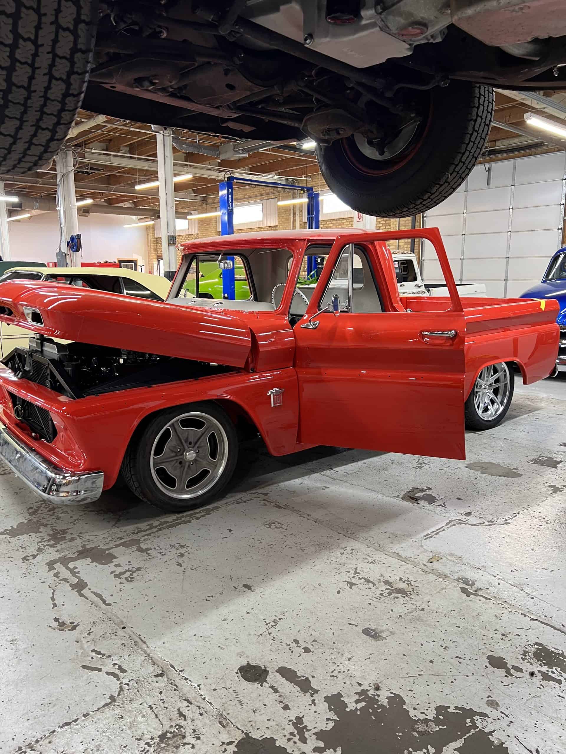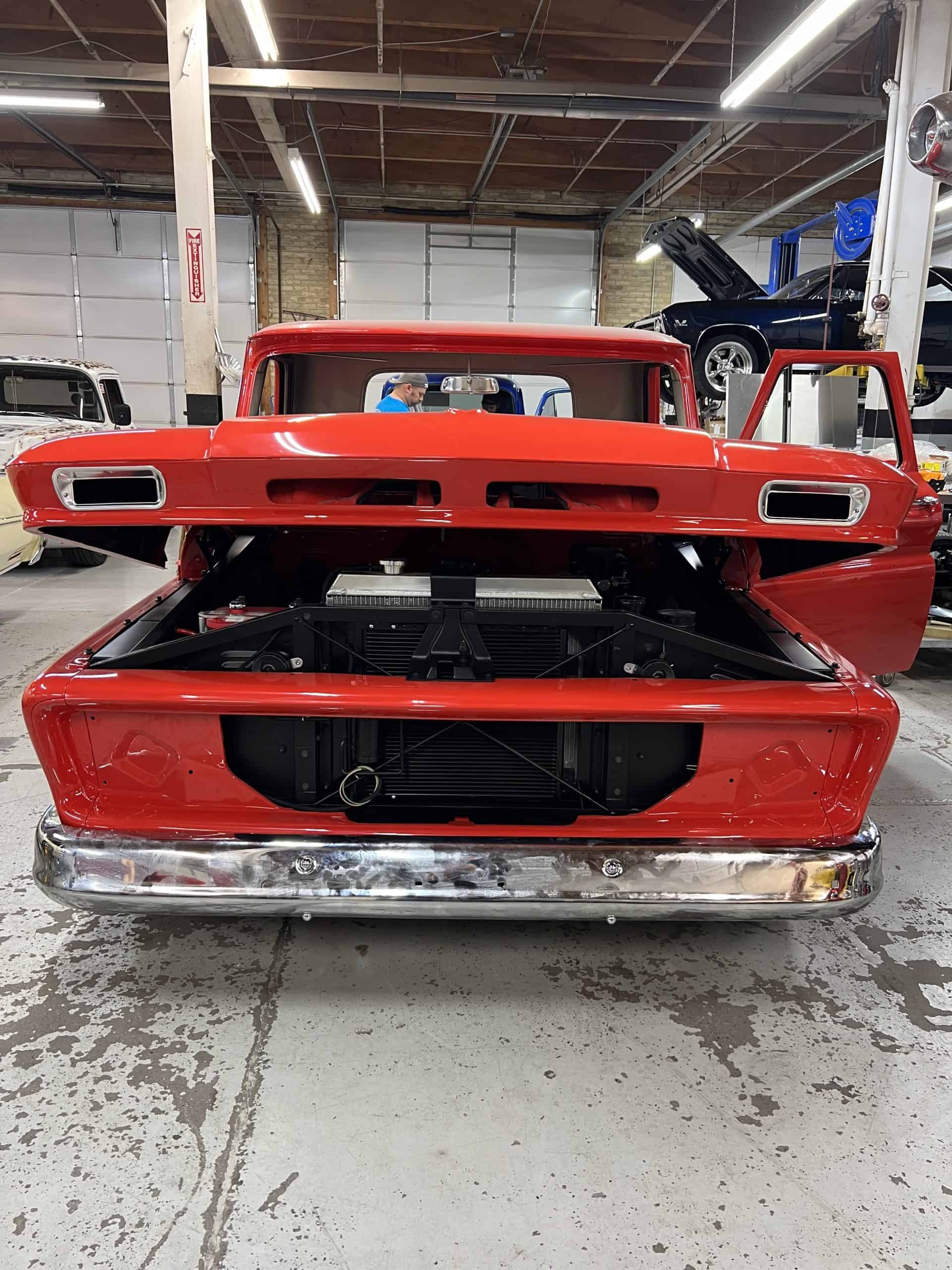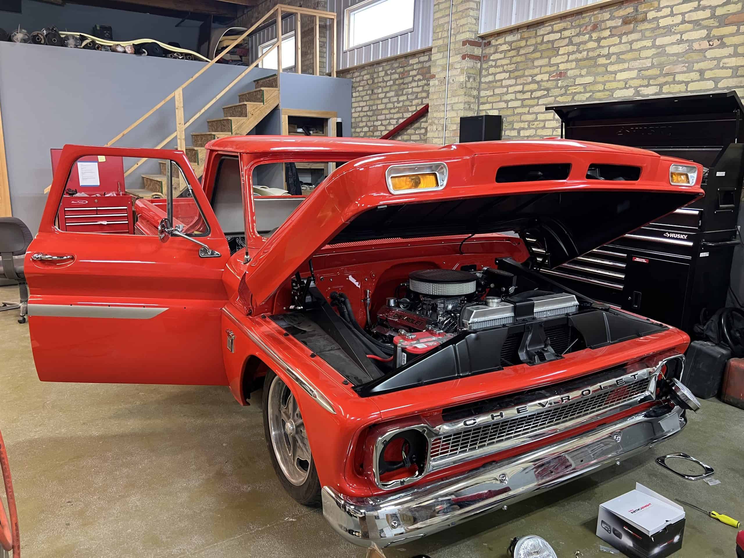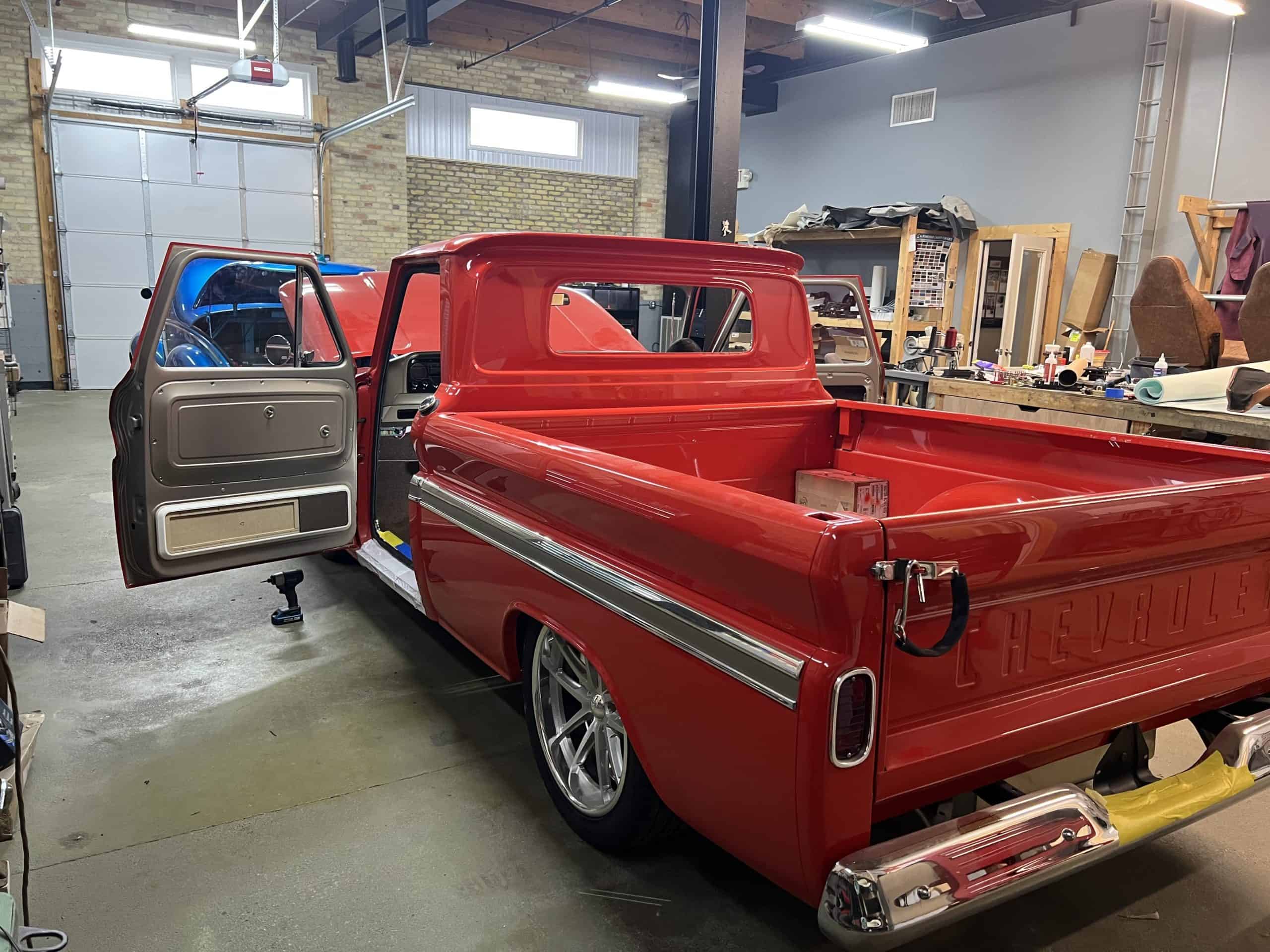 This 1964 C10 is in for a complete restoration of the body and paint as well as several upgrades to the chassis, driveline and interior.  The goal is to make this old Chevy look and perform much better than it originally came back in 1964.  We will be using products from RideTech, Wilwood, American Autowire, BeCool, Dynamat, 3M and BASF Cardinal red Glasurit Paint