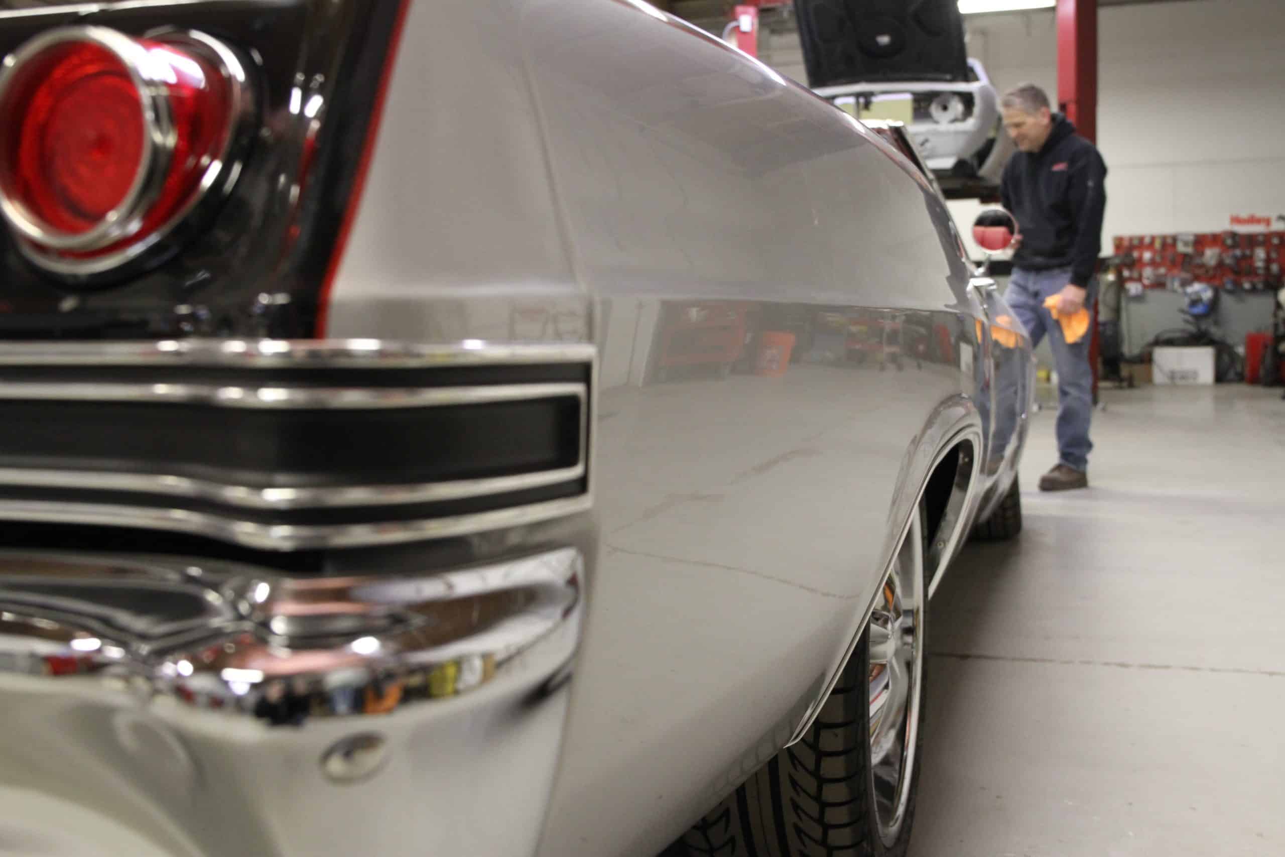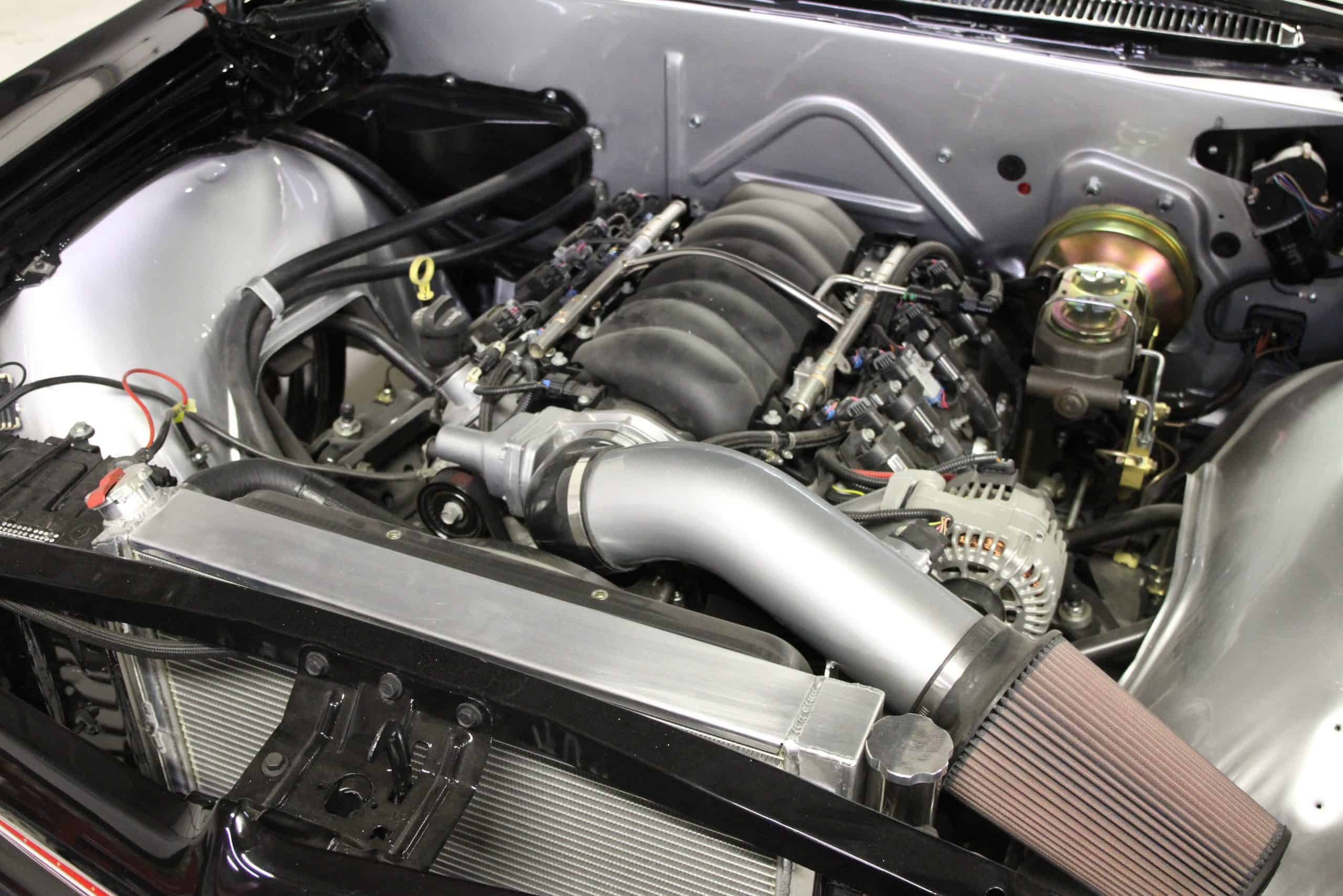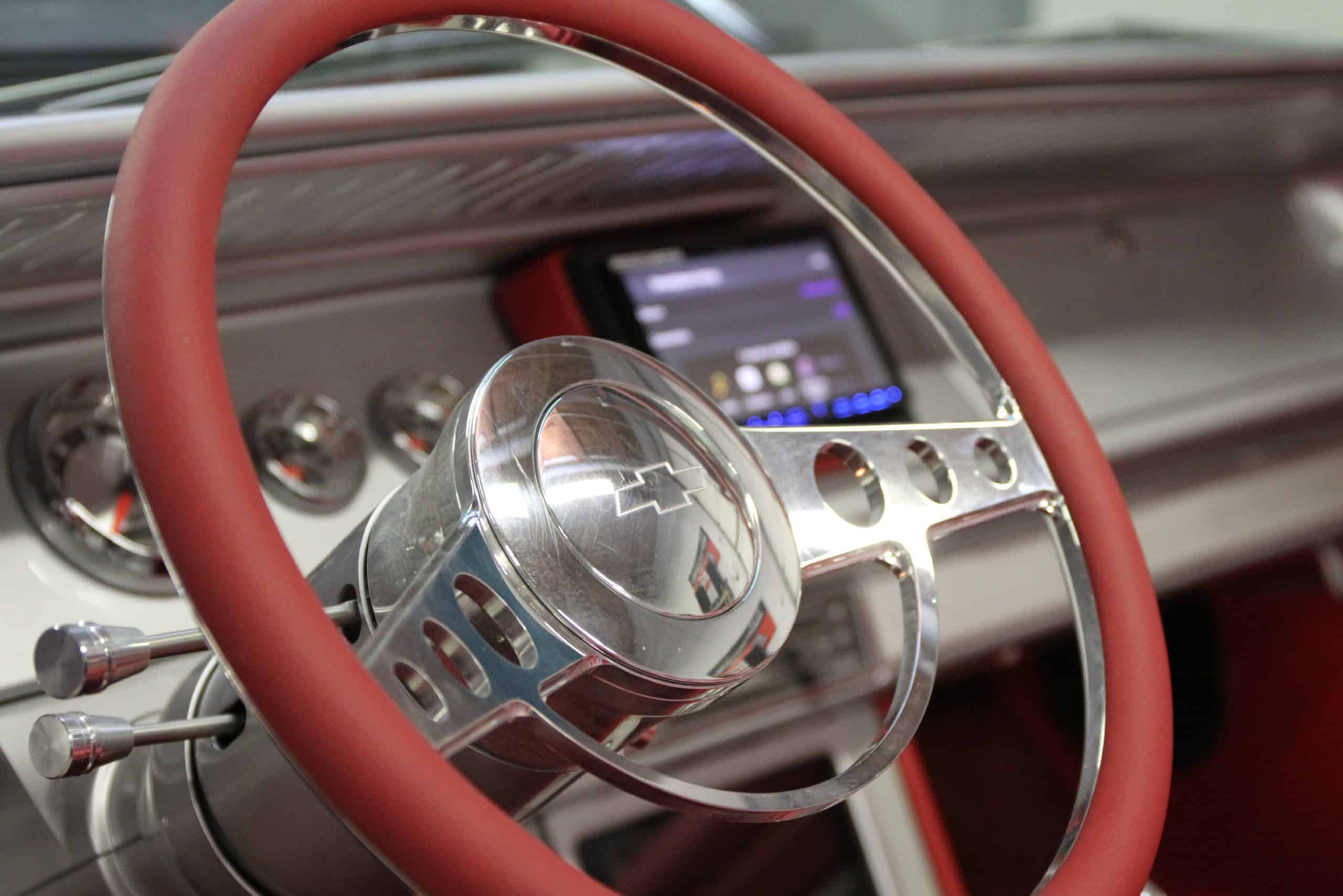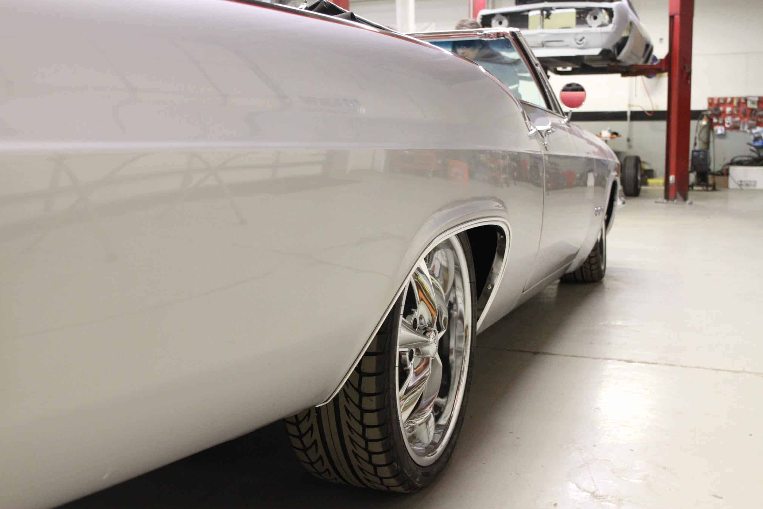 This 1965 Impala features a full restoration with a 480 hp LS V8, Ridetech air ride suspension, Wilwood disc brakes, custom two tone PPG paint and a full custom interior