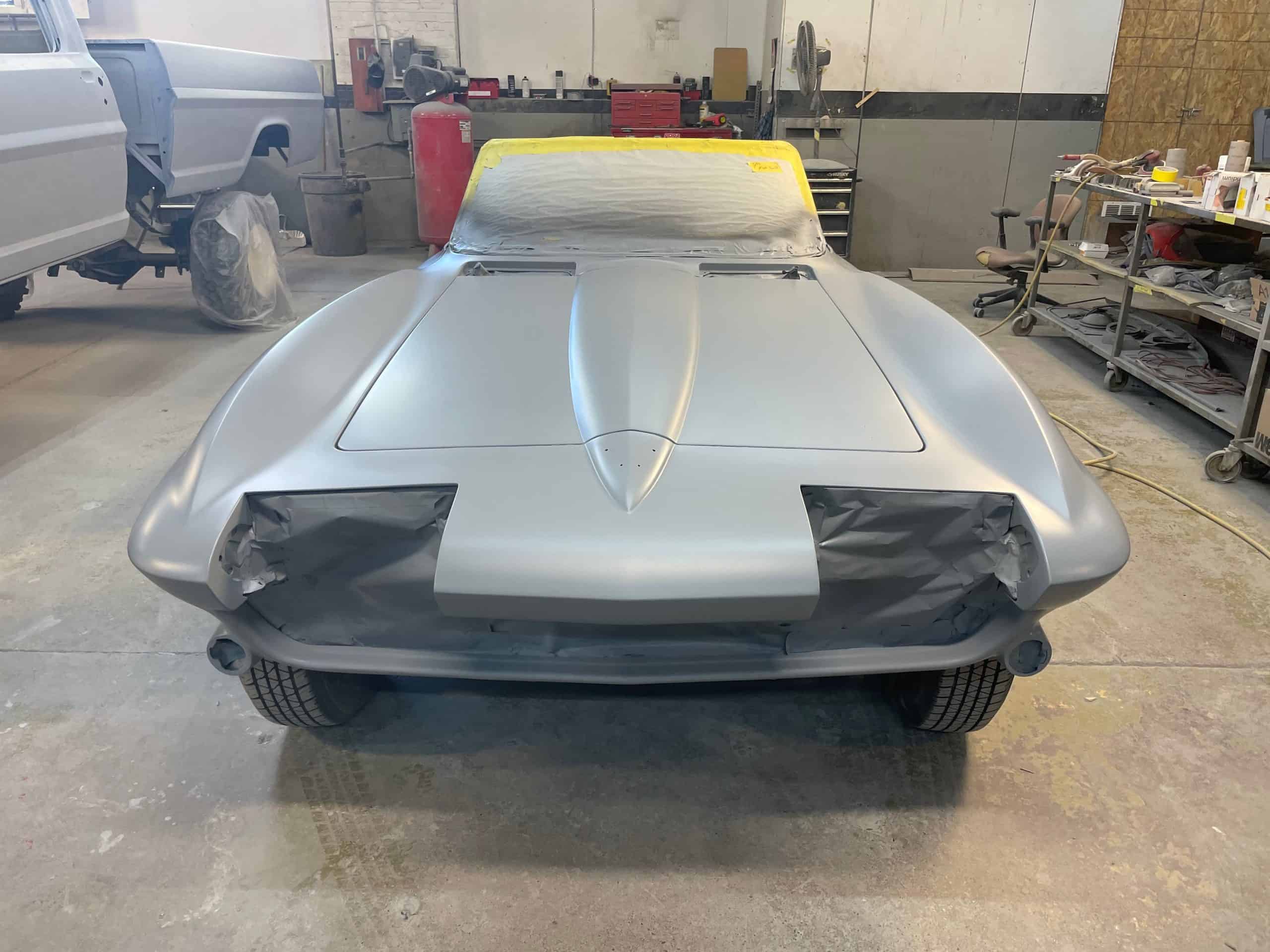 This Corvette received the complete restomod treatment including a 525 HP LS3 mated to a Bowler TKX 5 speed manual. The suspension was upgraded to tubular A arms and coilovers. We also added Wilwood Disc brakes to increase stopping power and Dakota Digital gauges to monitor all of that horsepower