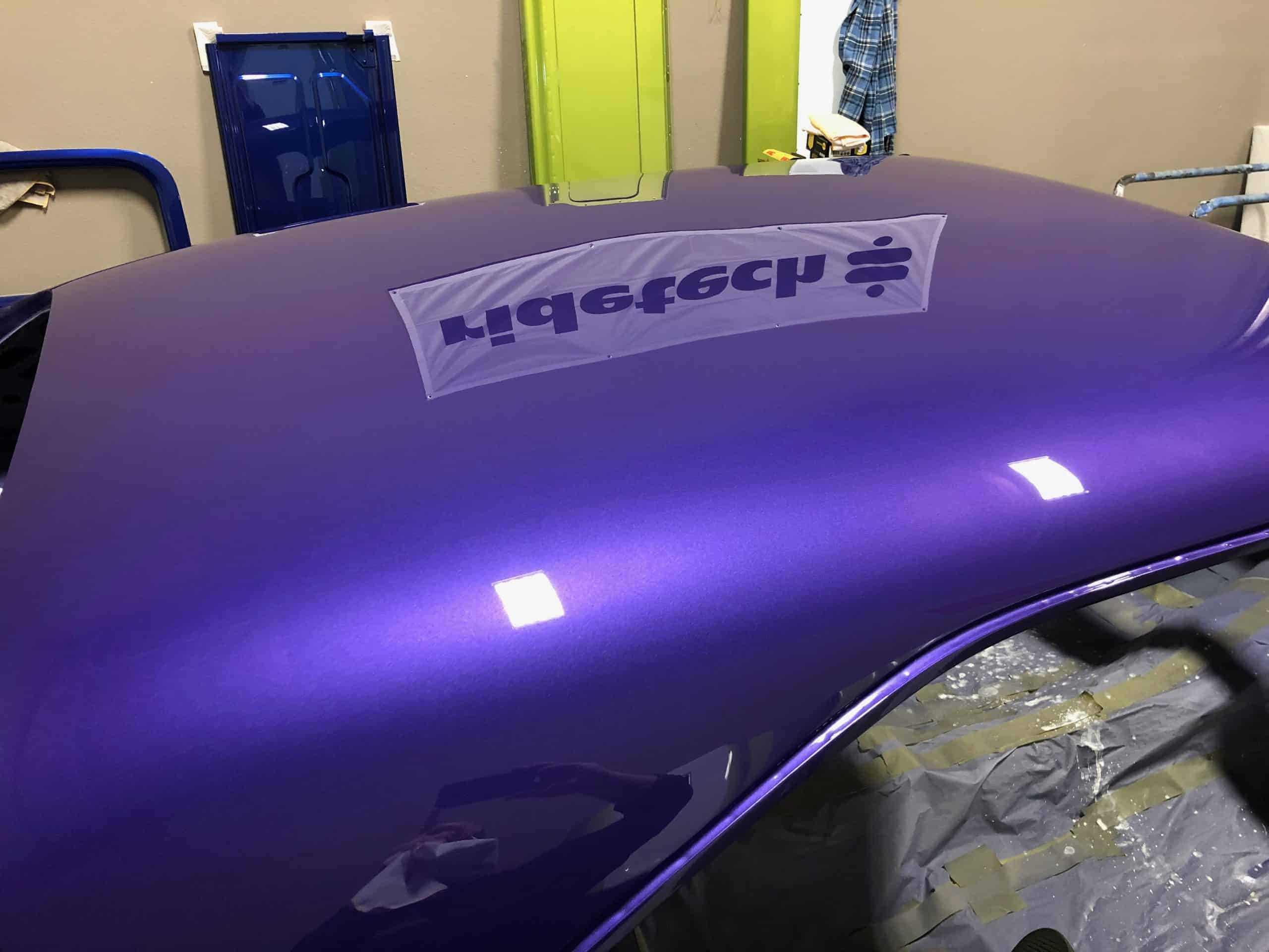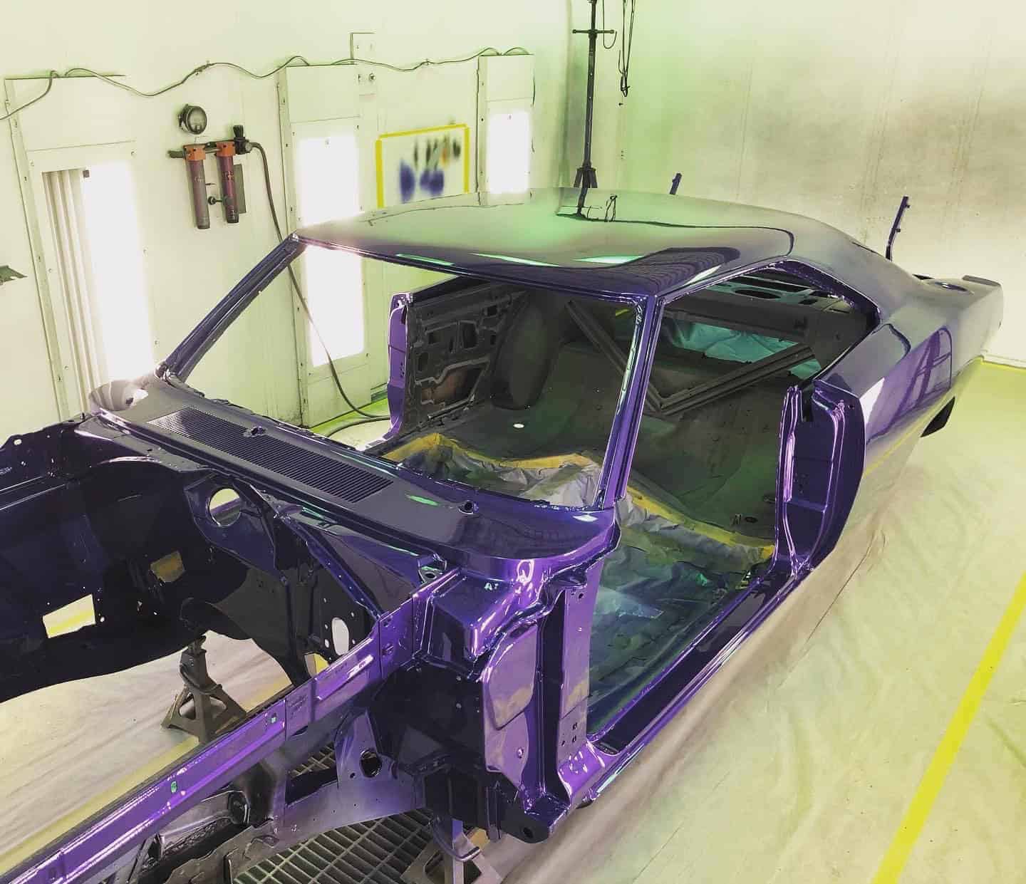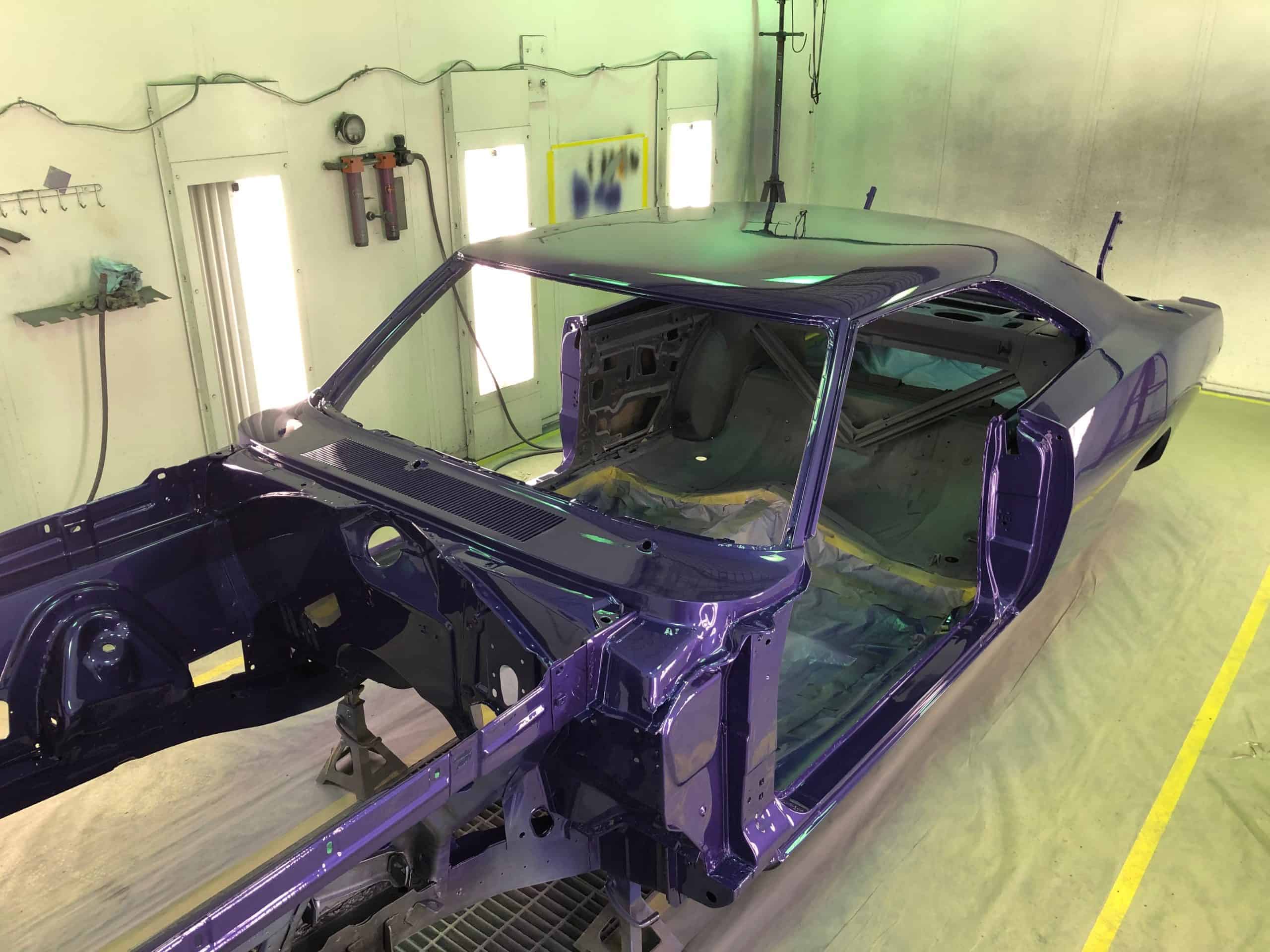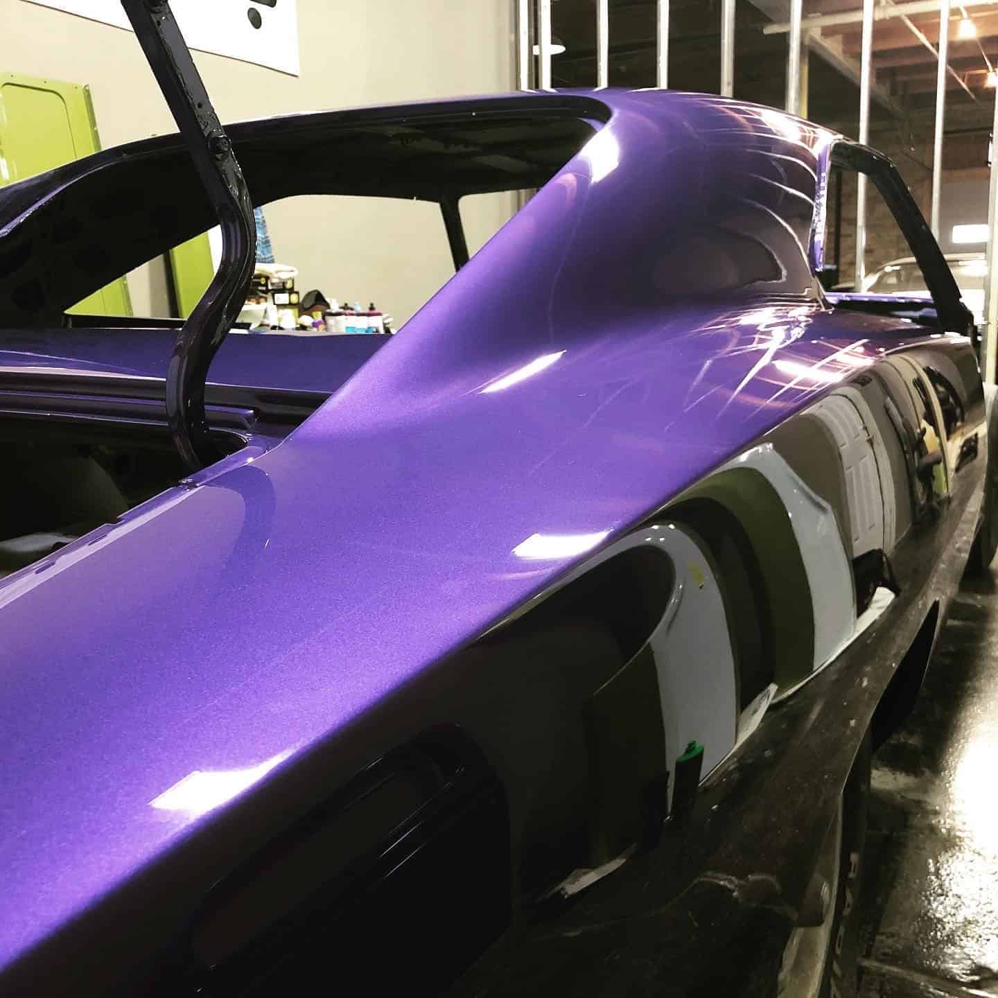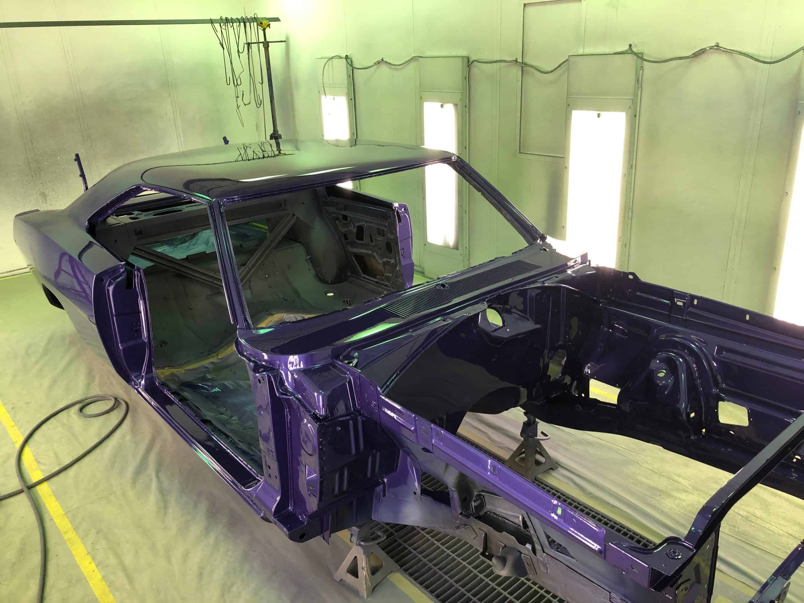 1968 Charger Restomod complete with a 6.4 L Gen IV Hemi, Ridetech air ride suspension, Wilwood disc brakes BASF Glasurit Plum Crazy paint and a full custom interior