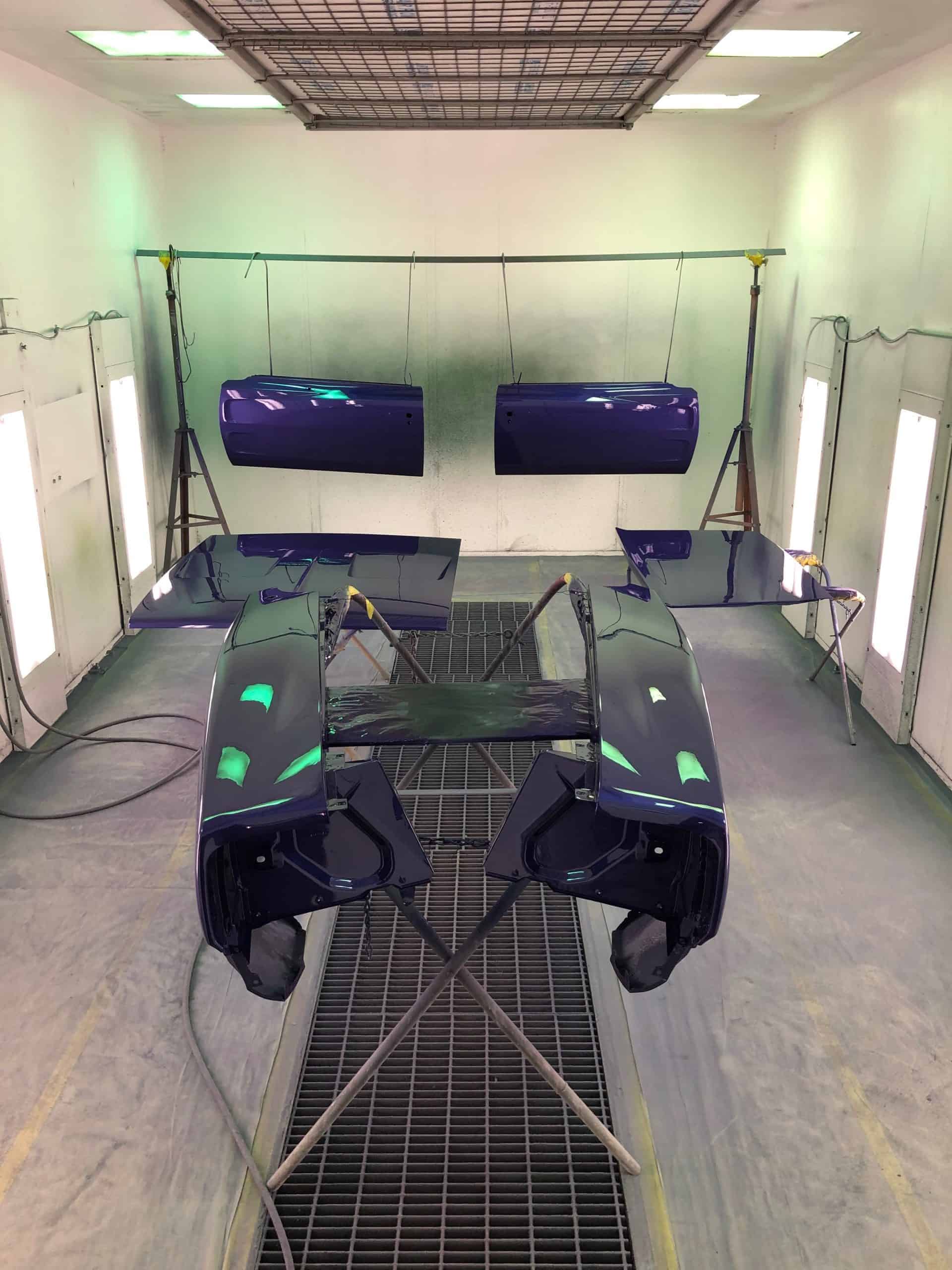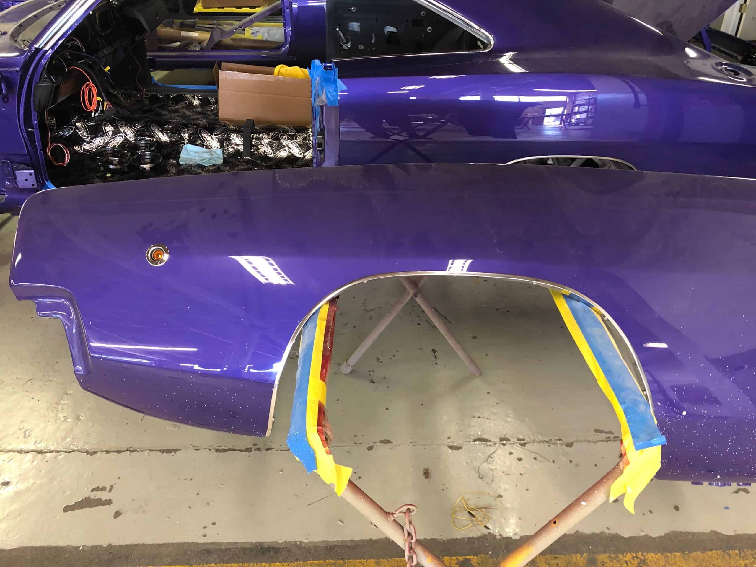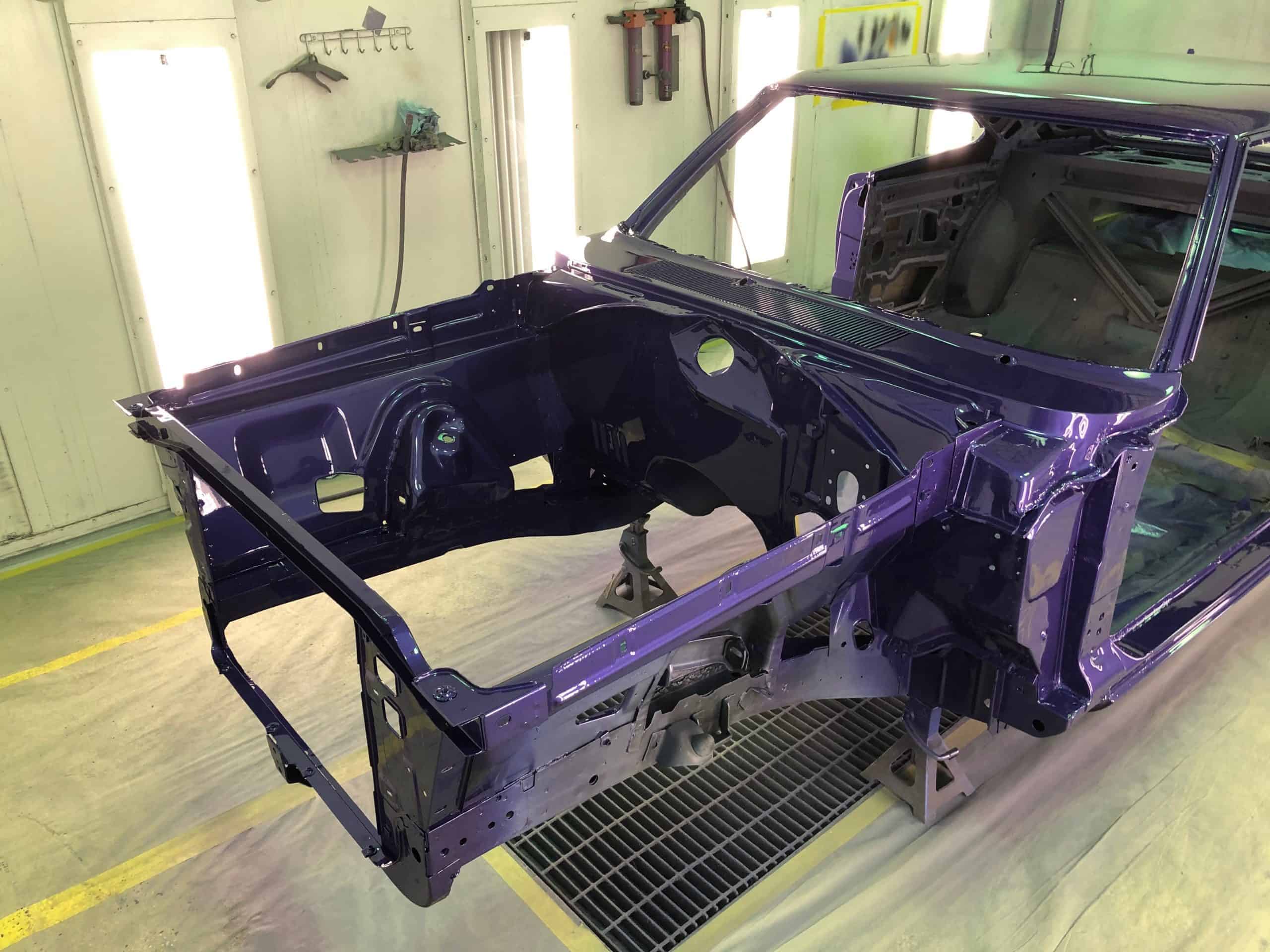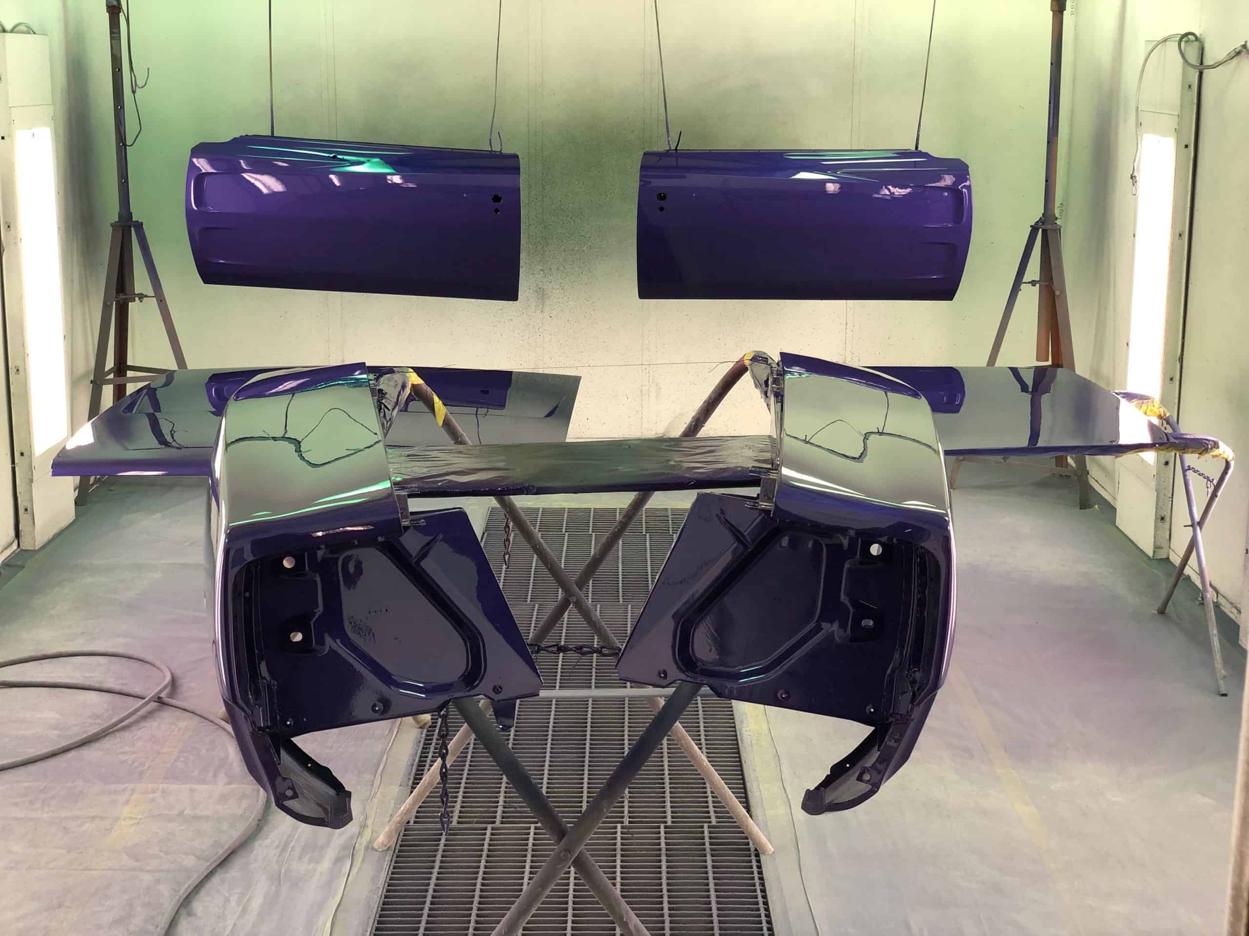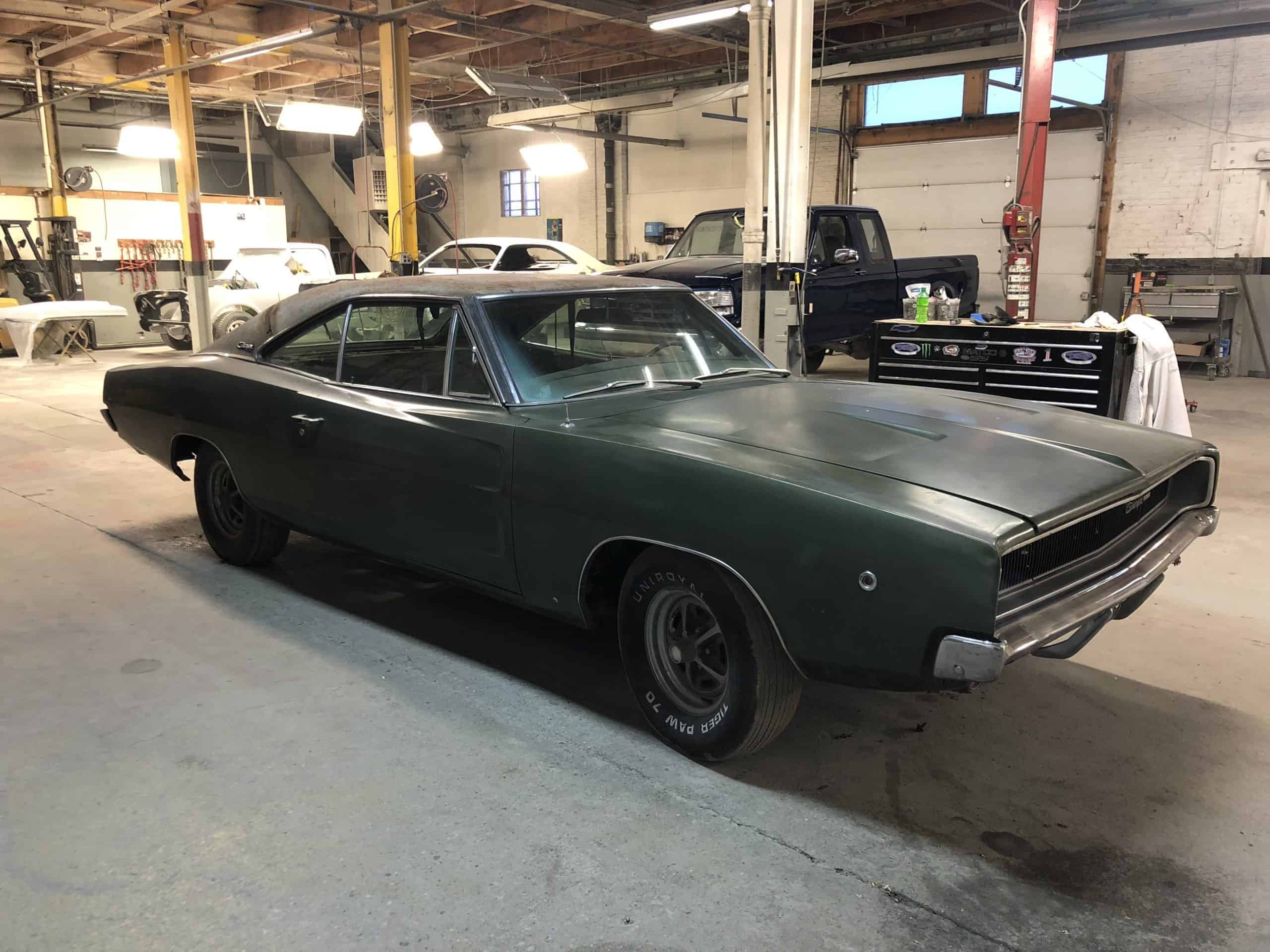 1968 Charger Restomod complete with a 6.4 L Gen IV Hemi, Ridetech air ride suspension, Wilwood disc brakes BASF Glasurit Plum Crazy paint and a full custom interior