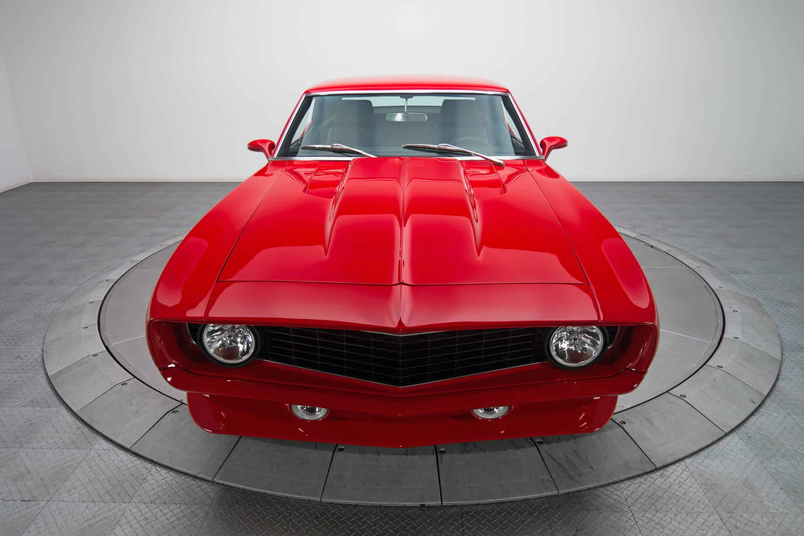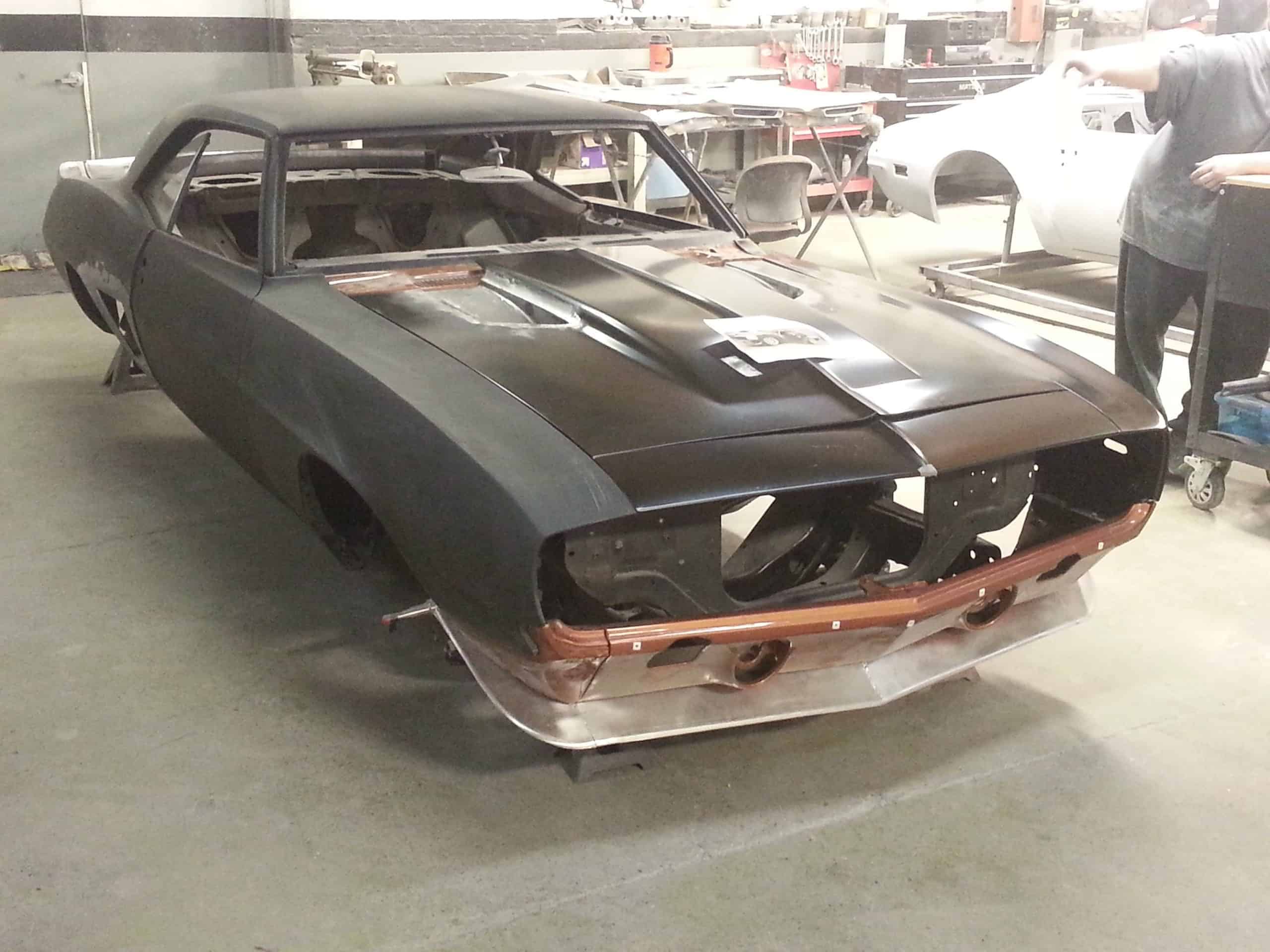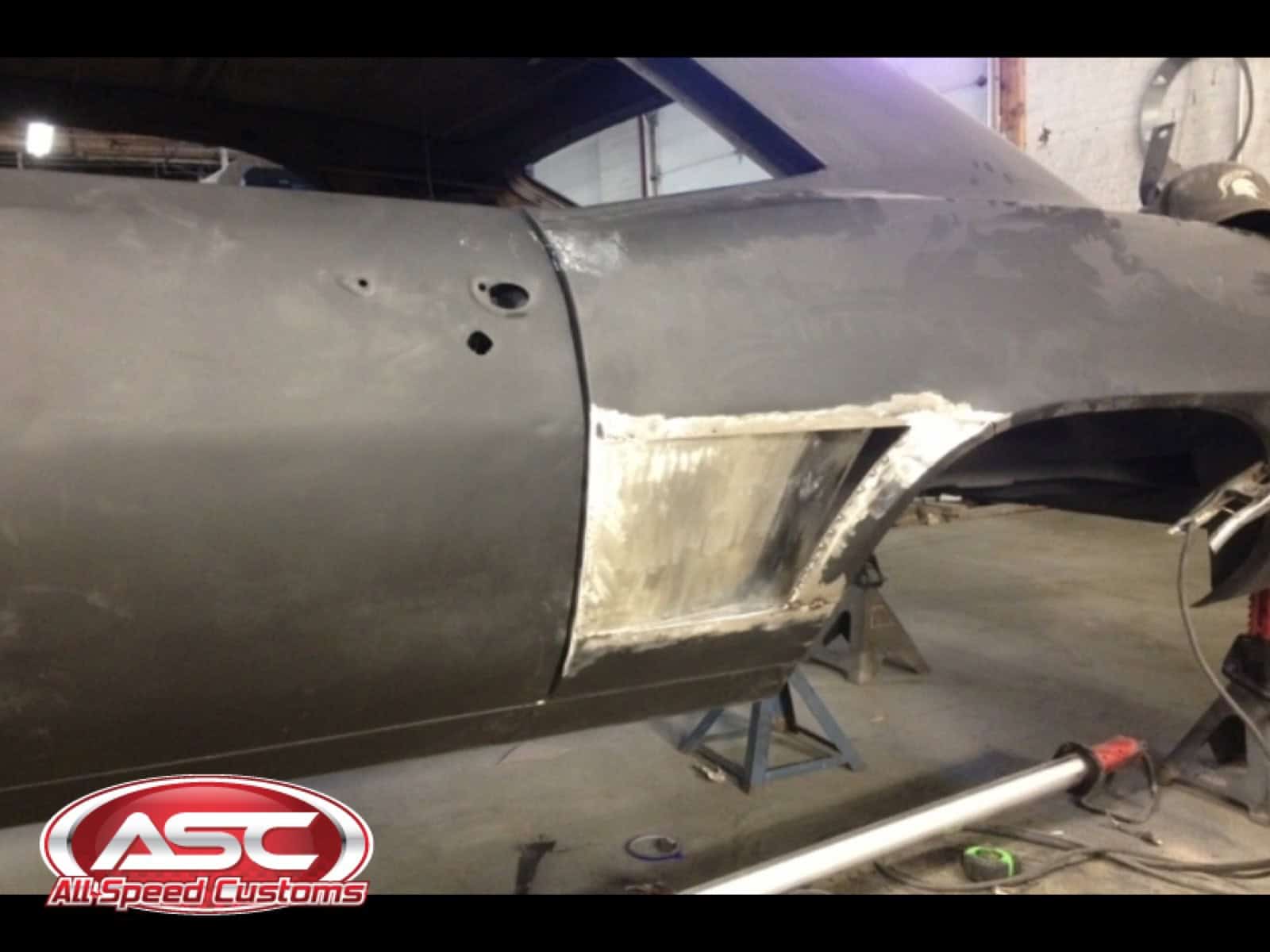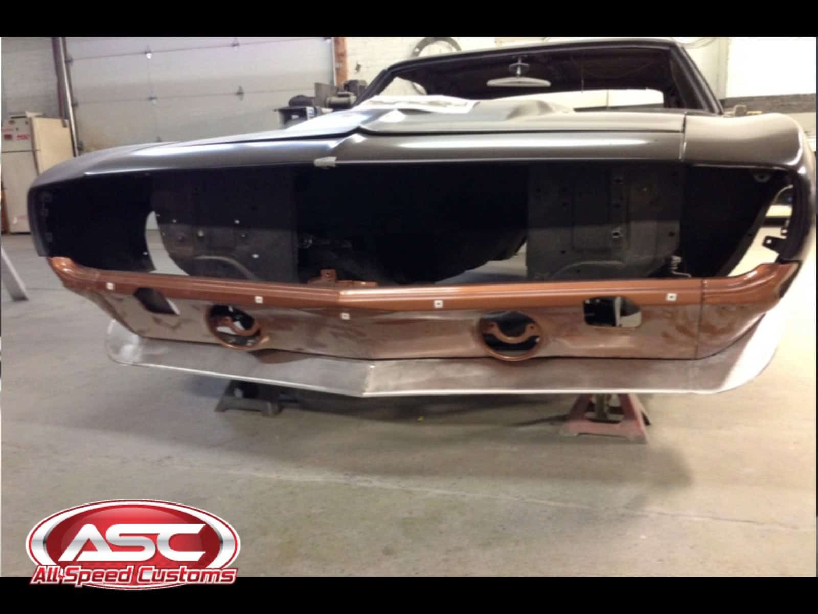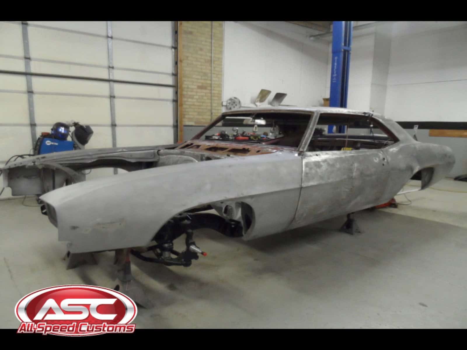 This is a 1969 Camaro that was brought to All Speed Customs for a complete rotisserie restoration and rebuild, including custom bodywork and fabrication, modern LS3 engine with 6-speed manual, fully upgraded suspension with Wilwood brakes, and upholstered interior.