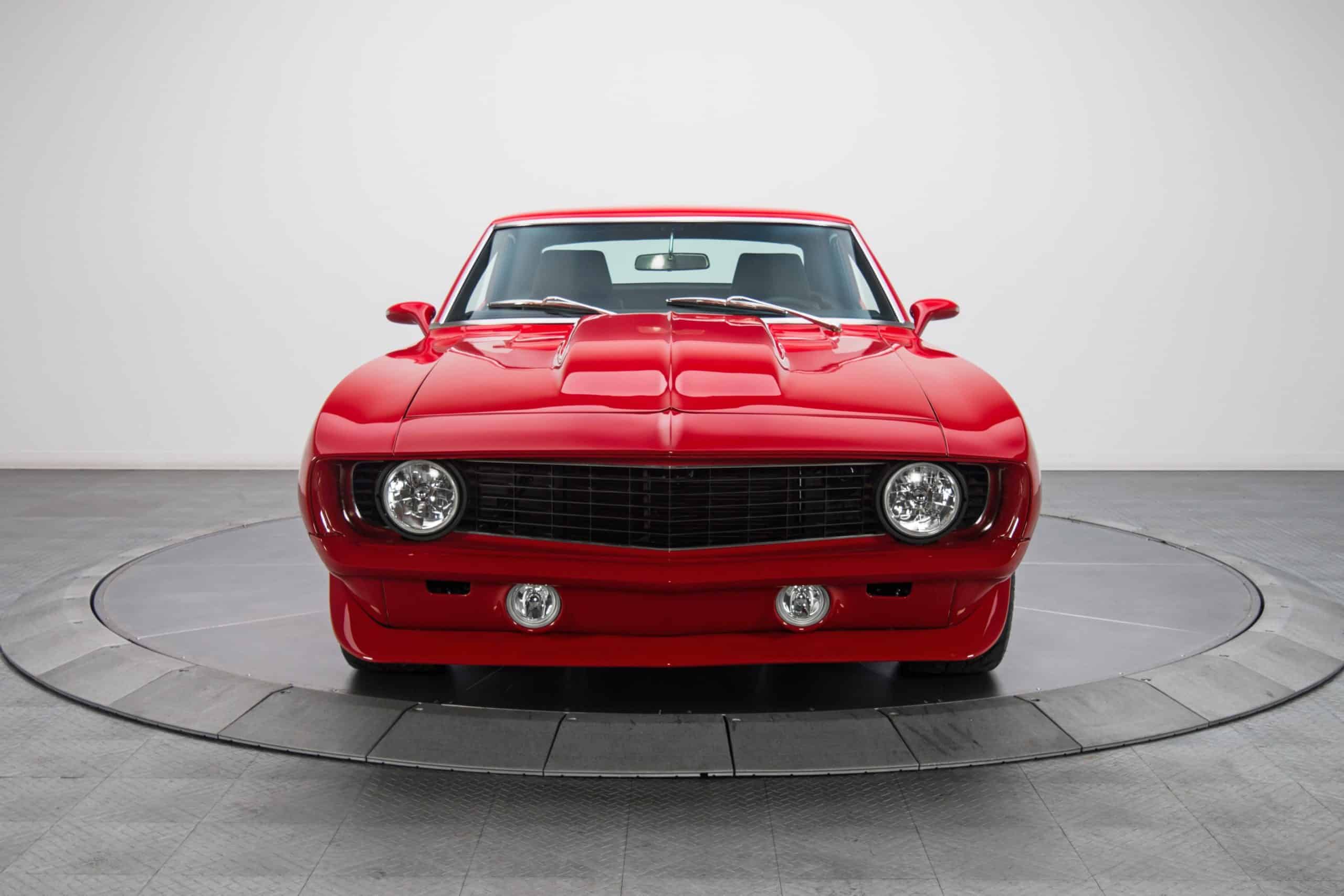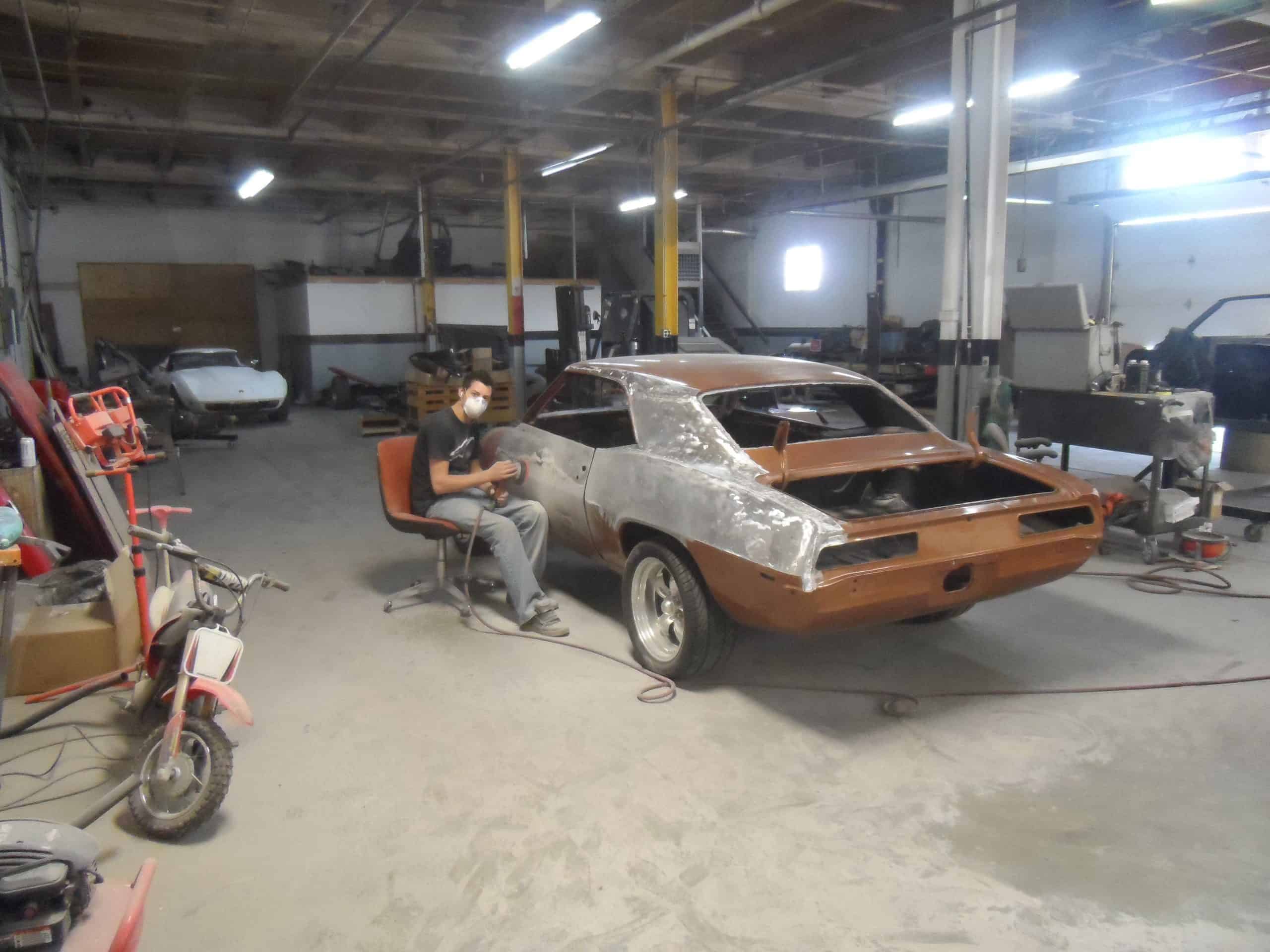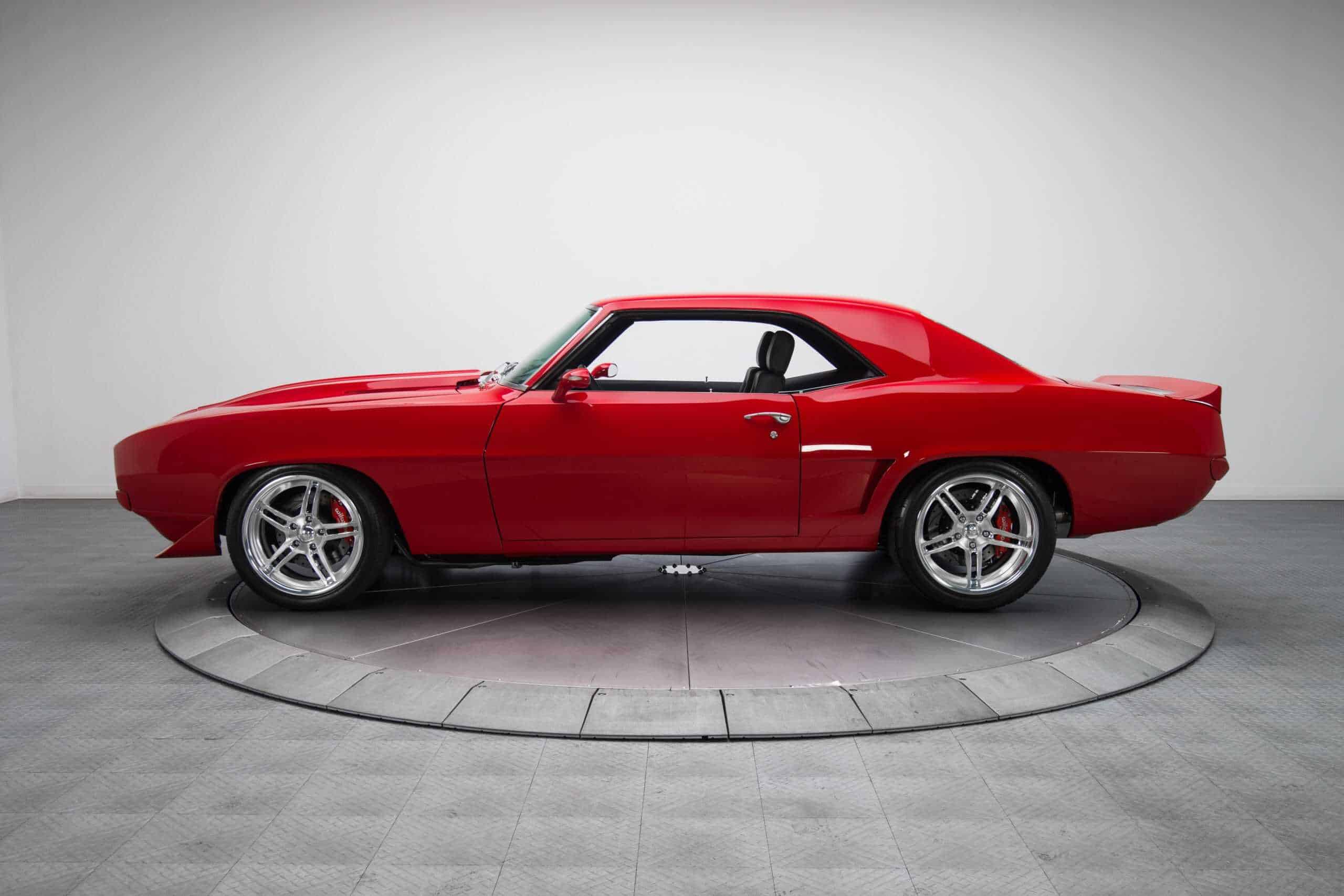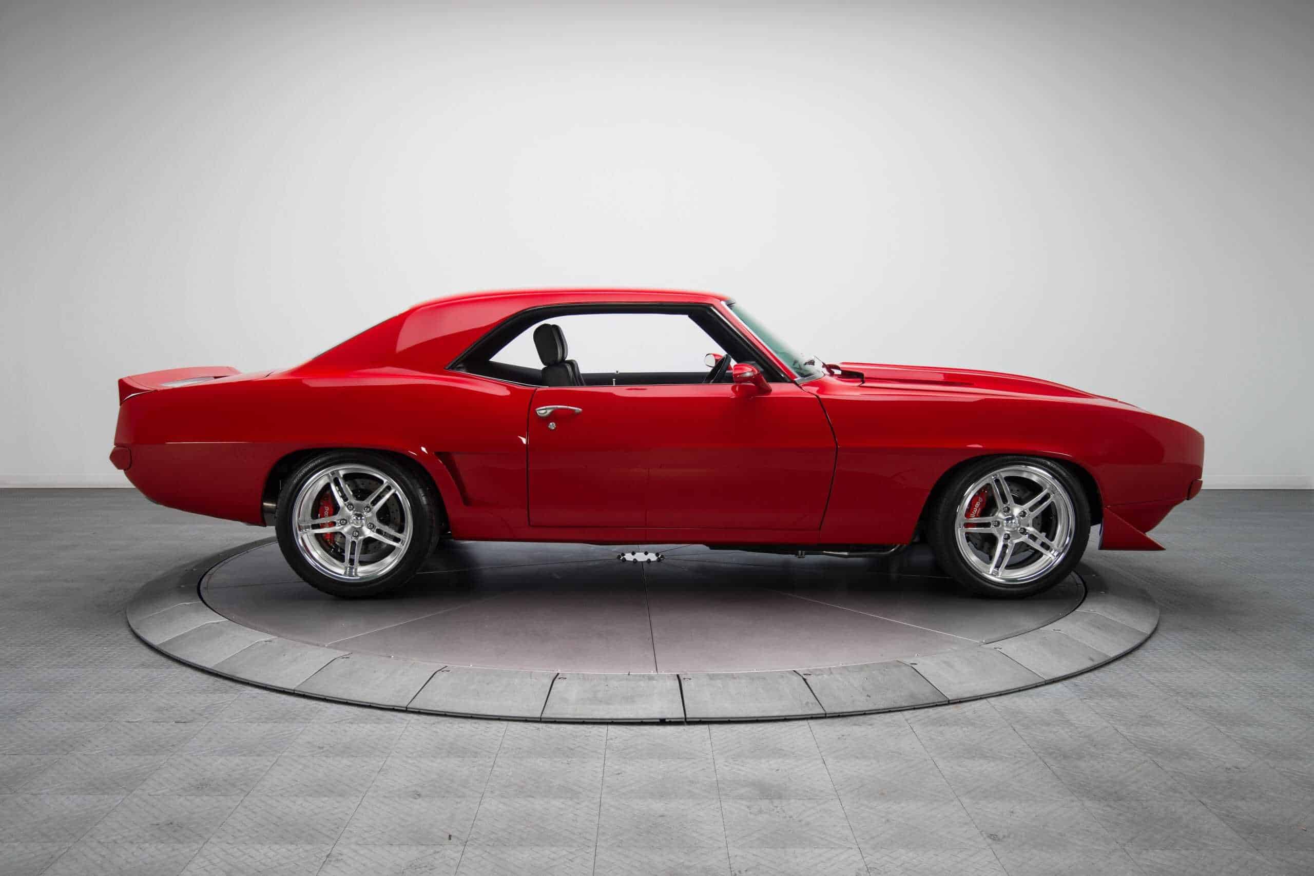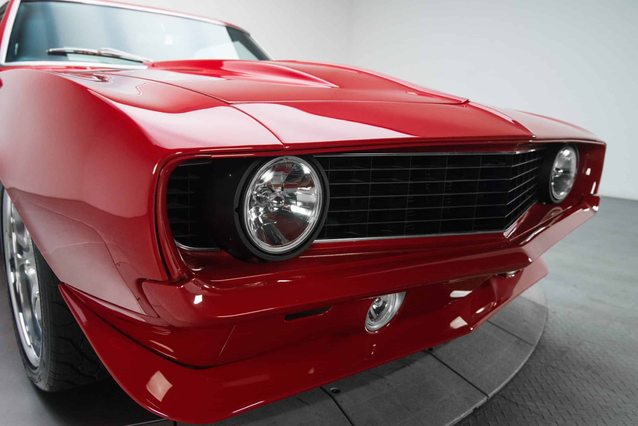 This is a 1969 Camaro that was brought to All Speed Customs for a complete rotisserie restoration and rebuild, including custom bodywork and fabrication, modern LS3 engine with 6-speed manual, fully upgraded suspension with Wilwood brakes, and upholstered interior.
