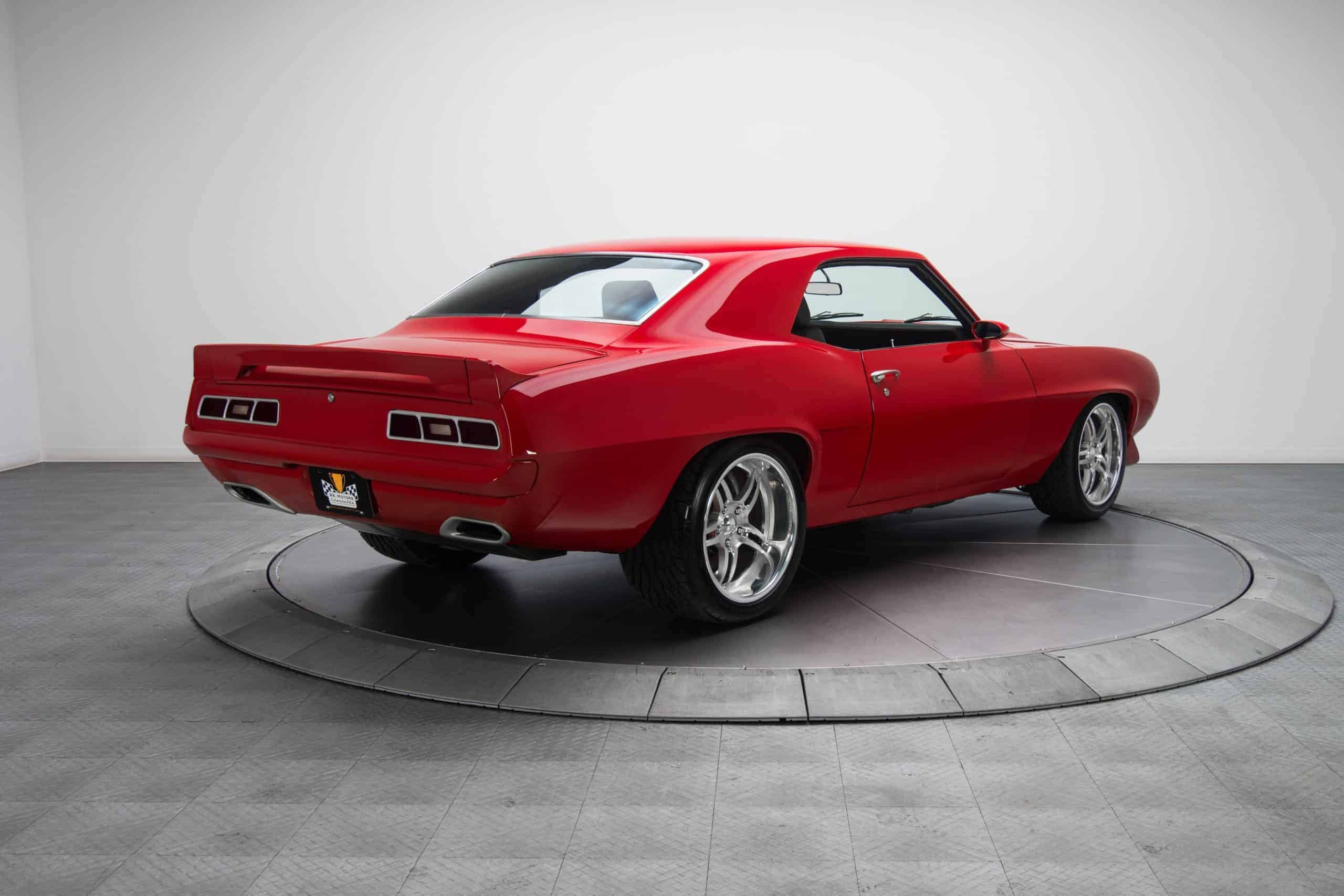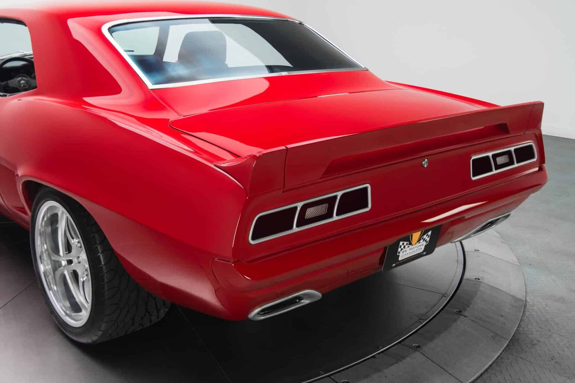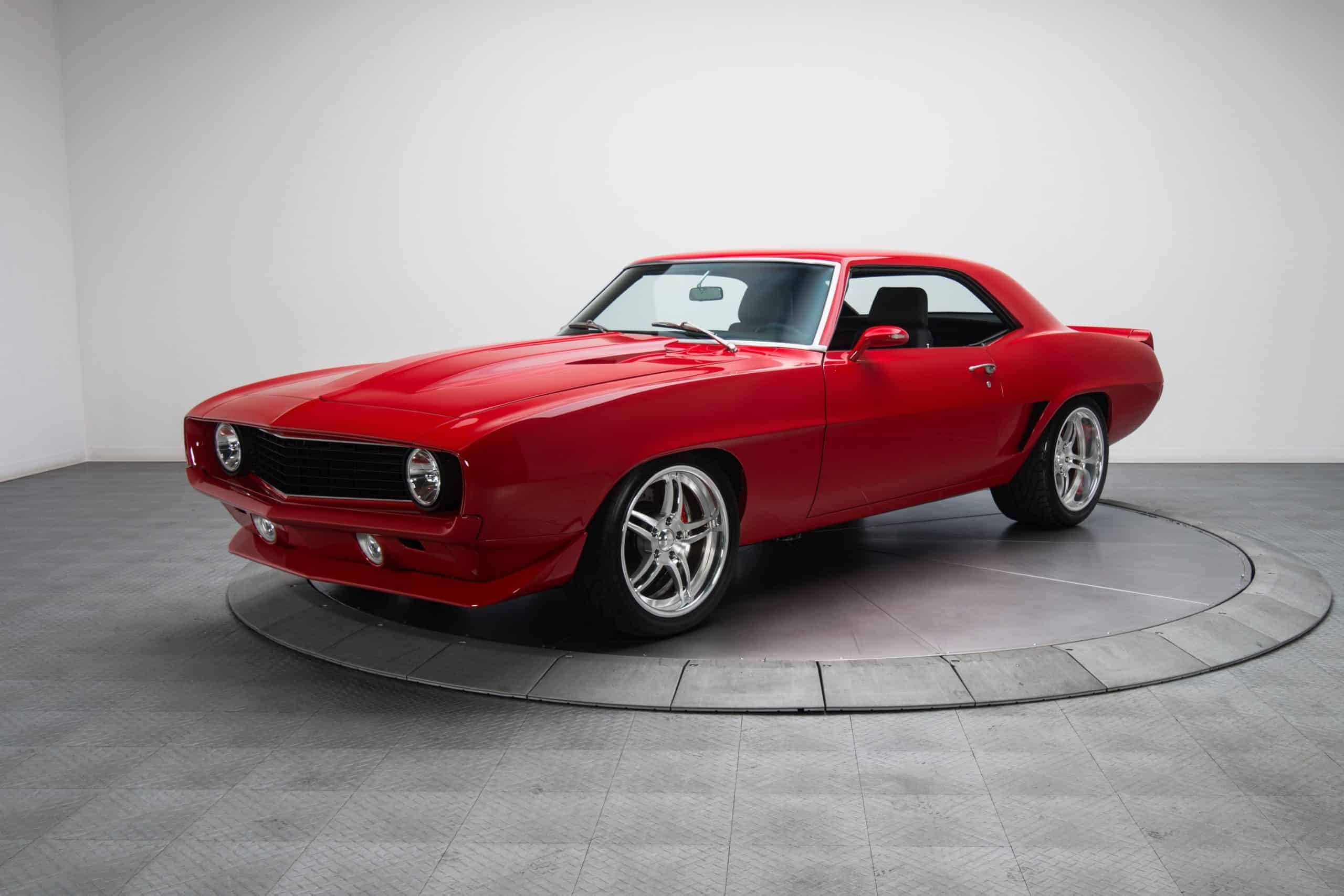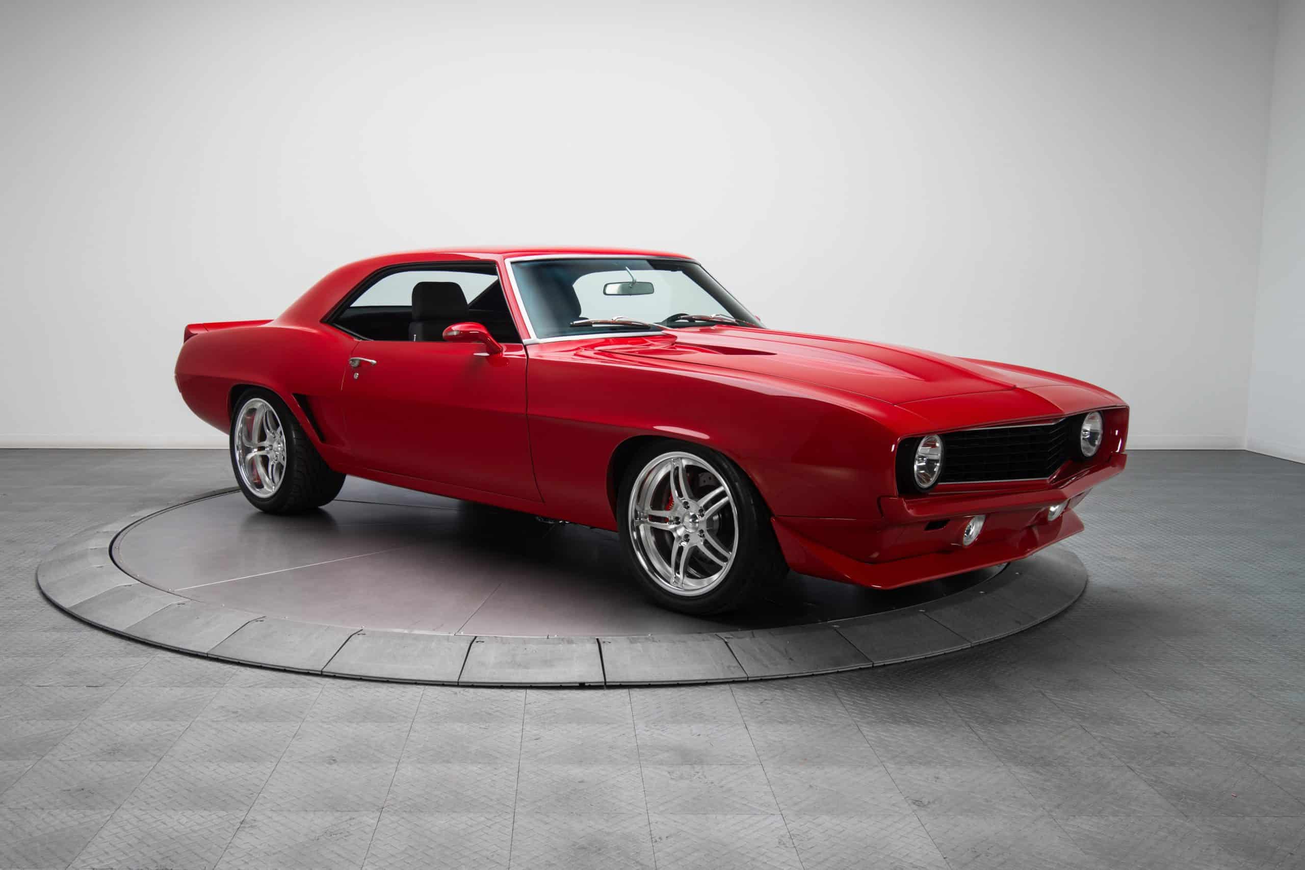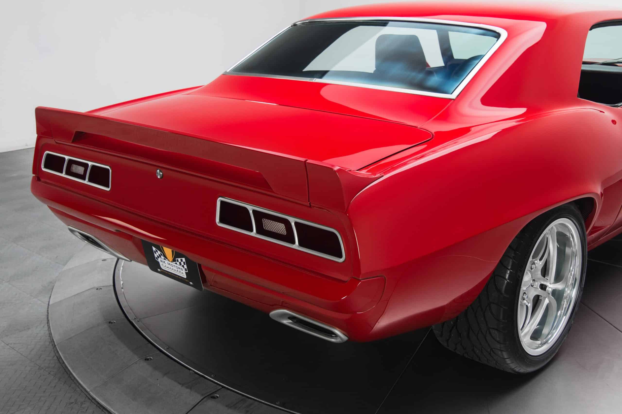 This is a 1969 Camaro that was brought to All Speed Customs for a complete rotisserie restoration and rebuild, including custom bodywork and fabrication, modern LS3 engine with 6-speed manual, fully upgraded suspension with Wilwood brakes, and upholstered interior.