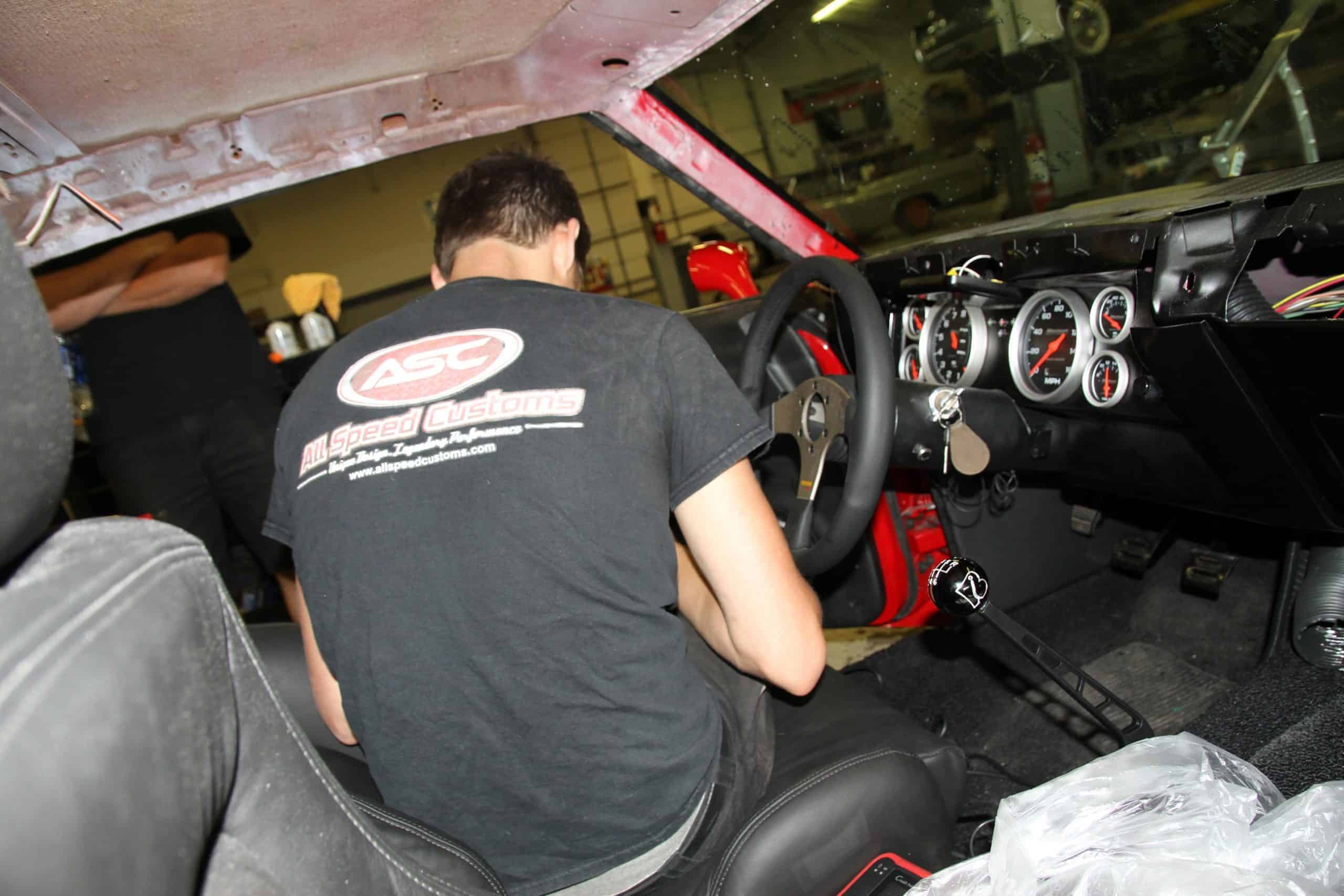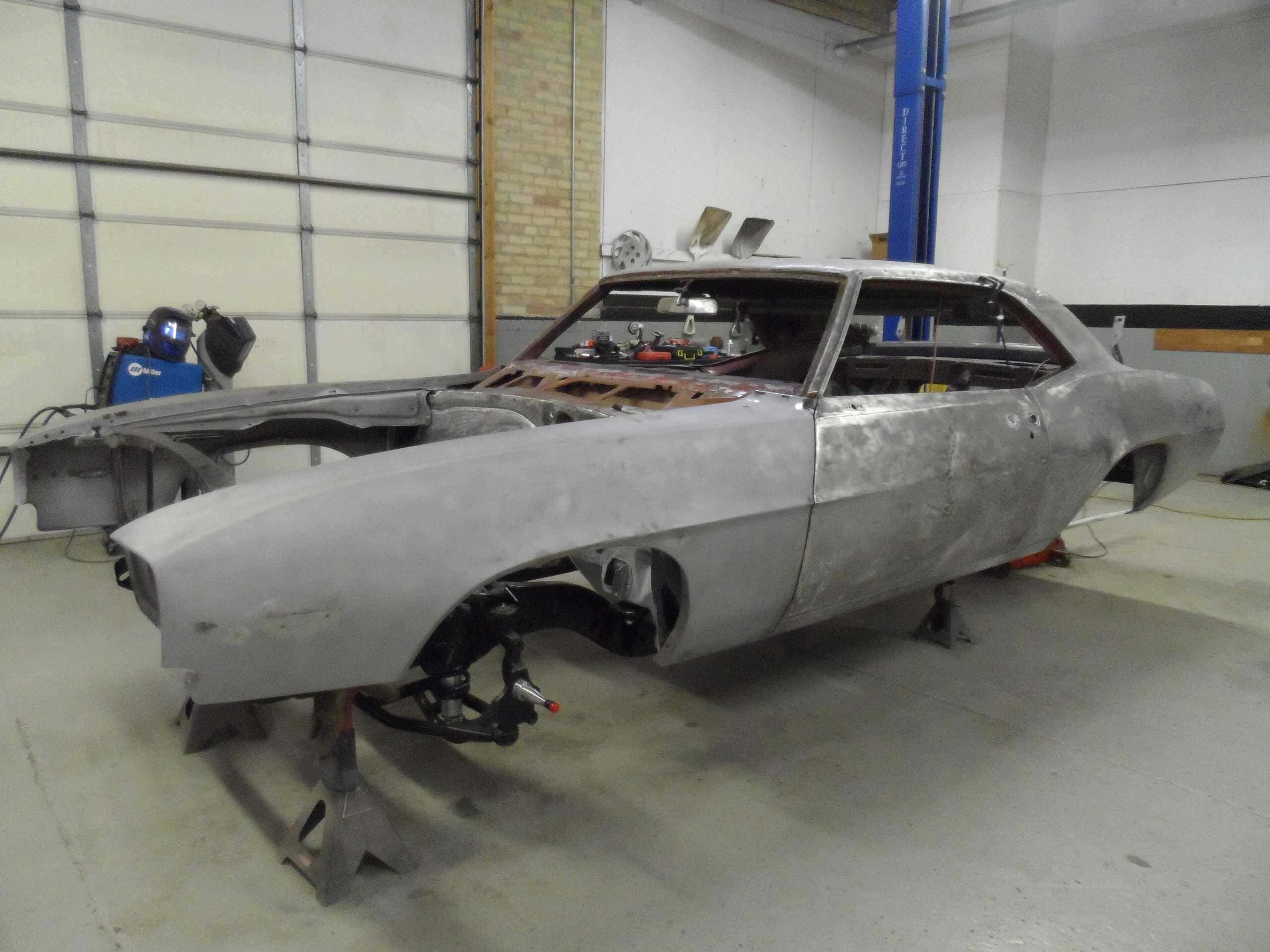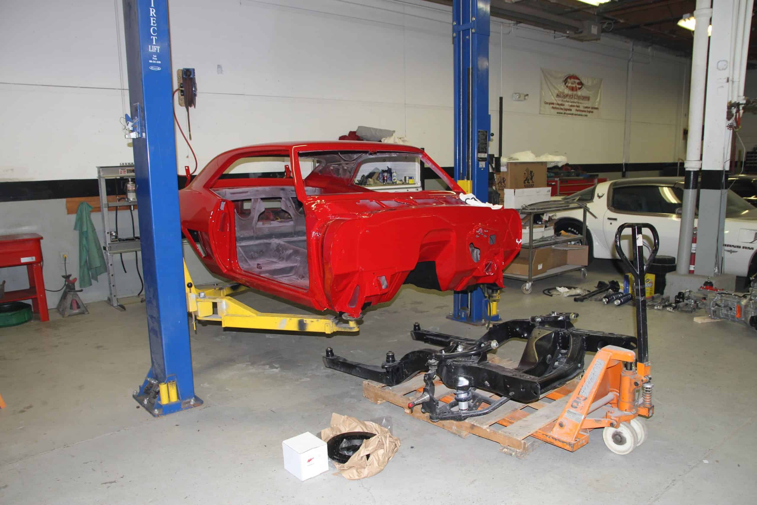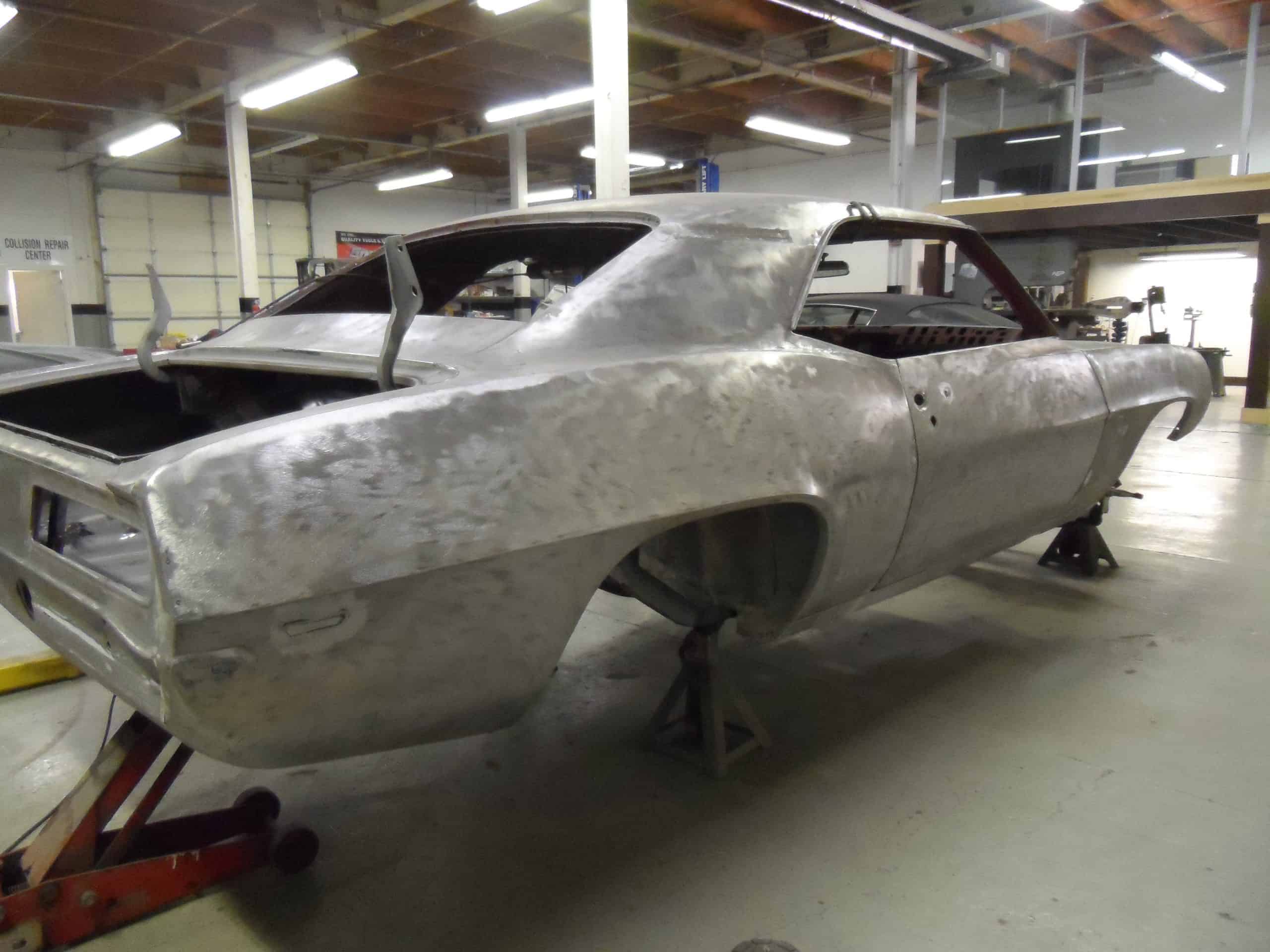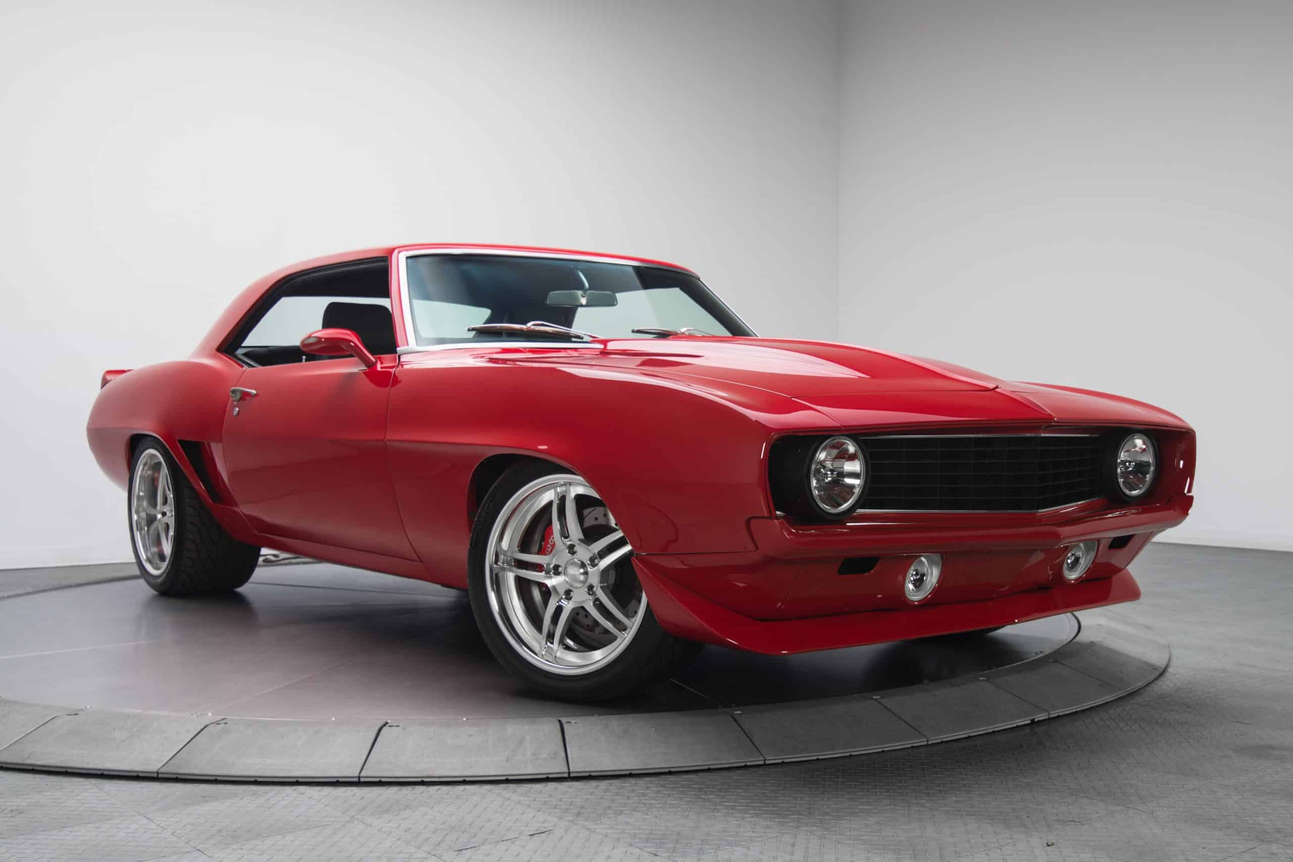 This is a 1969 Camaro that was brought to All Speed Customs for a complete rotisserie restoration and rebuild, including custom bodywork and fabrication, modern LS3 engine with 6-speed manual, fully upgraded suspension with Wilwood brakes, and upholstered interior.