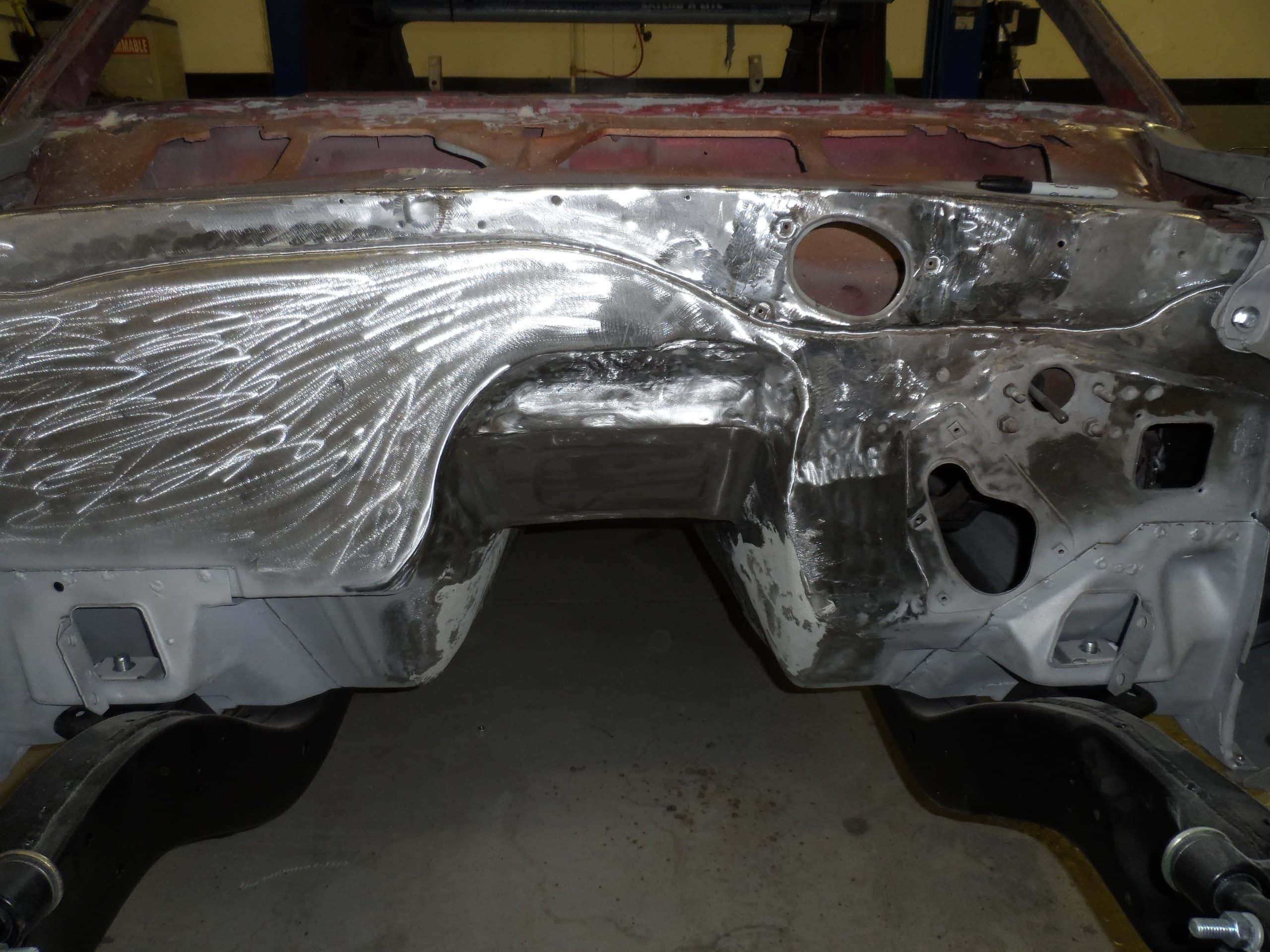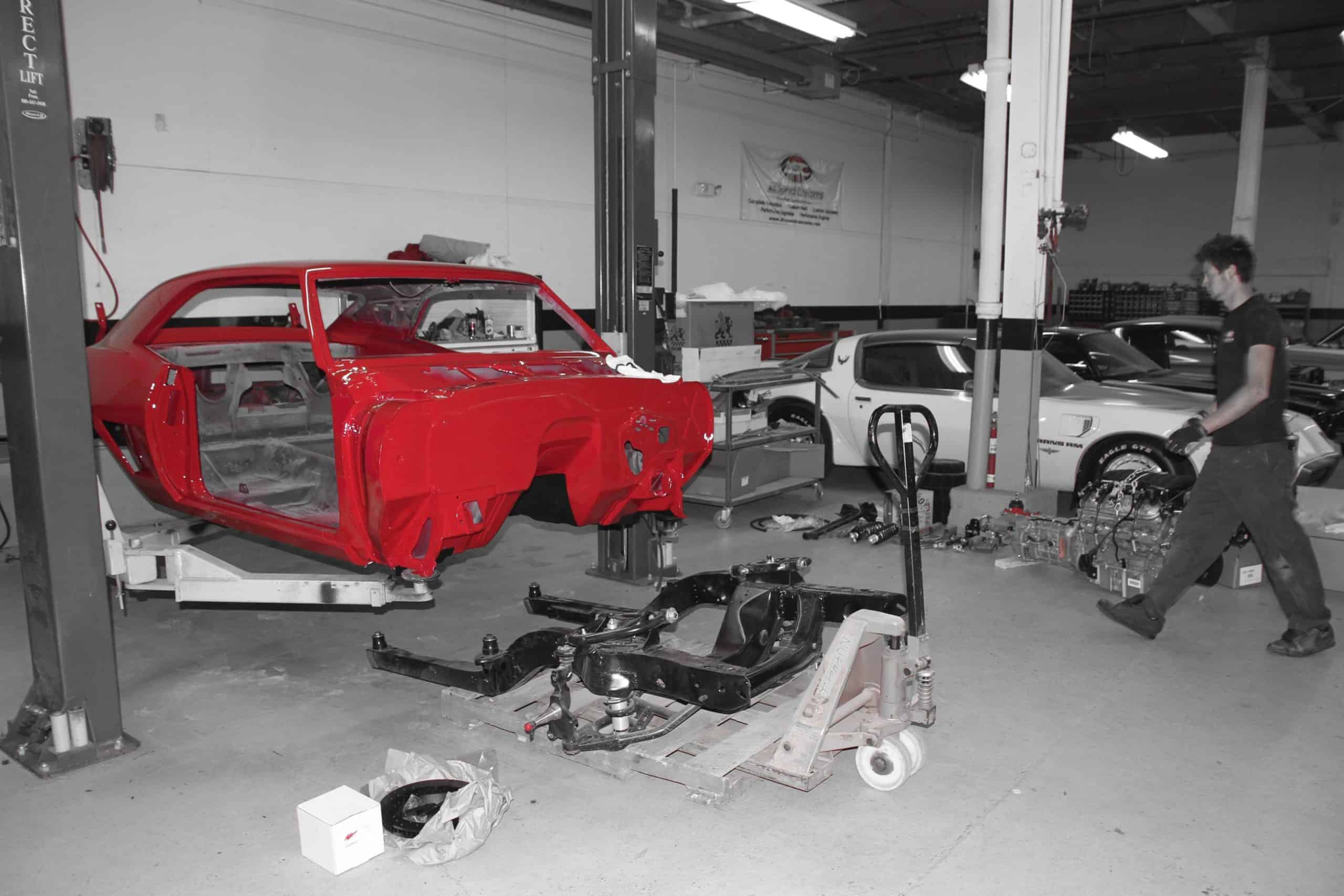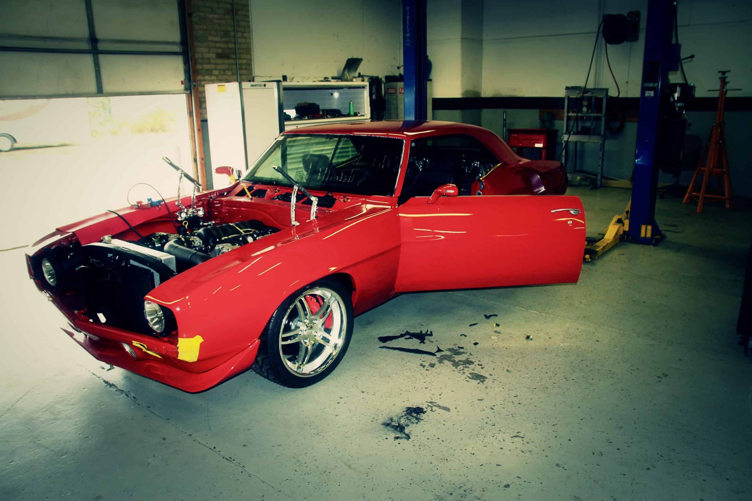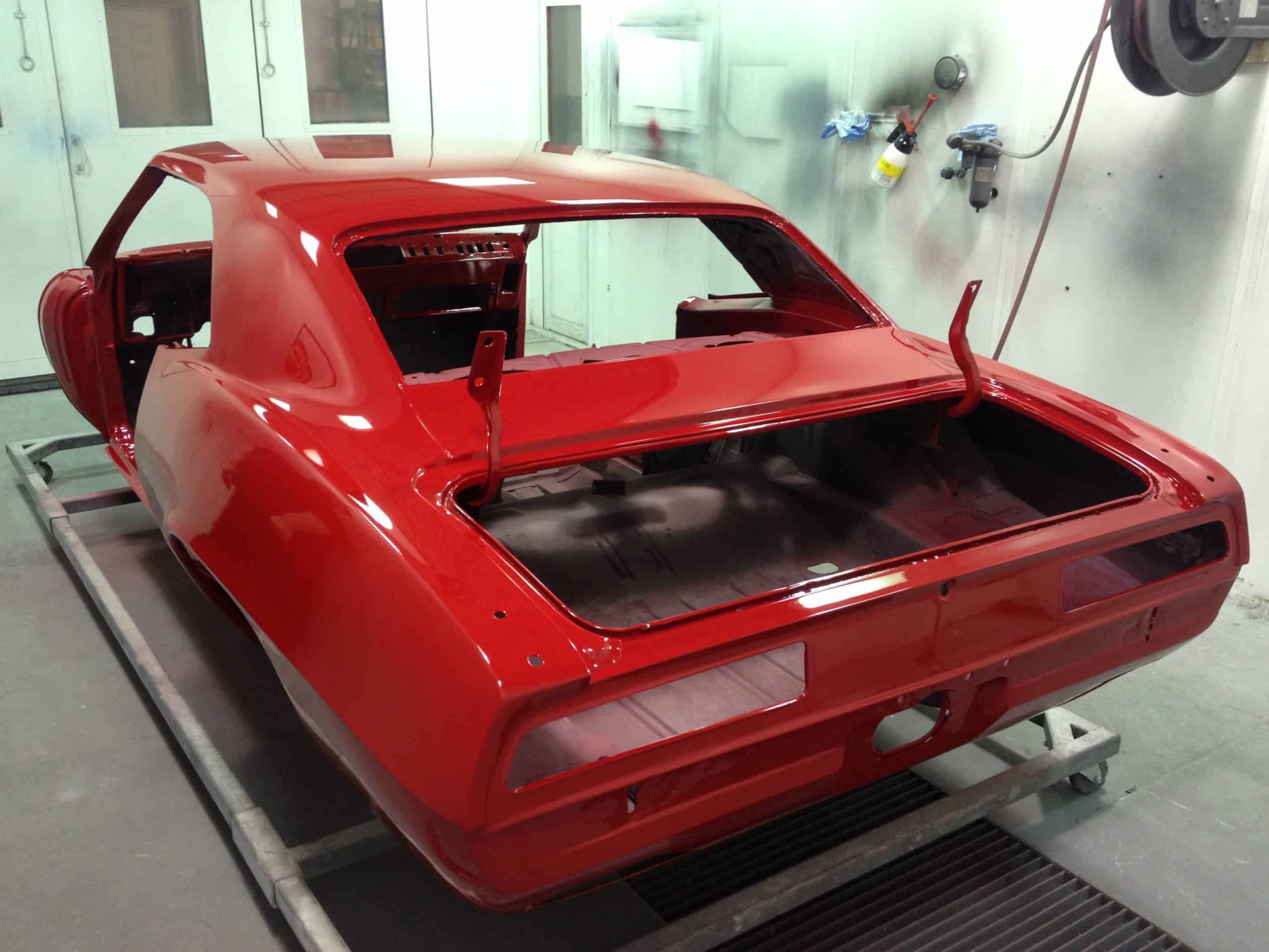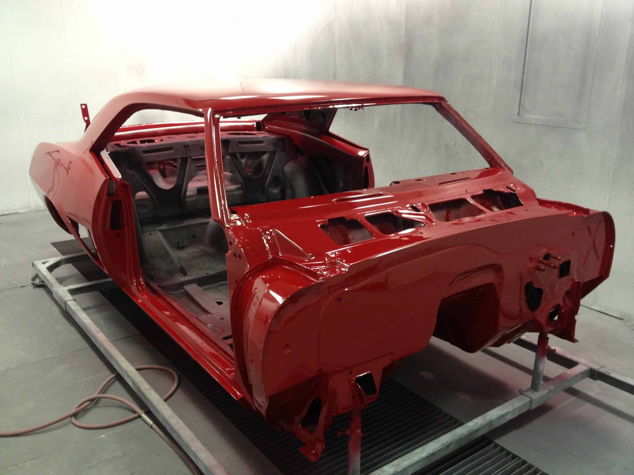 This is a 1969 Camaro that was brought to All Speed Customs for a complete rotisserie restoration and rebuild, including custom bodywork and fabrication, modern LS3 engine with 6-speed manual, fully upgraded suspension with Wilwood brakes, and upholstered interior.