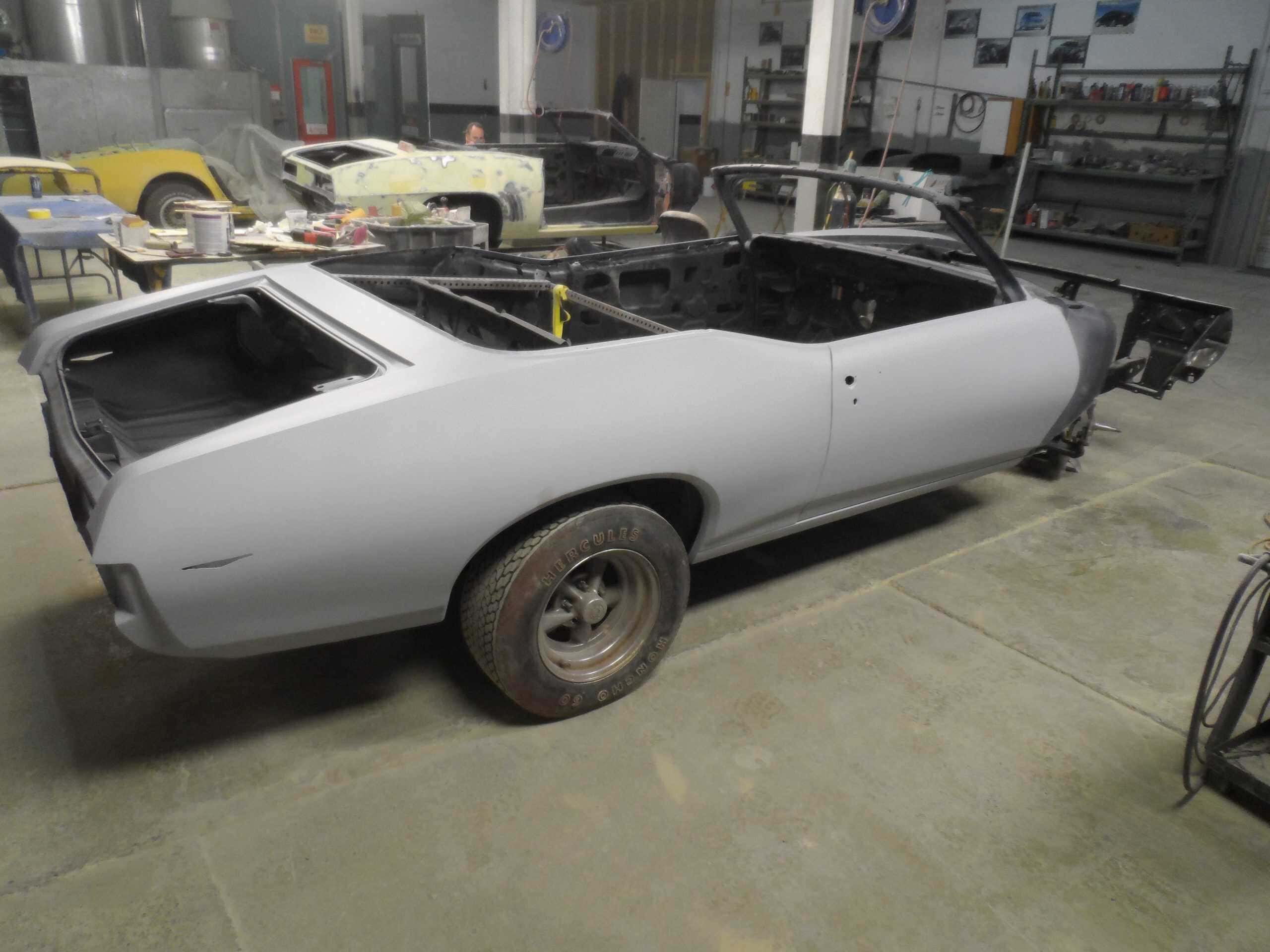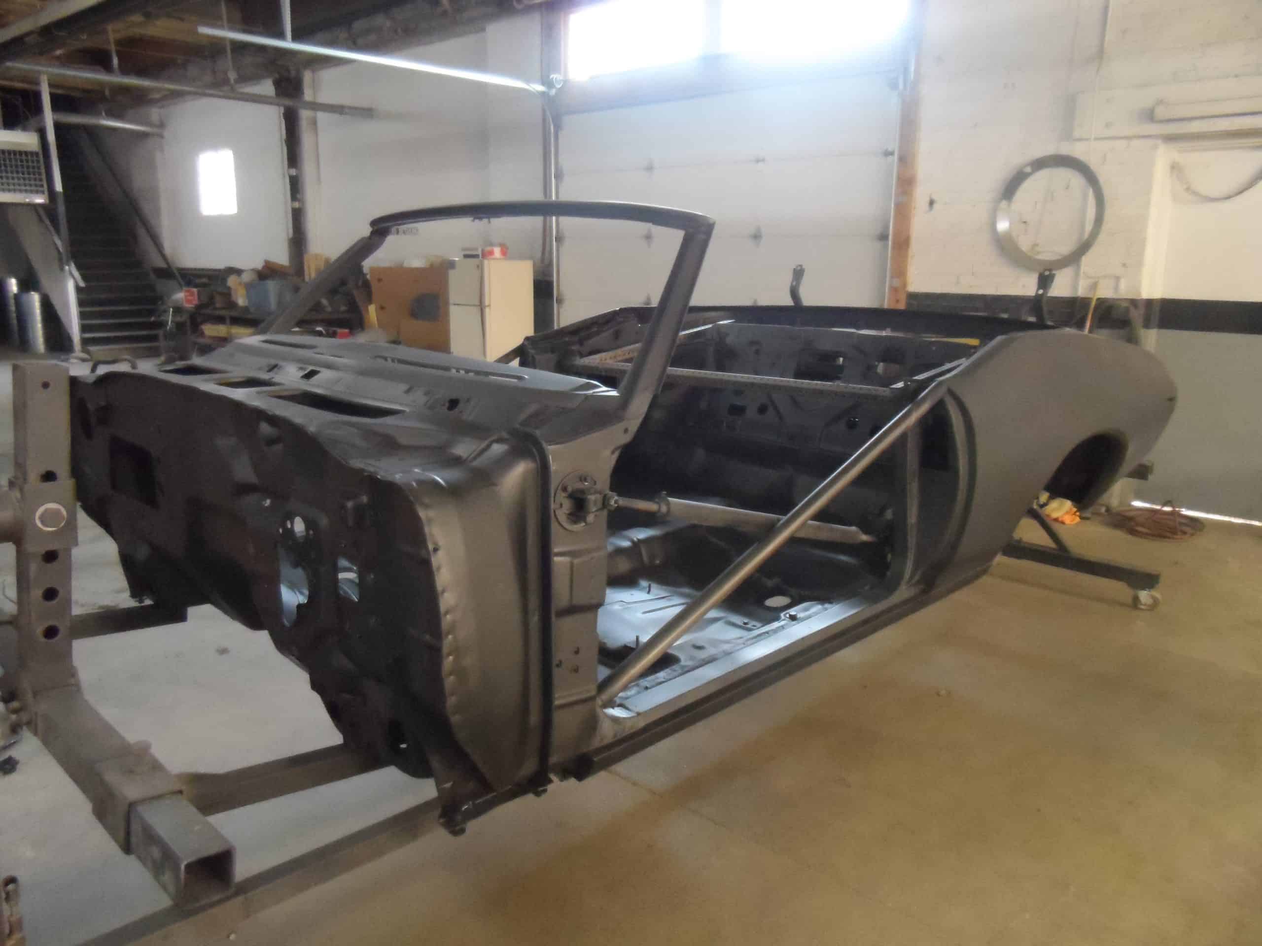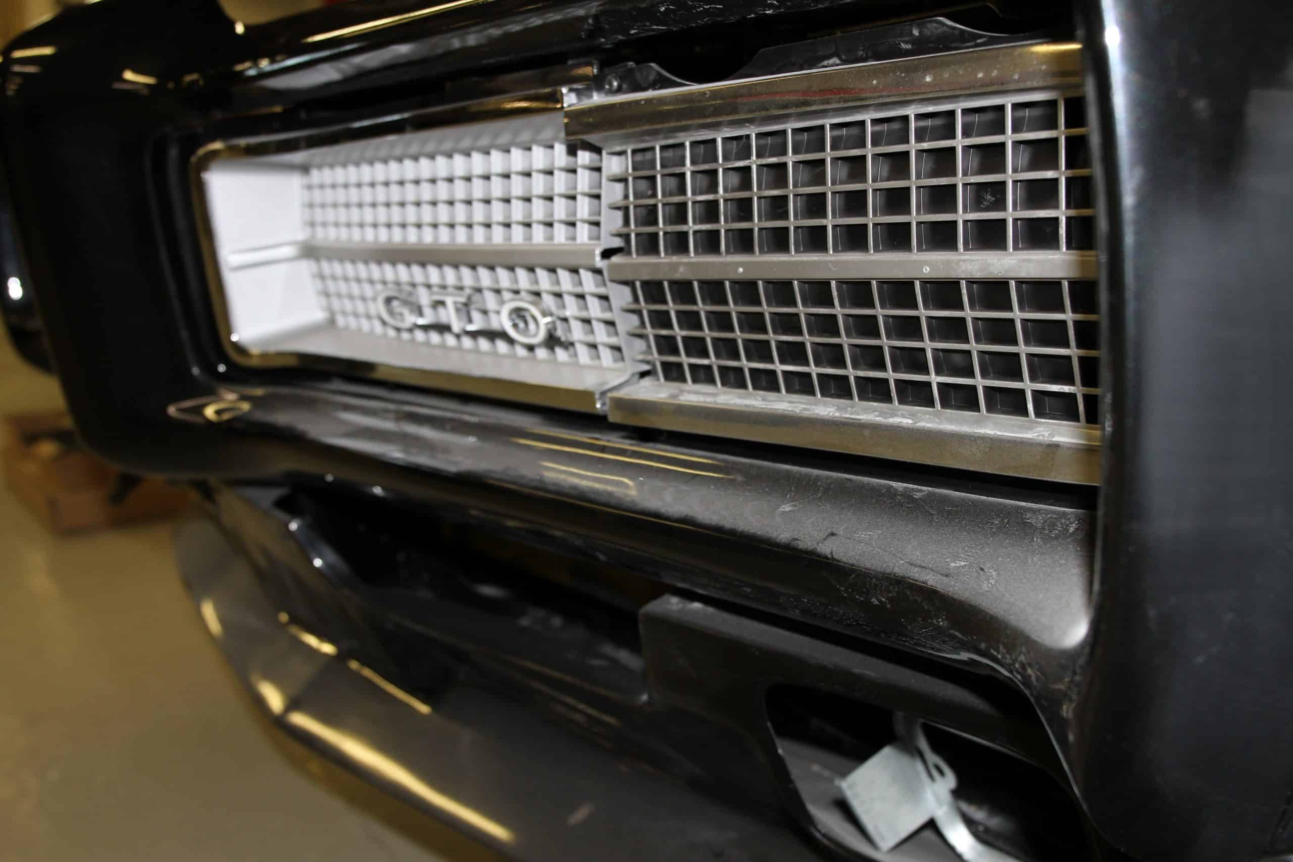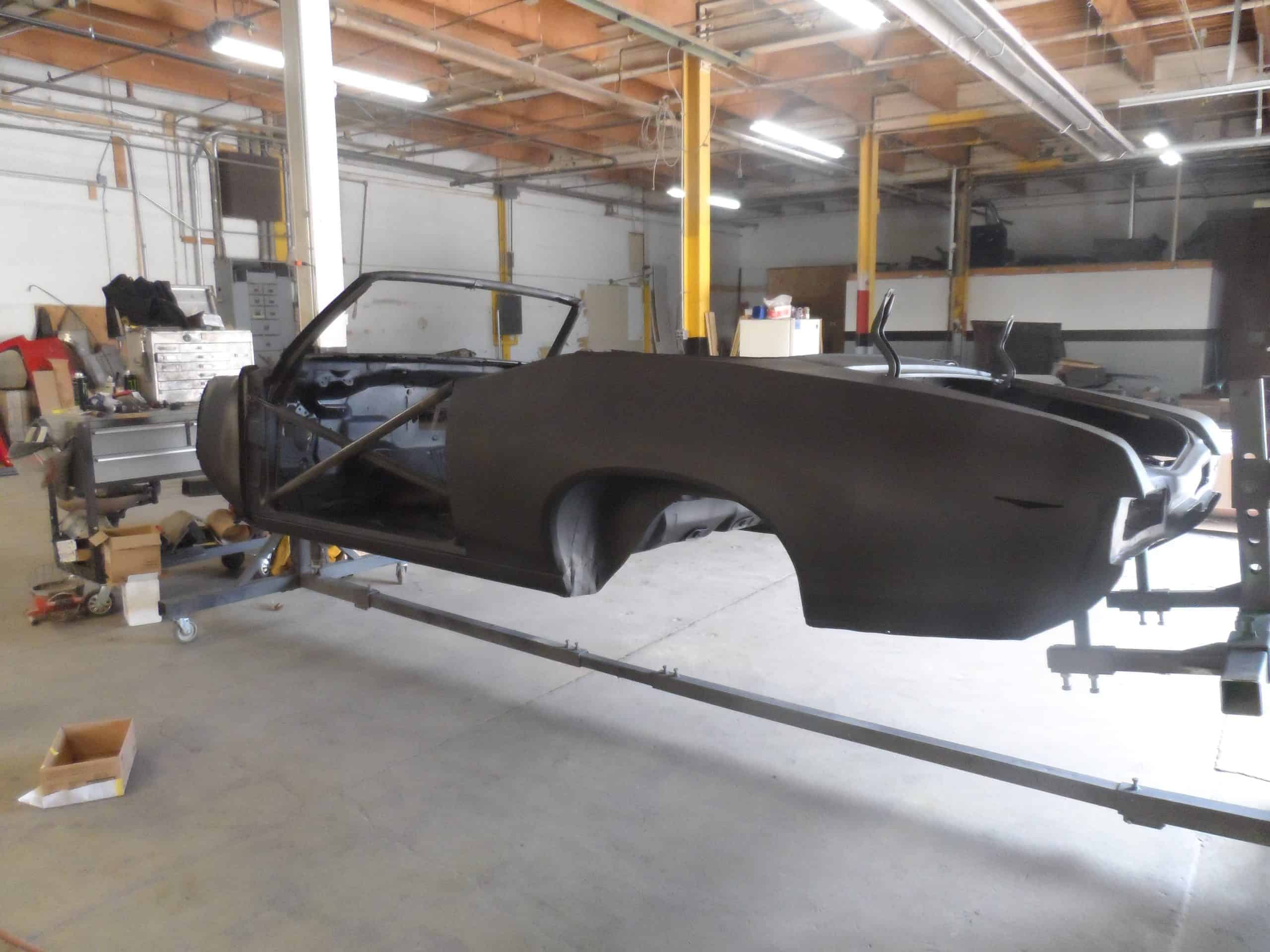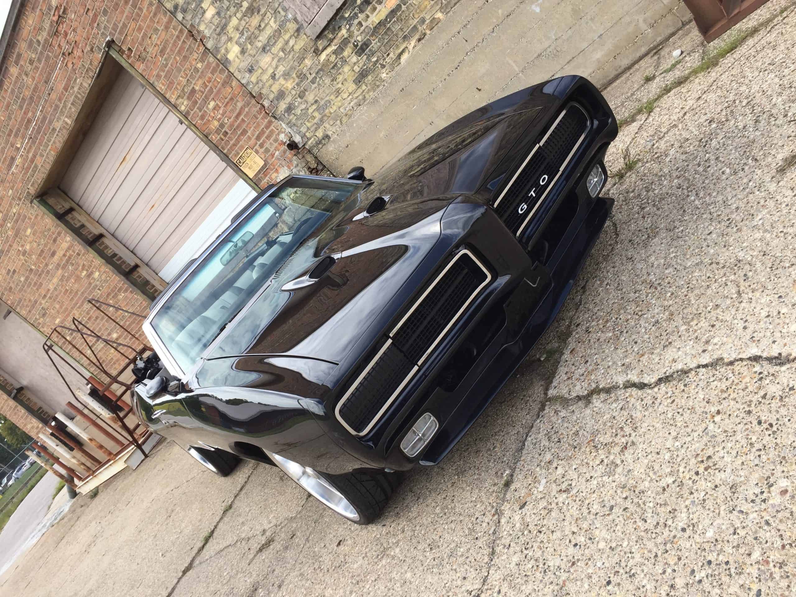This is a 1969 Pontiac GTO convertible that was a frame-off rotisserie restoration by All Speed Customs. We completely stripped the car down, performed extensive rust repair and panel replacement with some custom molding, applied new paint, and installed an updated suspension and brakes to corral the CTS-V supercharged V8 engine and 6-speed manual trans, with a fully custom interior from our design team.