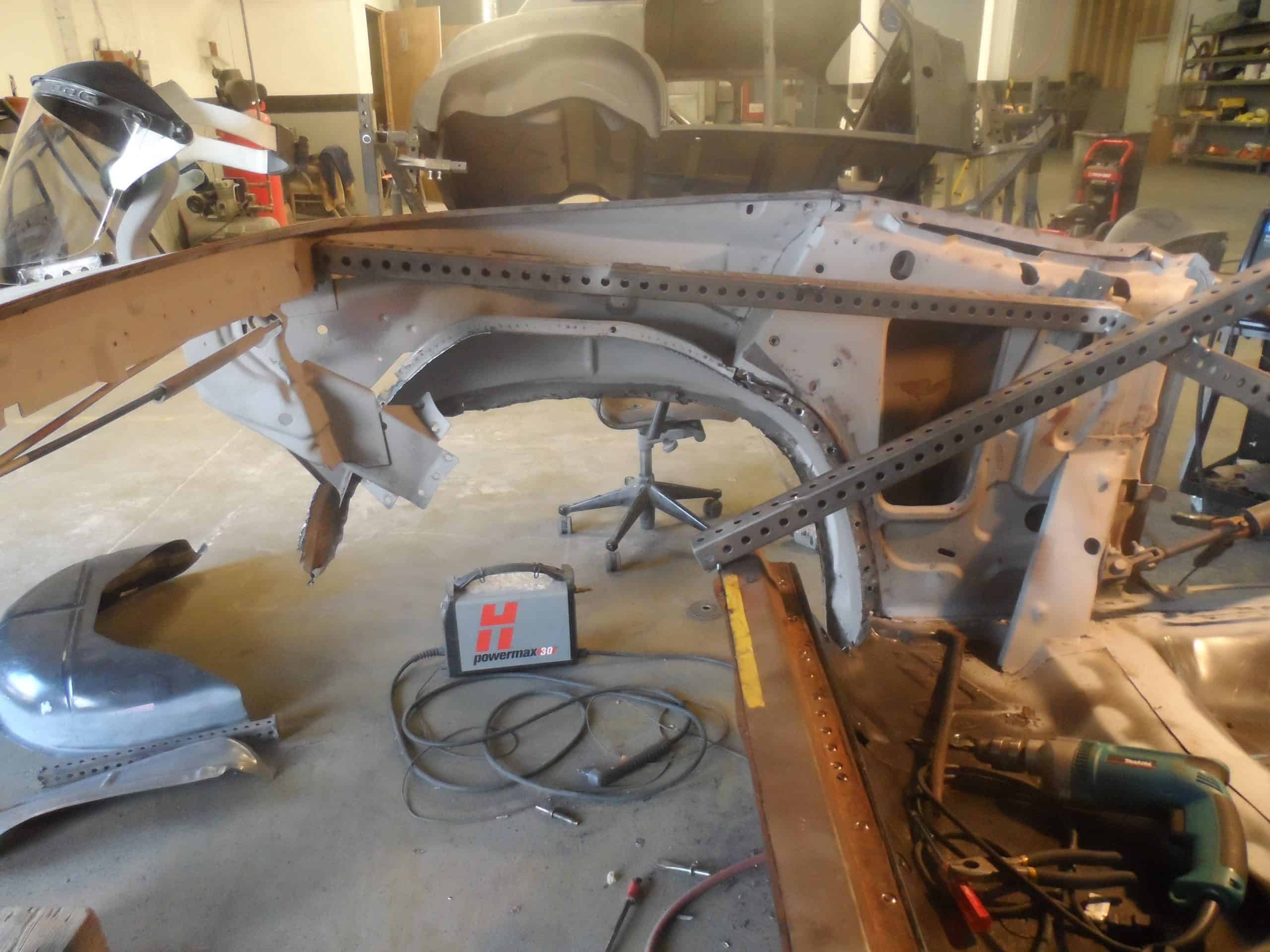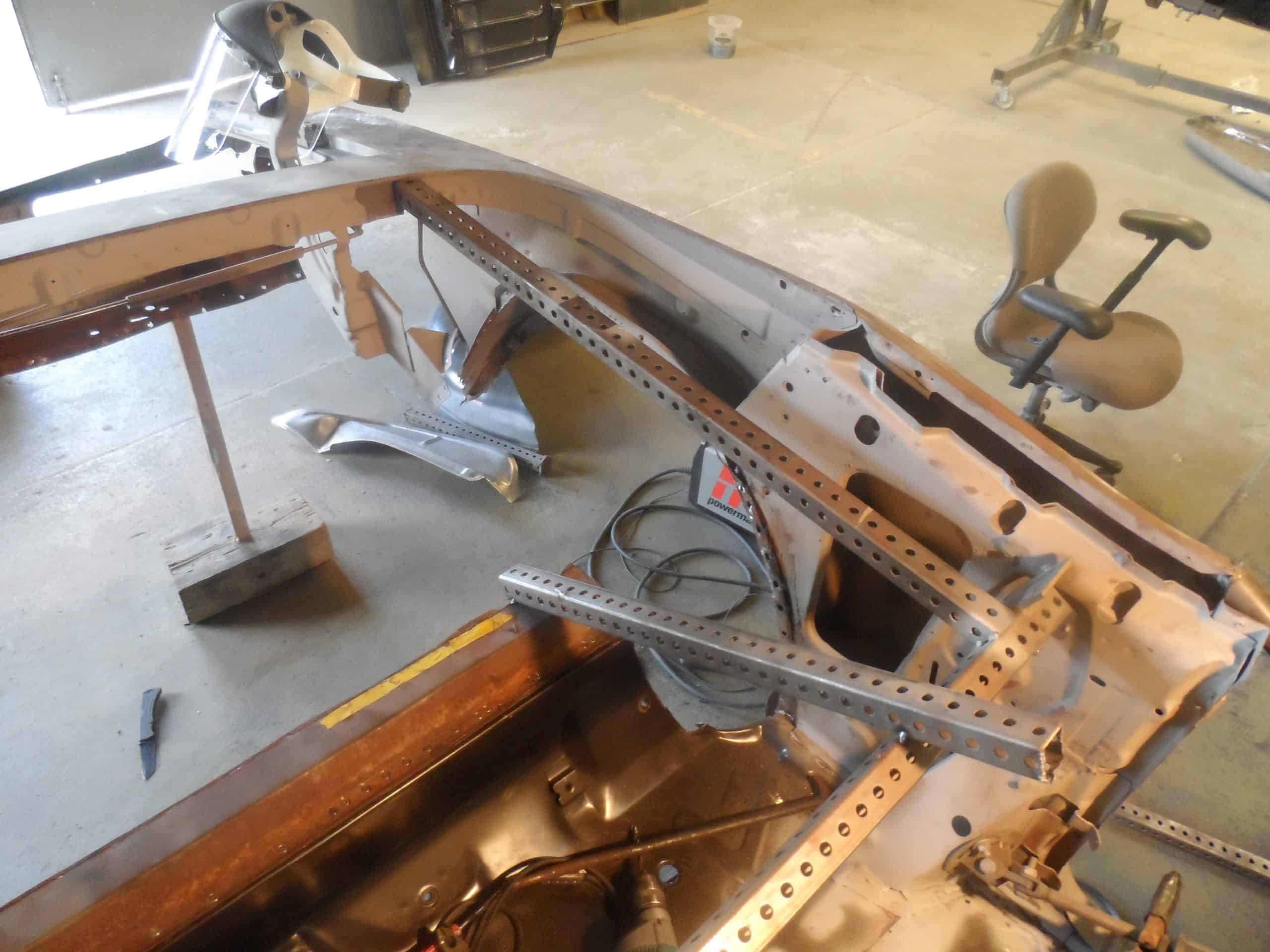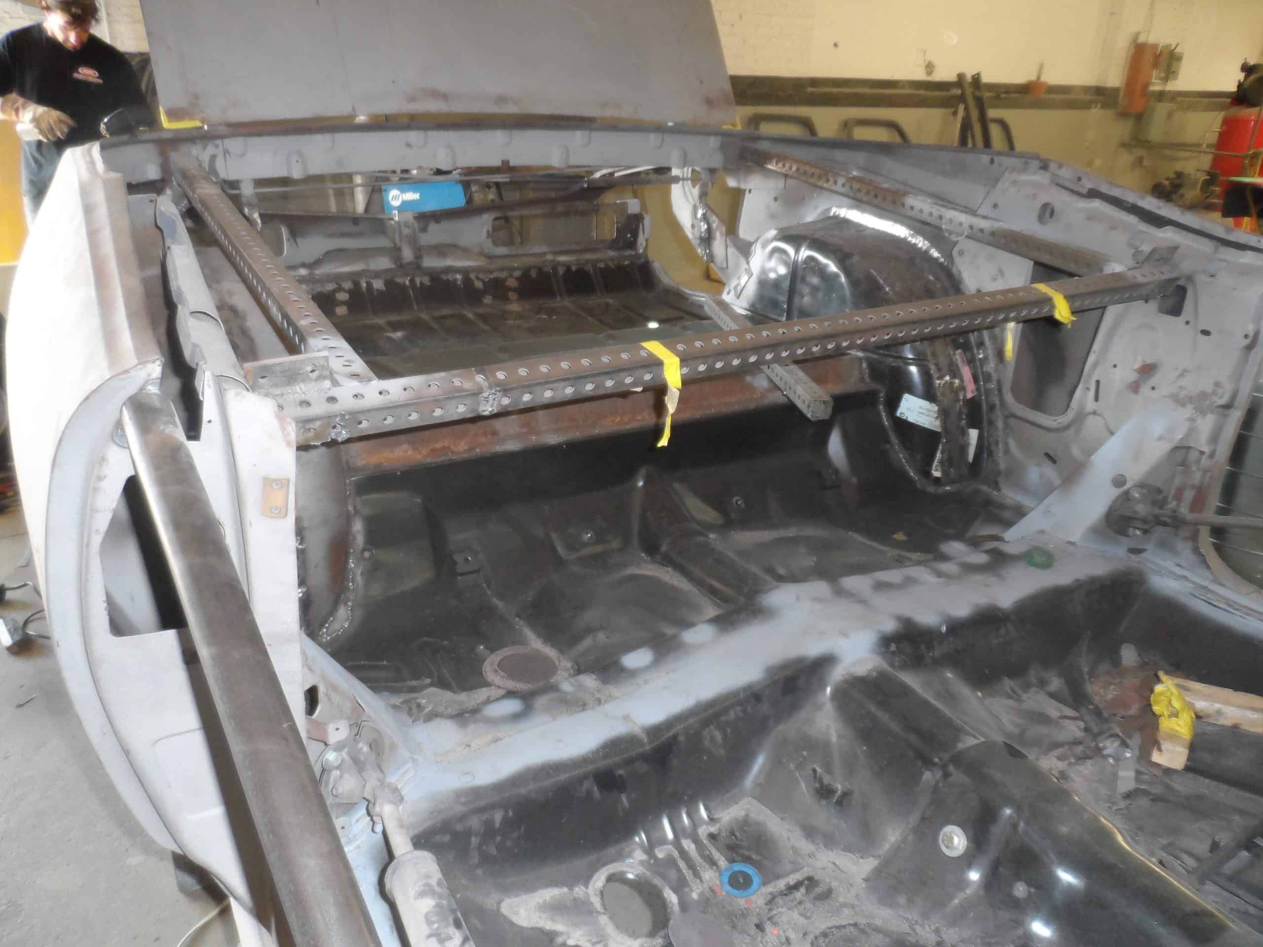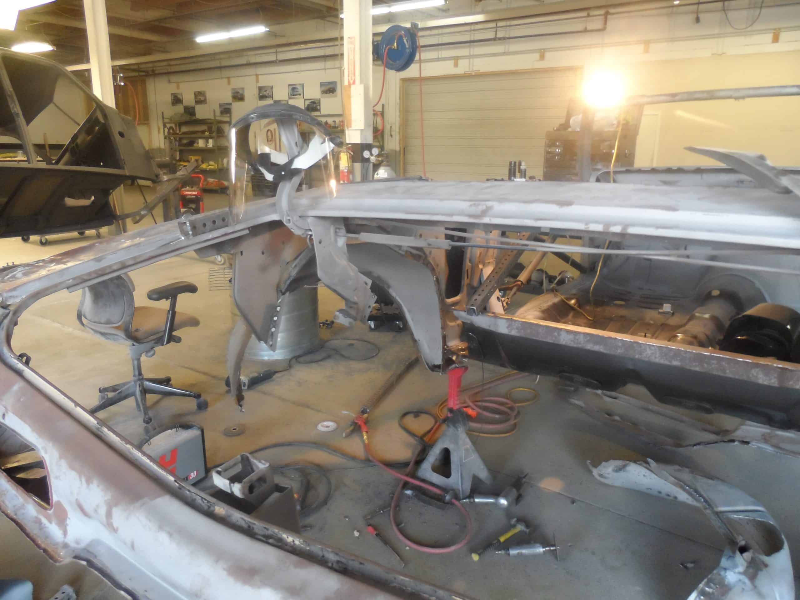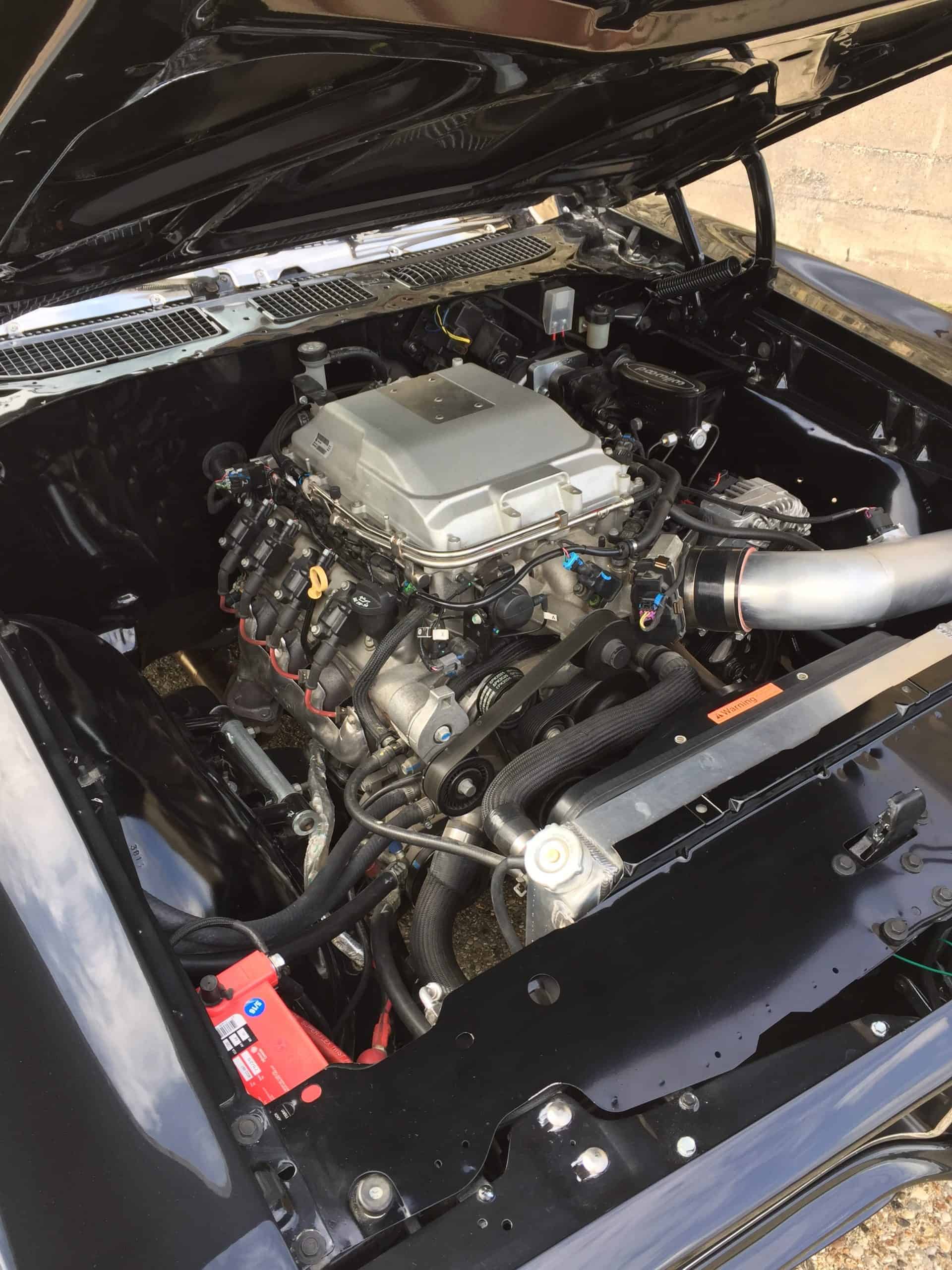 This is a 1969 Pontiac GTO convertible that was a frame-off rotisserie restoration by All Speed Customs. We completely stripped the car down, performed extensive rust repair and panel replacement with some custom molding, applied new paint, and installed an updated suspension and brakes to corral the CTS-V supercharged V8 engine and 6-speed manual trans, with a fully custom interior from our design team.