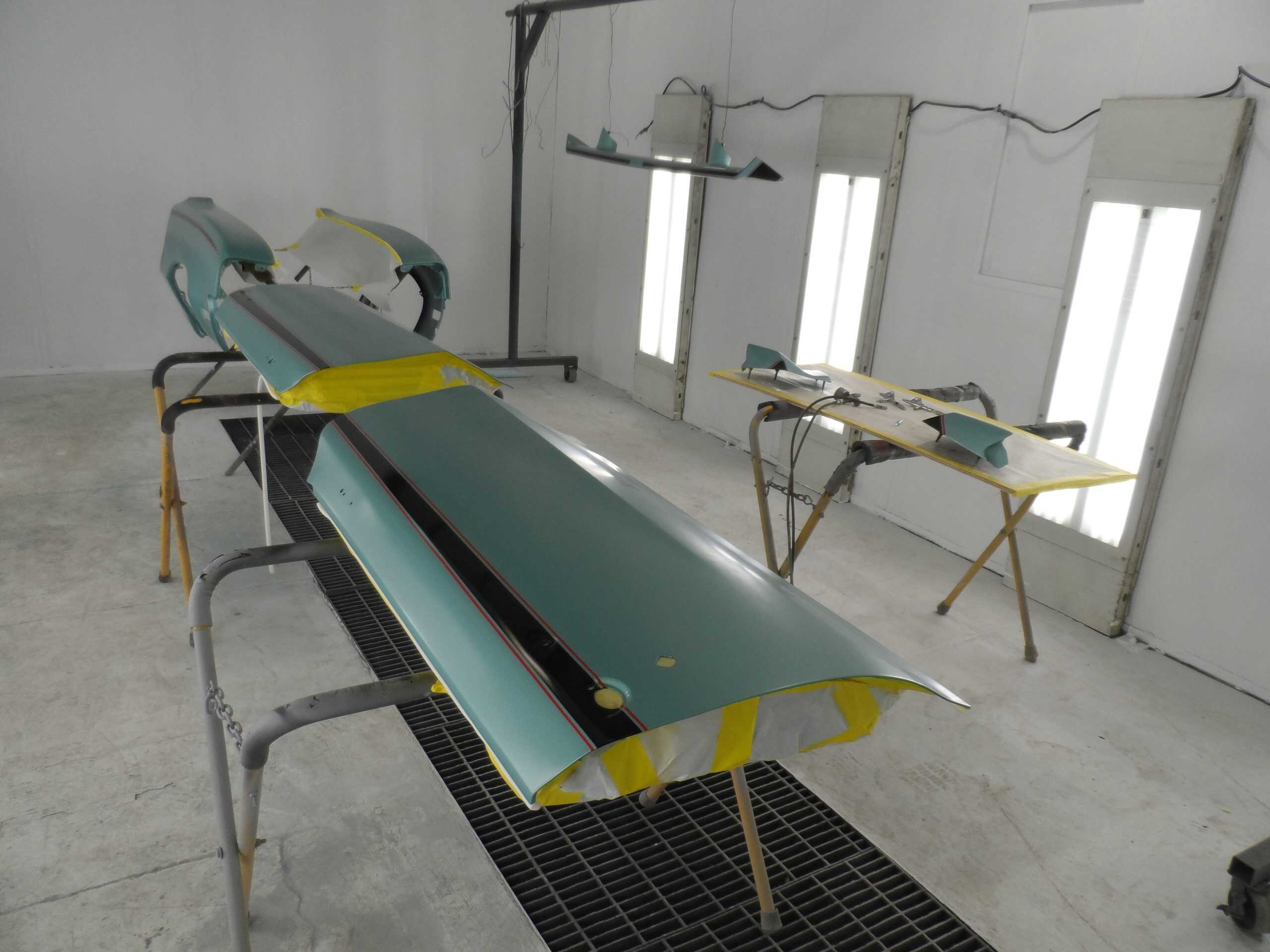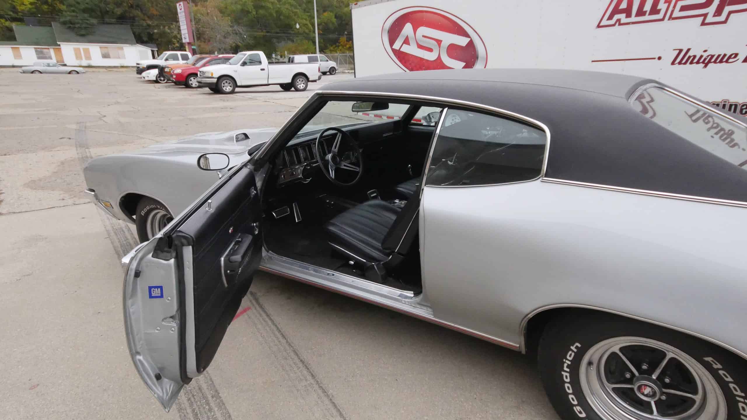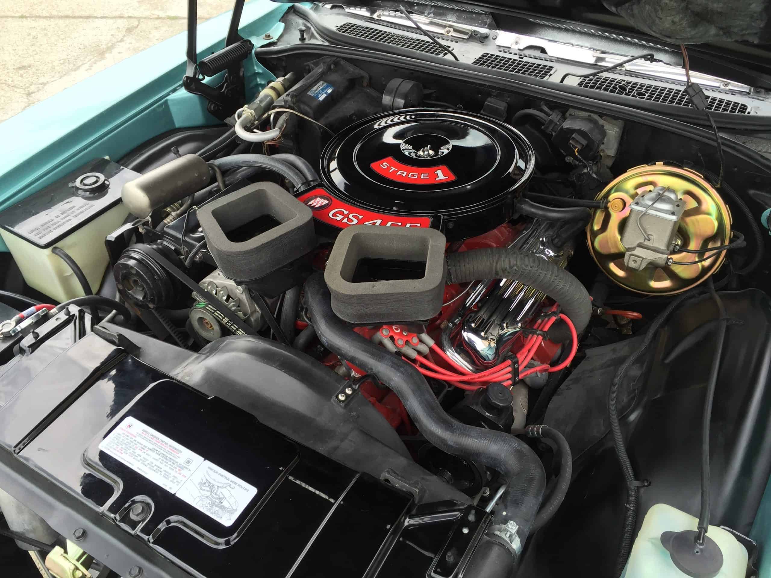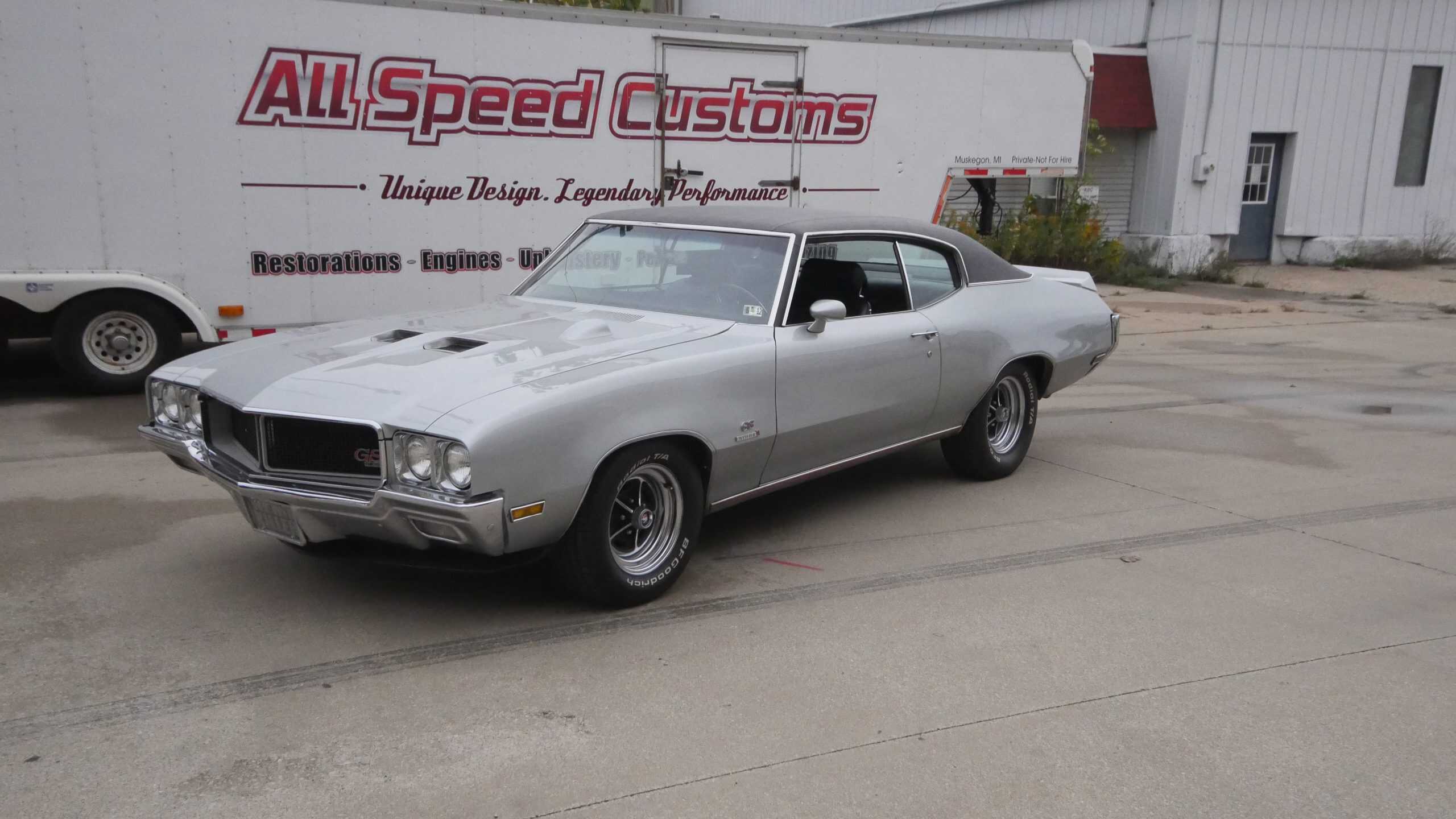 This 1970 Buick GS Stage I arrived needing a fresh paint job. We prepped the body and applied a beautiful teal green paint scheme with wide black full-length stripes, outlined by red pinstriping.