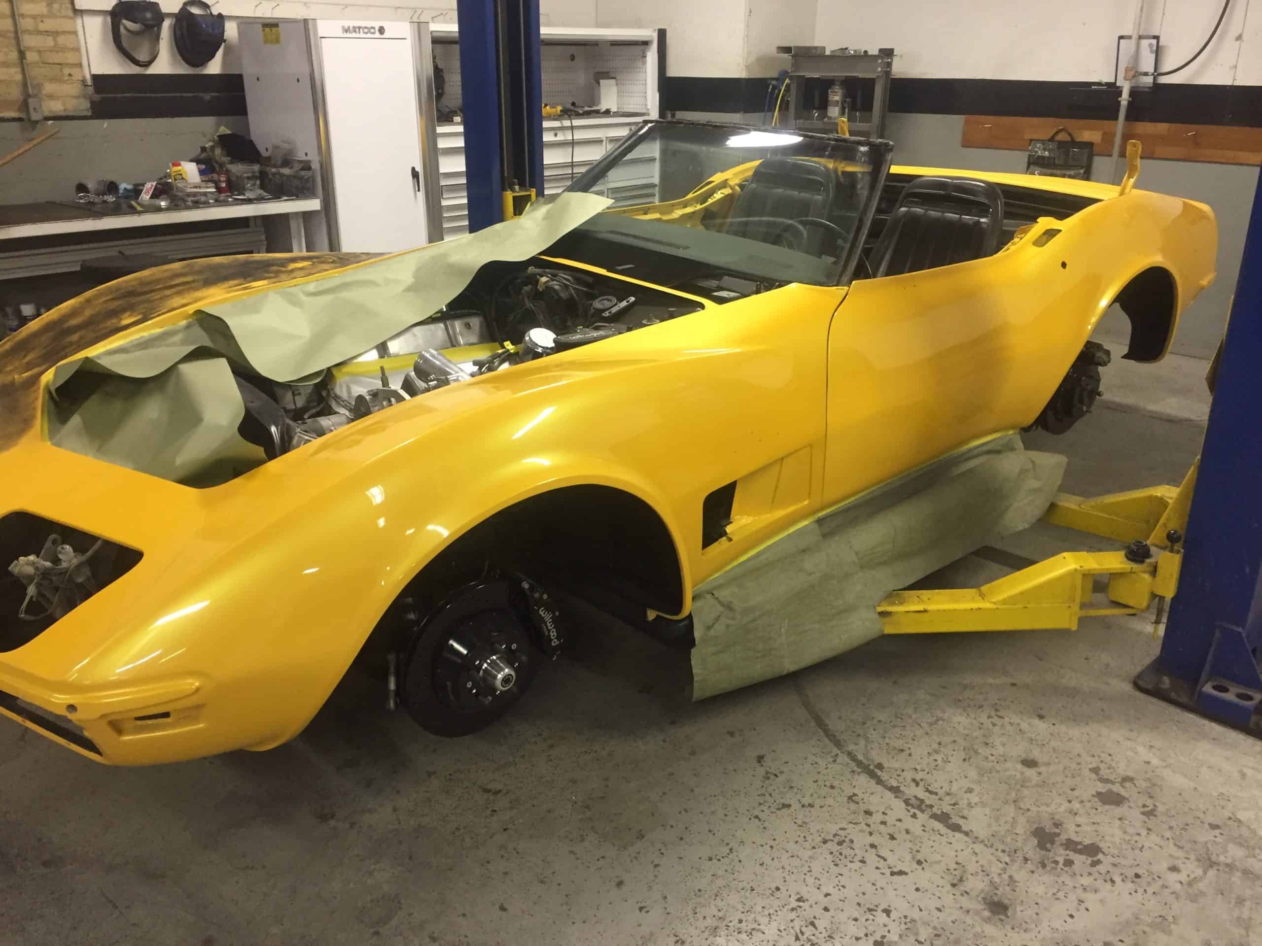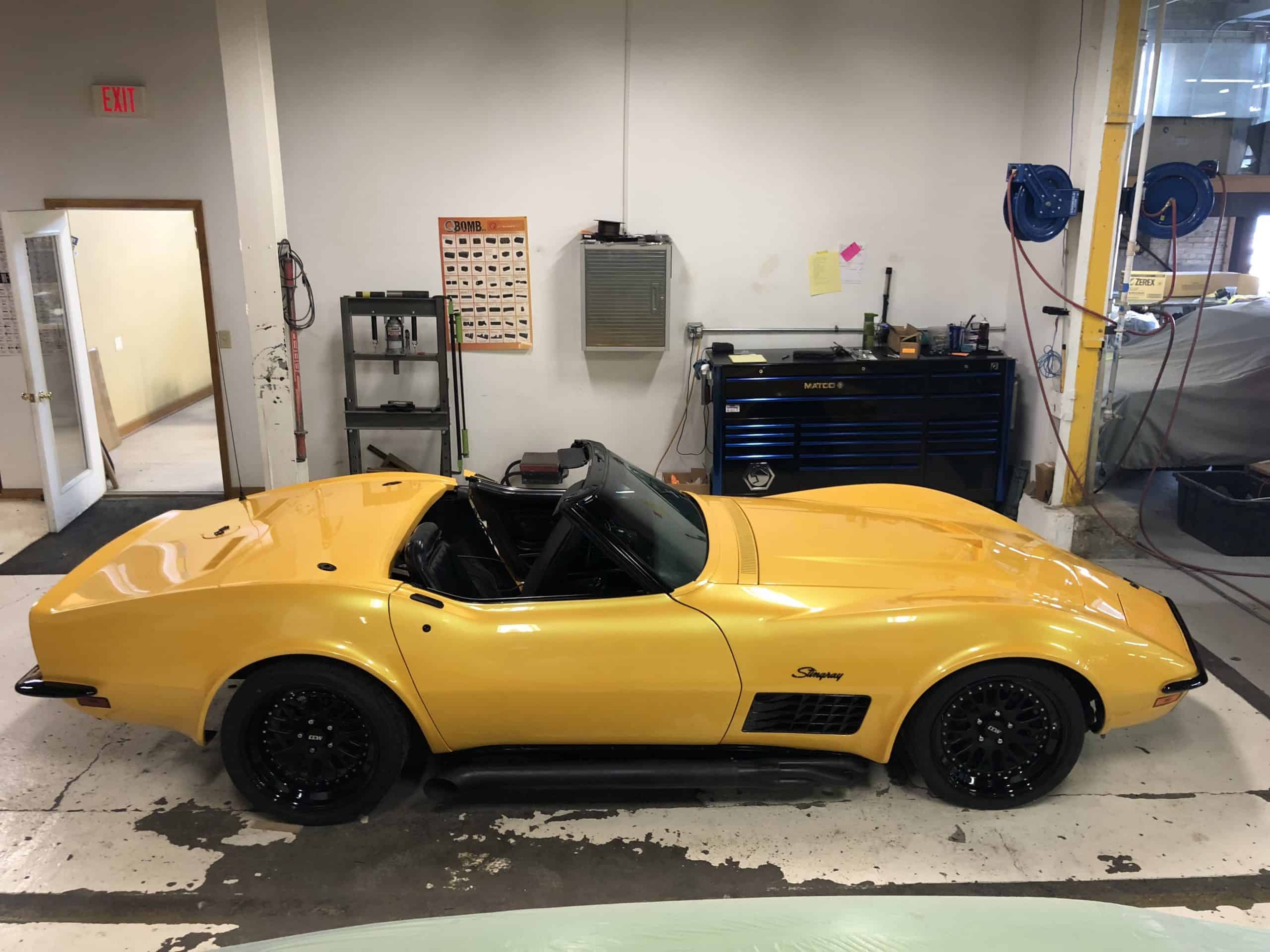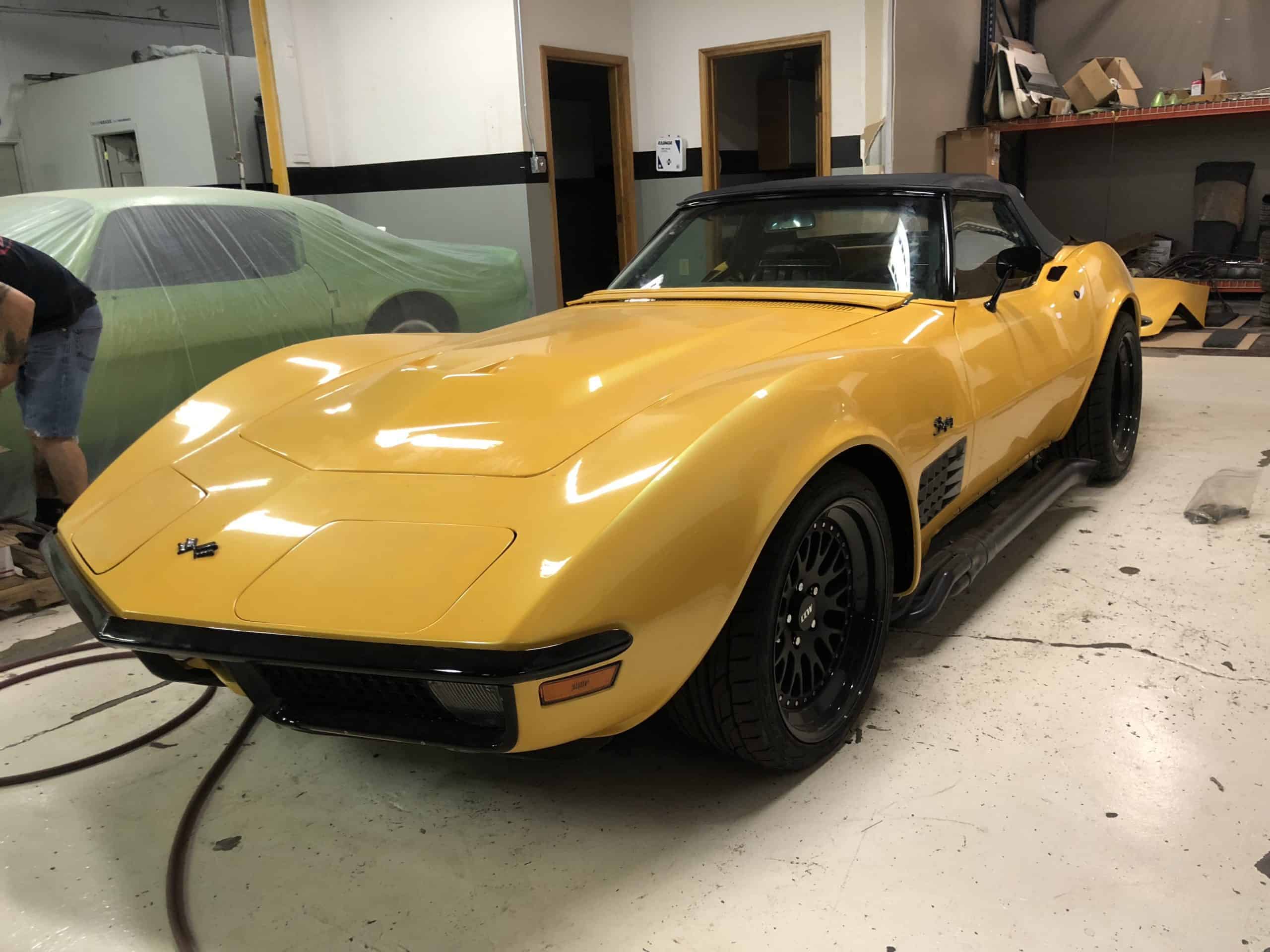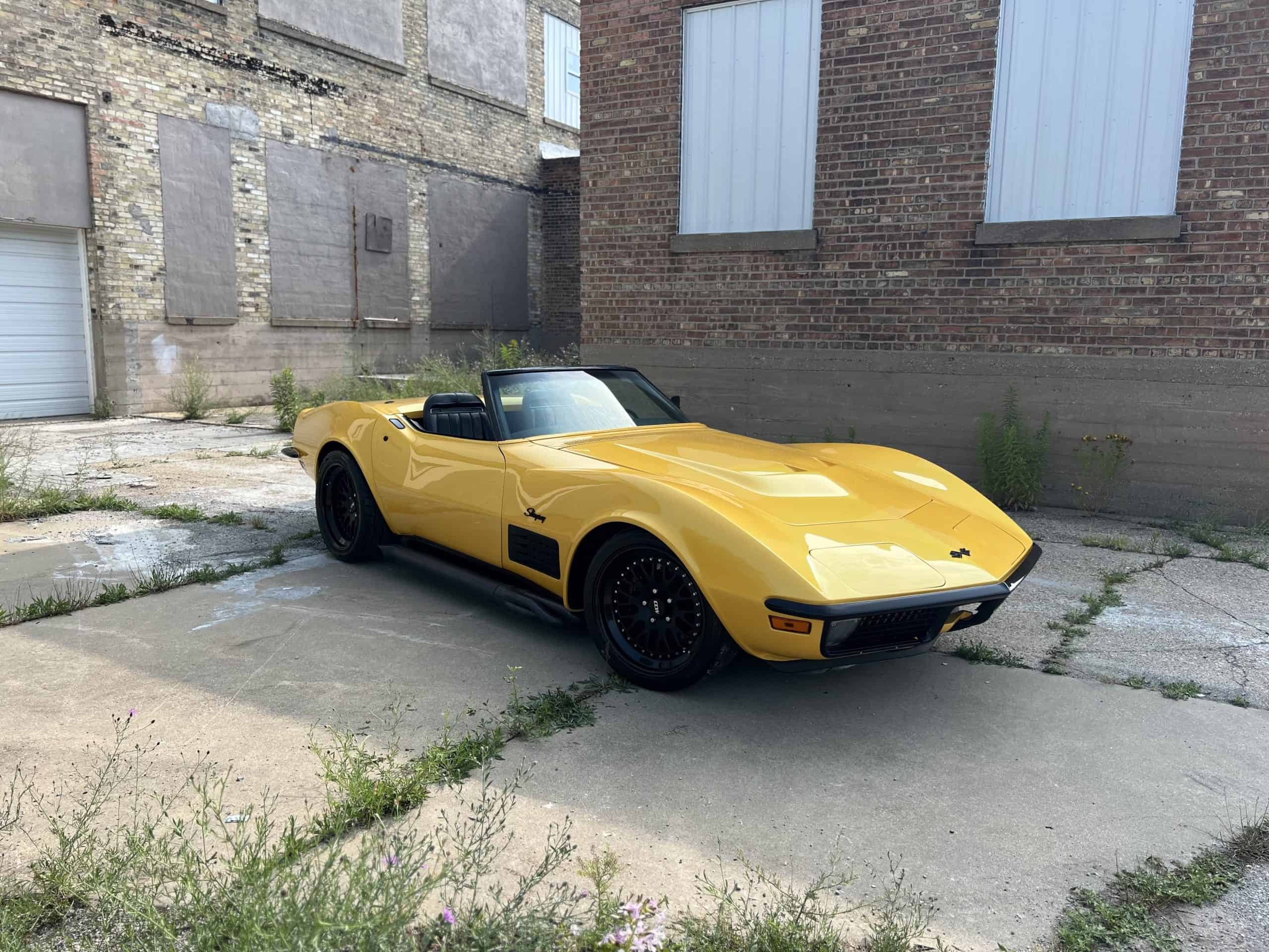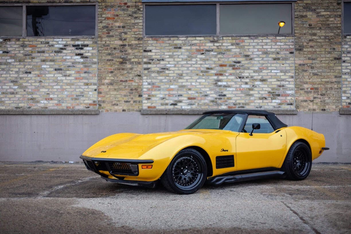 This gorgeous 1970 Chevrolet Corvette pro touring build features a custom Procharged all aluminum 406 cu in sbc, Holley EFI, Ridetech coil over suspension, Wilwood disc brakes, HRE wheels and custom Lamborghini Giallo Orion tricoat paint with black accents.