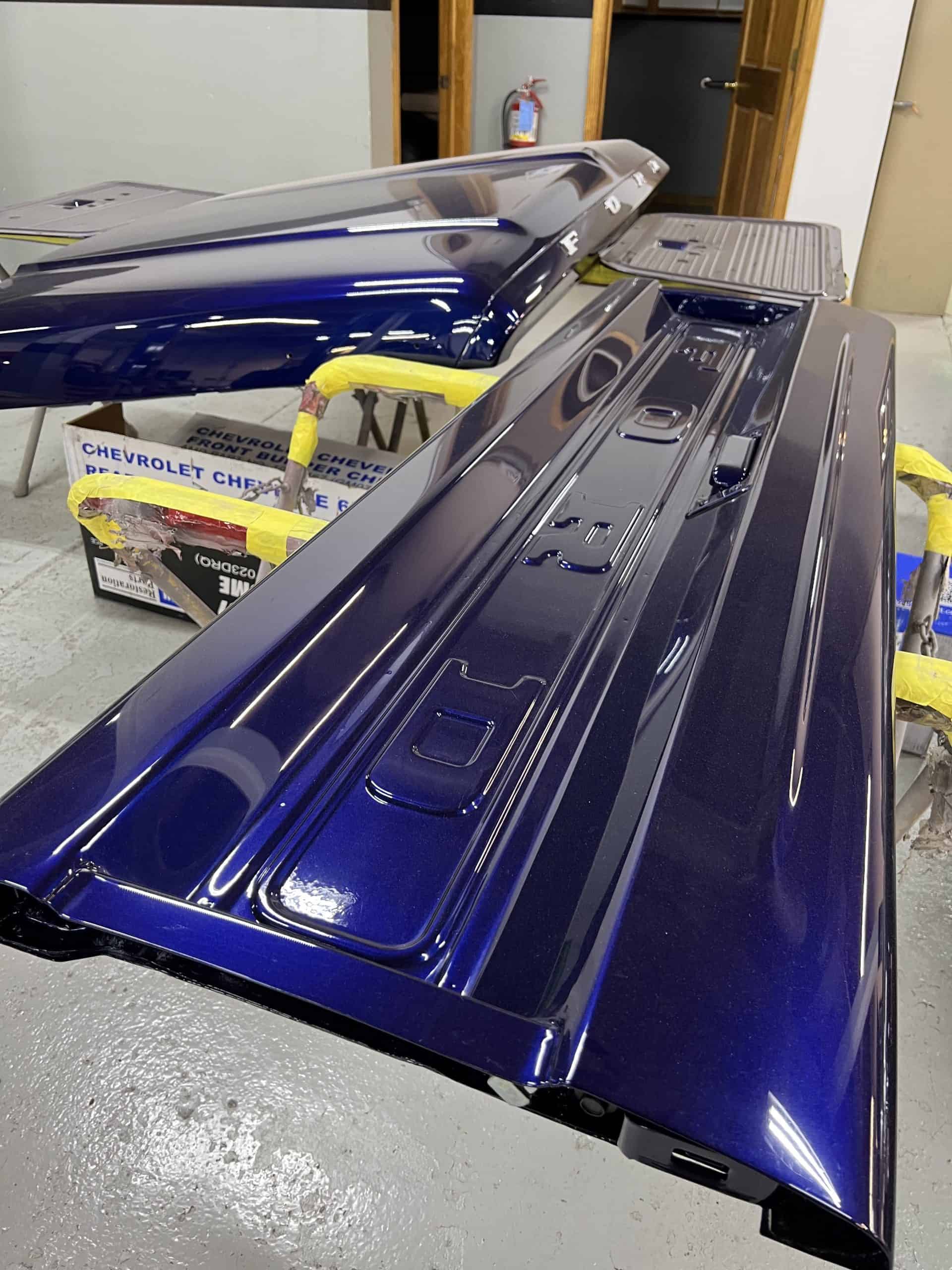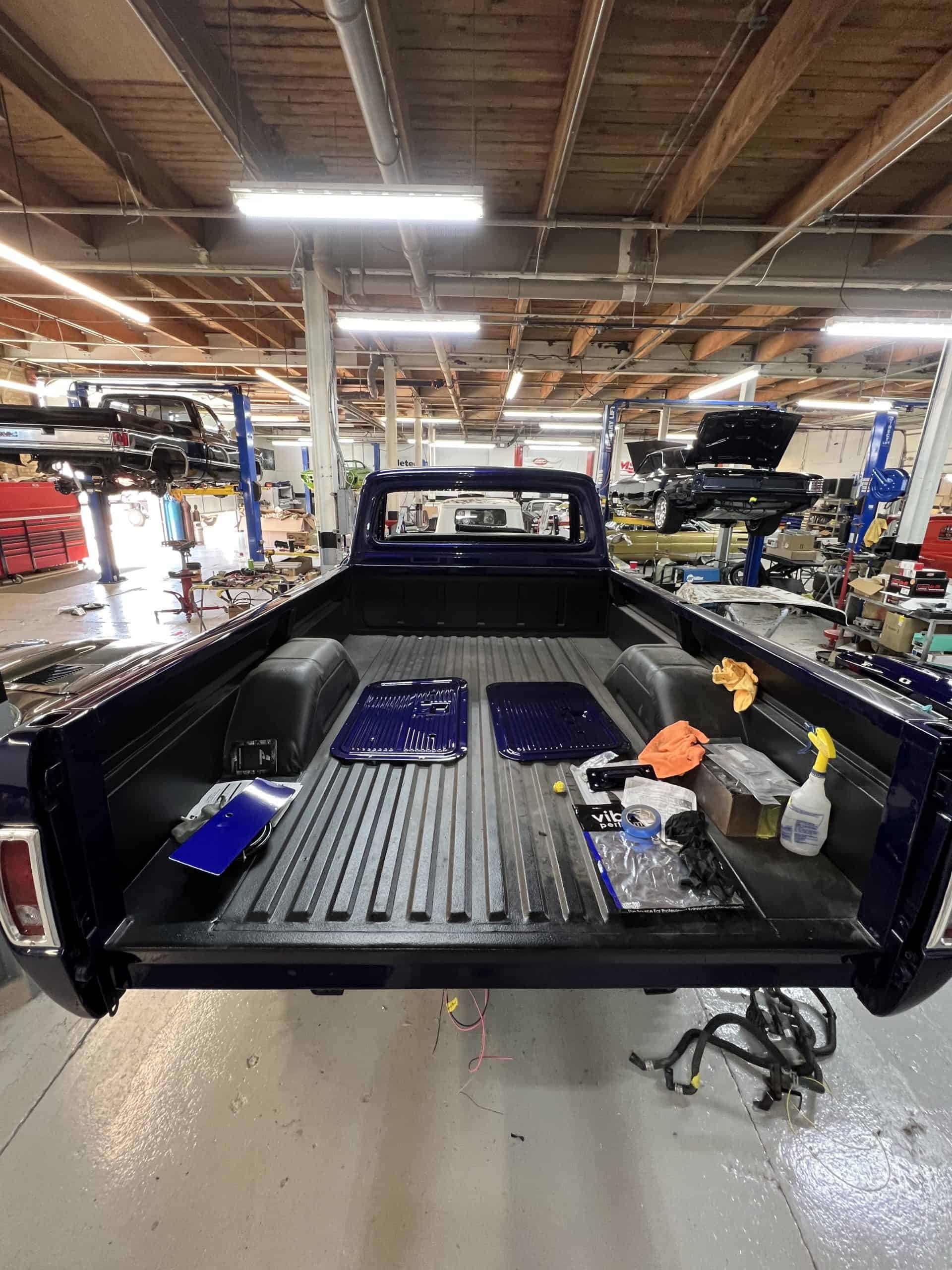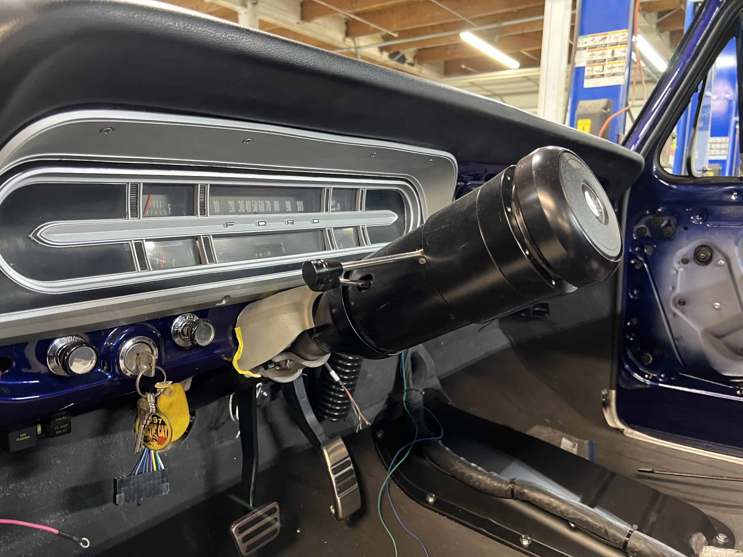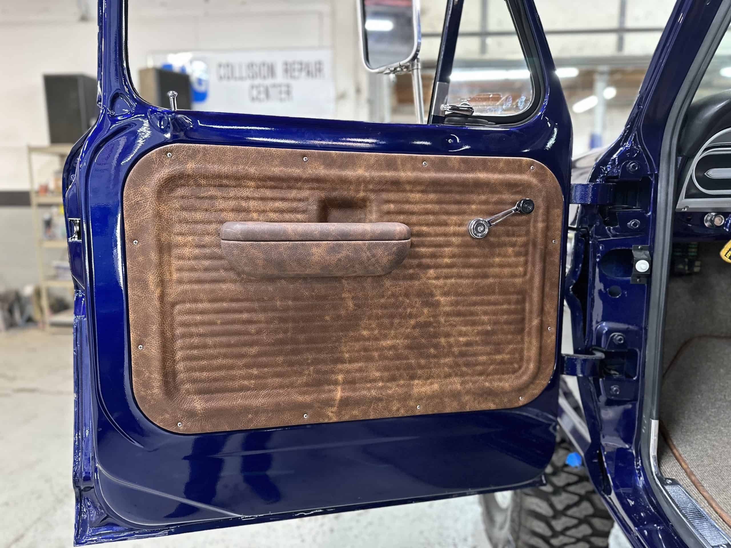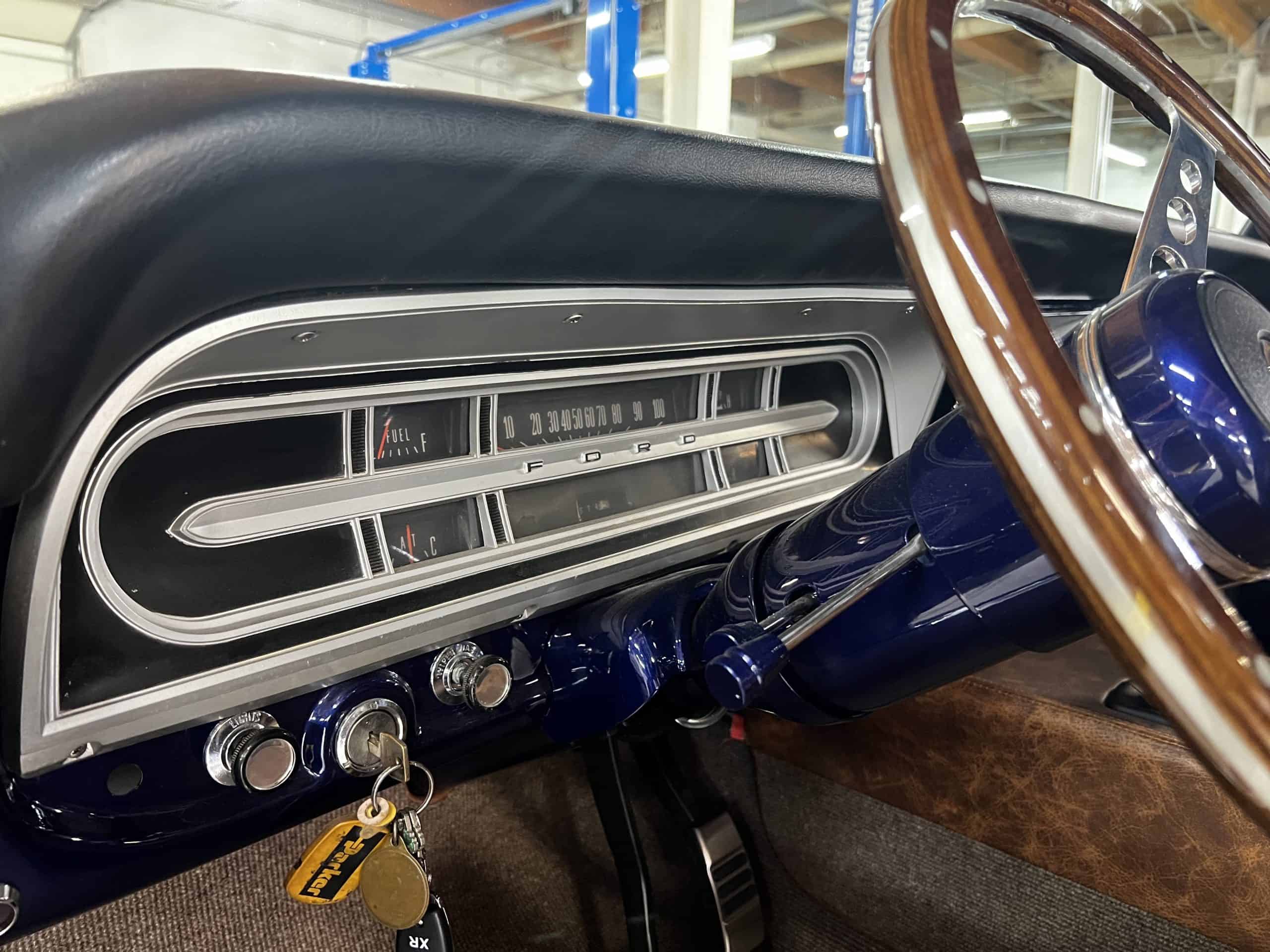 1975 FORD F-250 4 x 4 with a 4″ lift 40″ tires and a Coyote 5.0 L swap to turn them. This is a beautiful classic F250 with just the right amount of modern technology to make it look and drive much better than the original. We upgraded the suspension and steering, converted to disc brakes, swapped the engine to a 5.0 L Coyote with automatic transmission and push button transfer case, completely restored the body and then built a fully customized leather interior with power bucket seats and a full length center console.