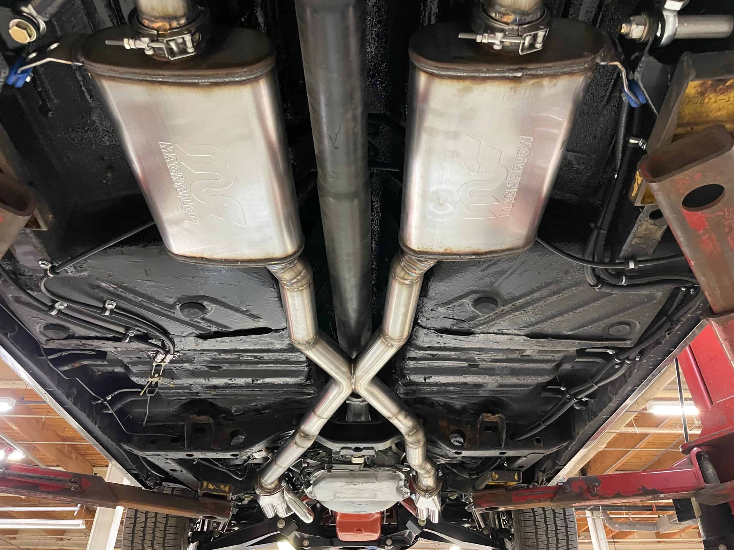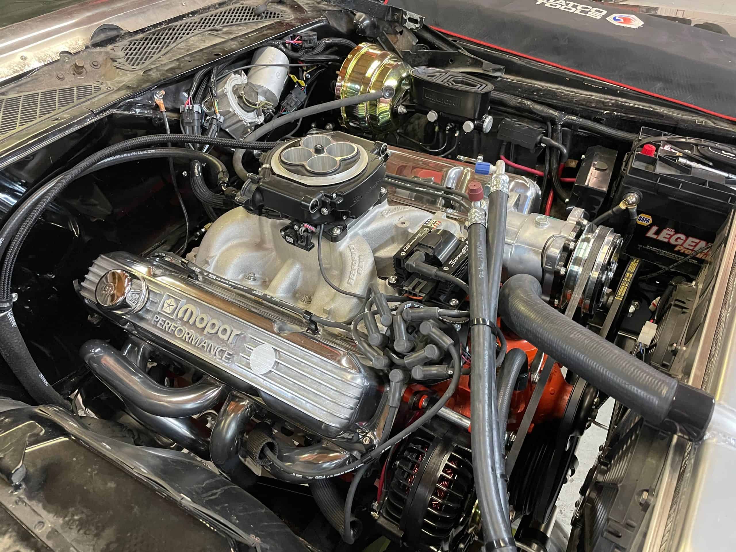 This 1973 Dodge Charger was brought to us to build a real street machine. We started by upgrading the front and rear suspension with a tubular K member and rear 4 link with coil overs from Magnum Force. We also upgraded the brake system to Wilwood disc brakes and master cylinder. The 440 cubic inch big block was upgraded with Edelbrock aluminum heads and intake, Comp Cams hydraulic roller cam, Hooker ceramic coated headers, and a Holley Sniper fuel injection system. We built a custom stainless steel exhaust with Magnaflow mufflers. Inside the car we have added Dakota Digital gauges, Restomod Air and an American Autowire harness.