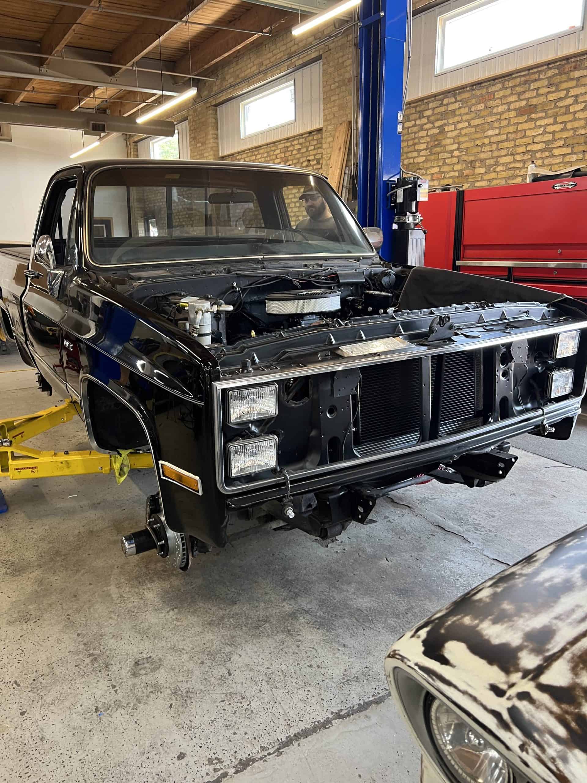 1985 CHEVROLET K-10 PICKUP comes to ASC for Performance Upgrades and some sound assistance. The truck is getting a LS3 crate motor w/ automatic trans, EFI fuel tank and fuel lines, stainless exhaust and a sound system upgrade with modern gauge cluster.
